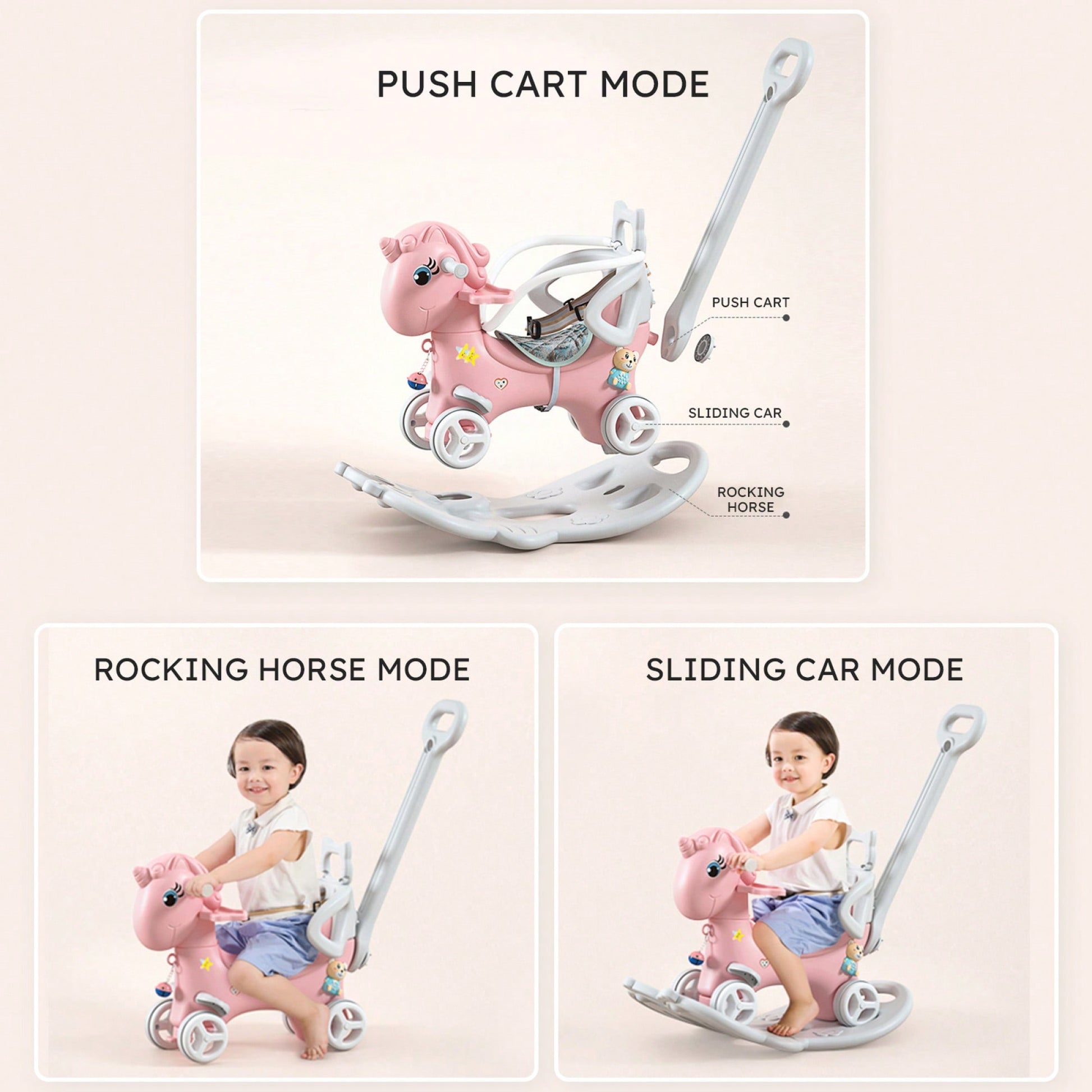 Pink Unicorn Rocking Horse For Toddlers - Balance Bike Ride-On With Push Handle, Backrest, And Balance Board For Boys And Girls