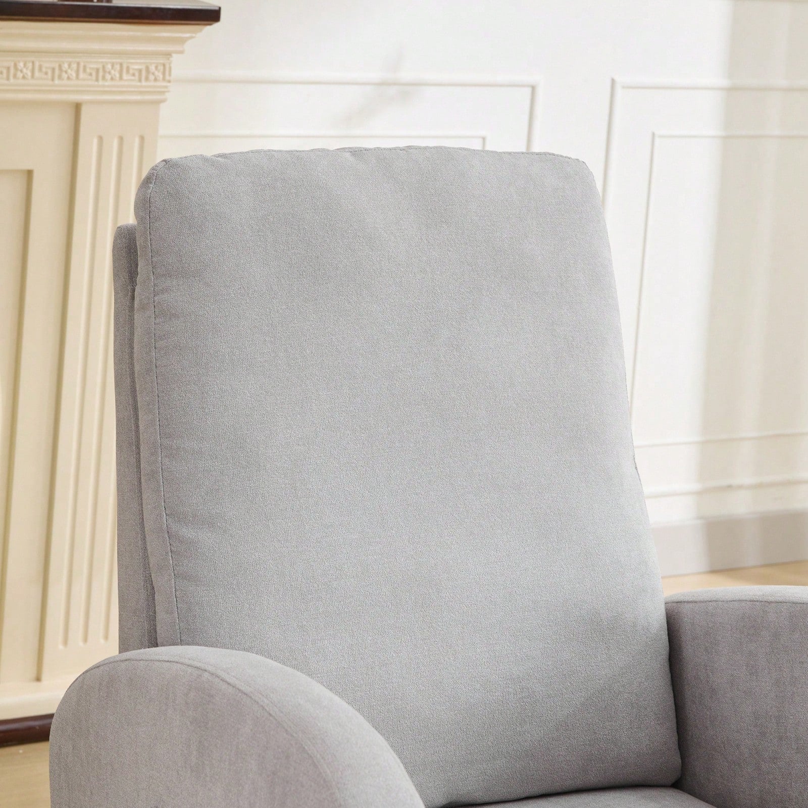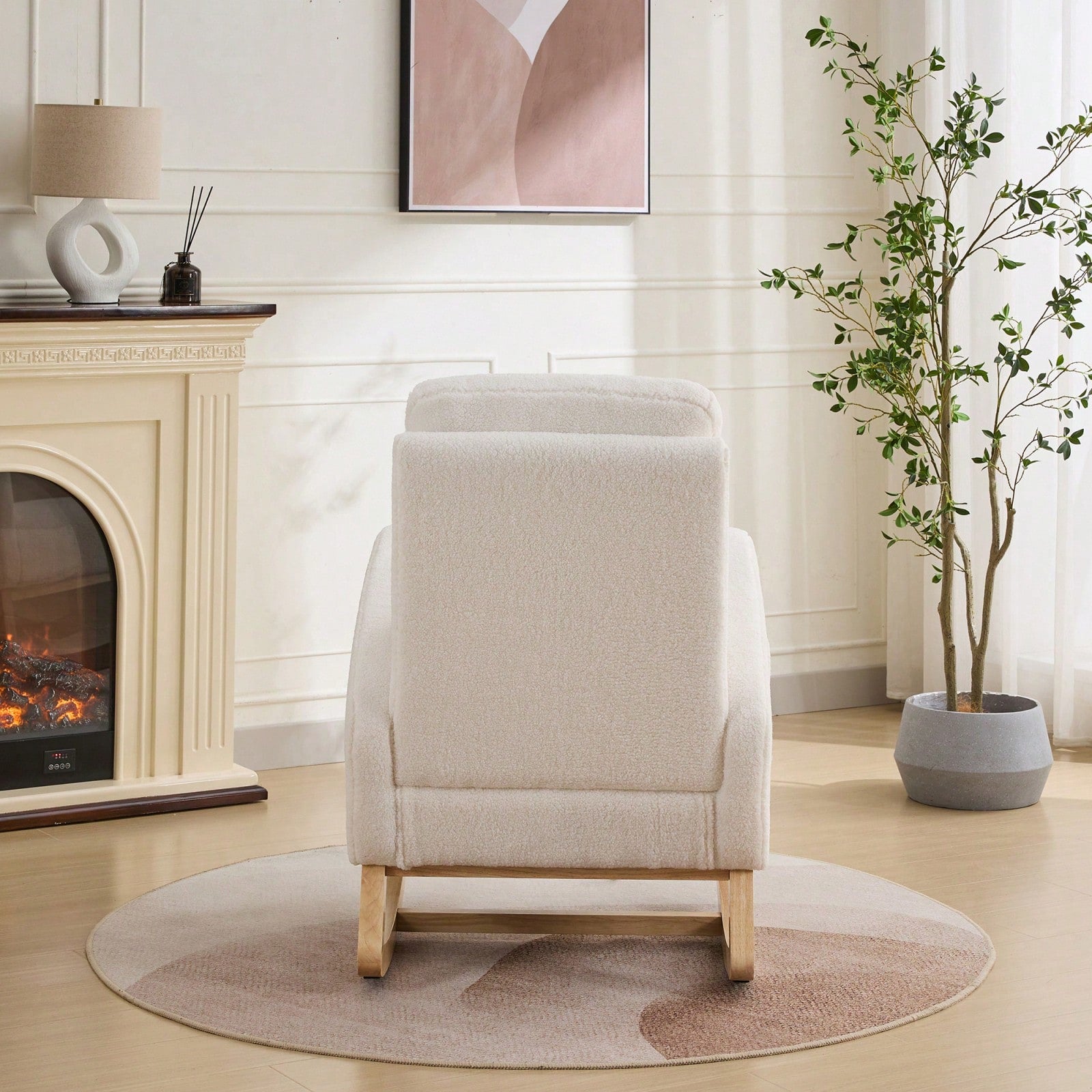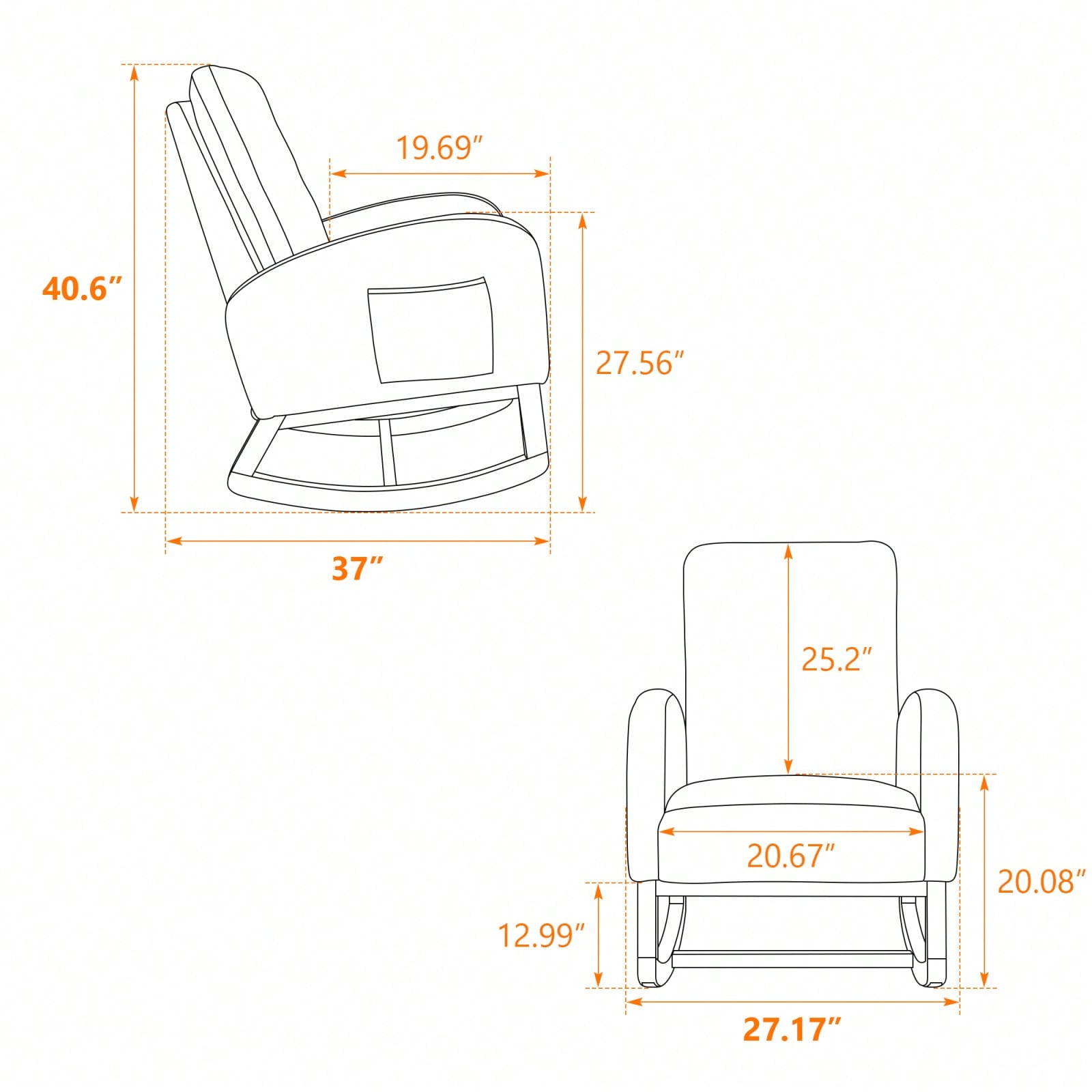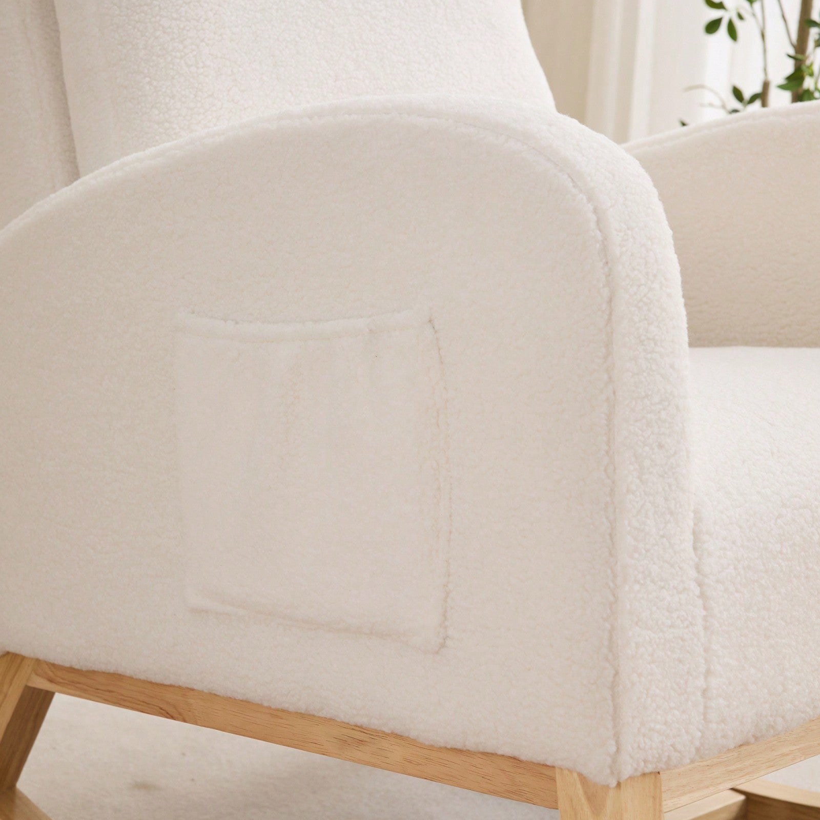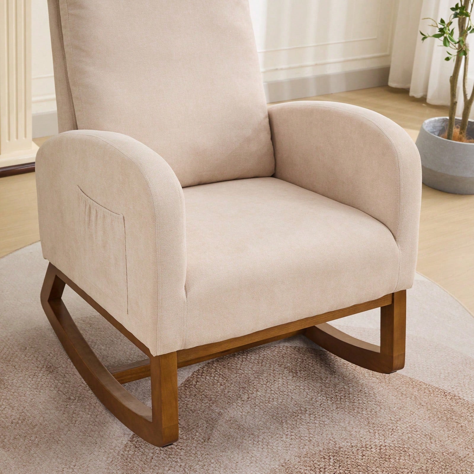 Polyester Glider Chair With High Back And Side Pocket, Rocking Accent Armchair With Rubber Wood Legs For Nursery/Bedroom