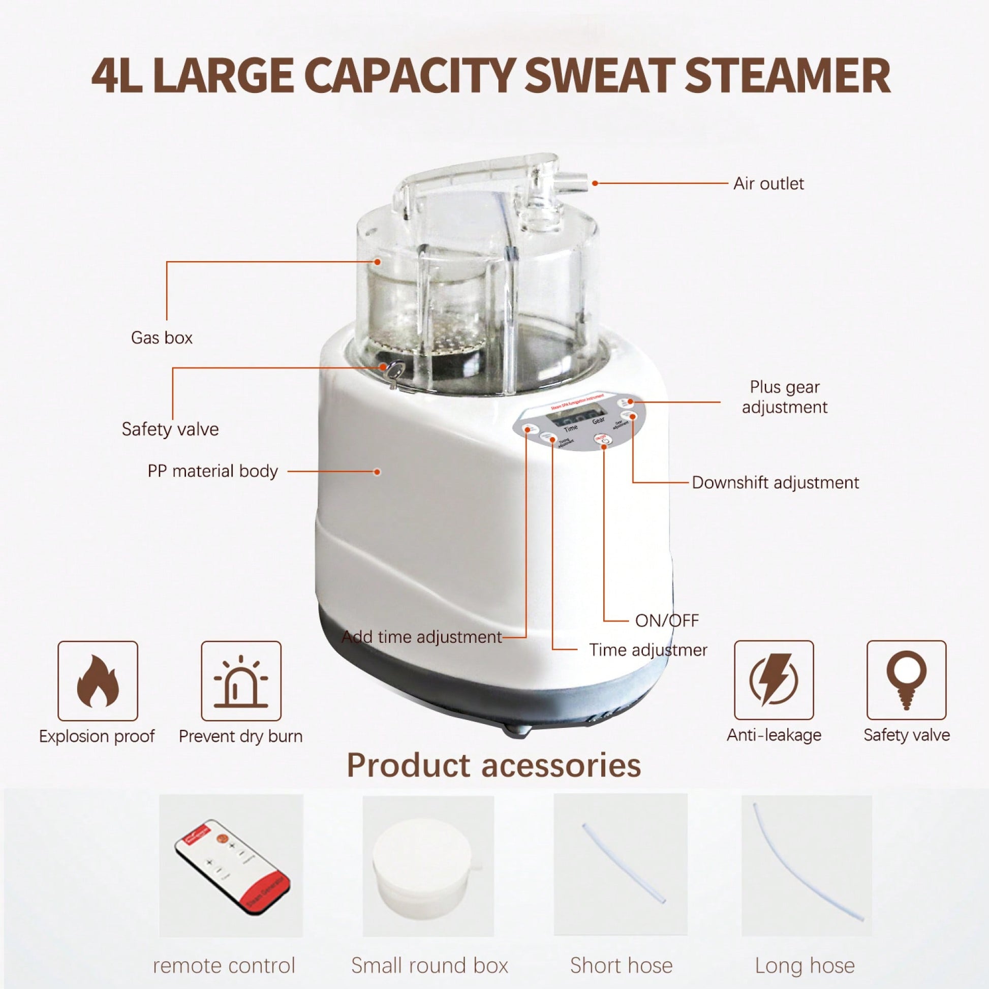- Steam Generator: 1500W, 4L capacity