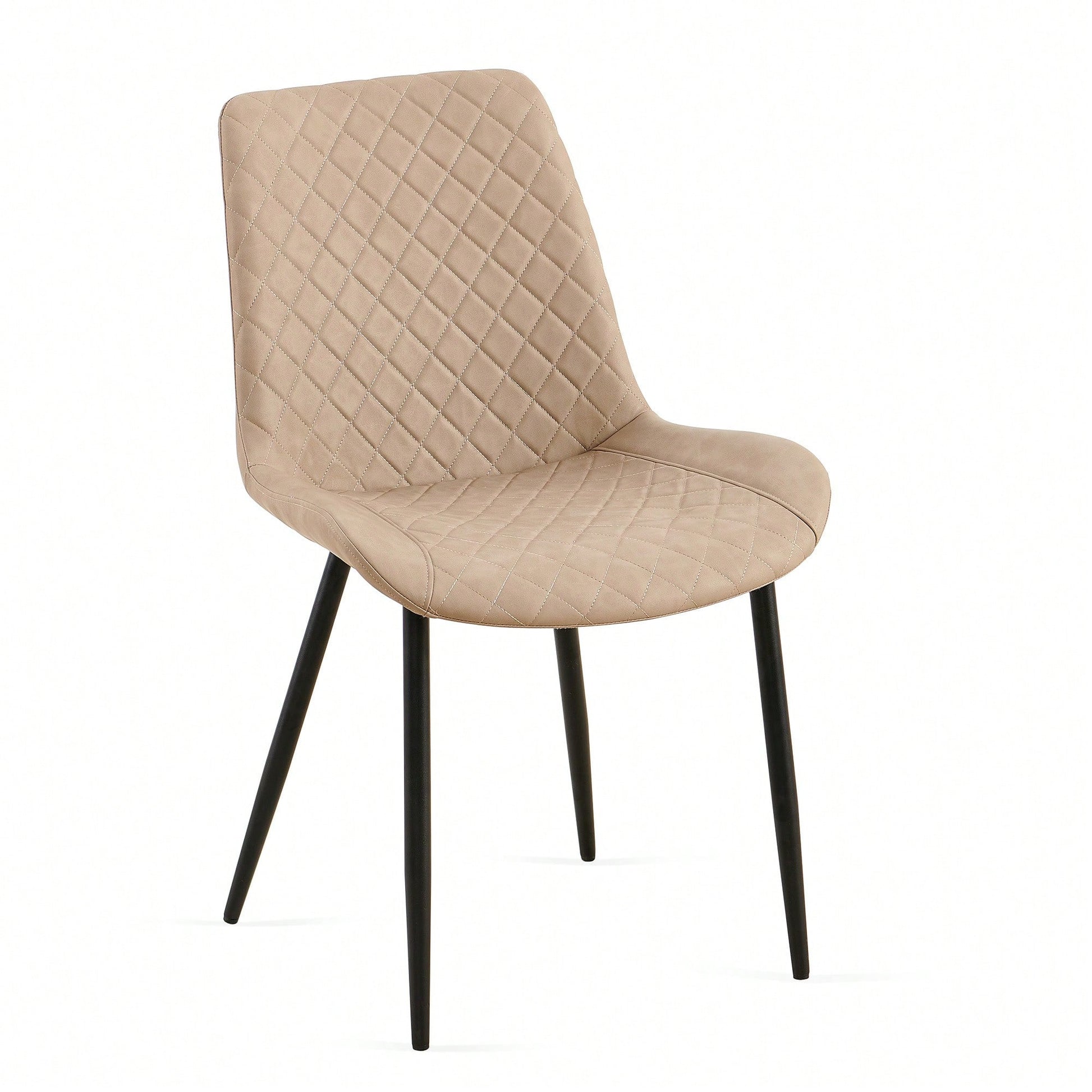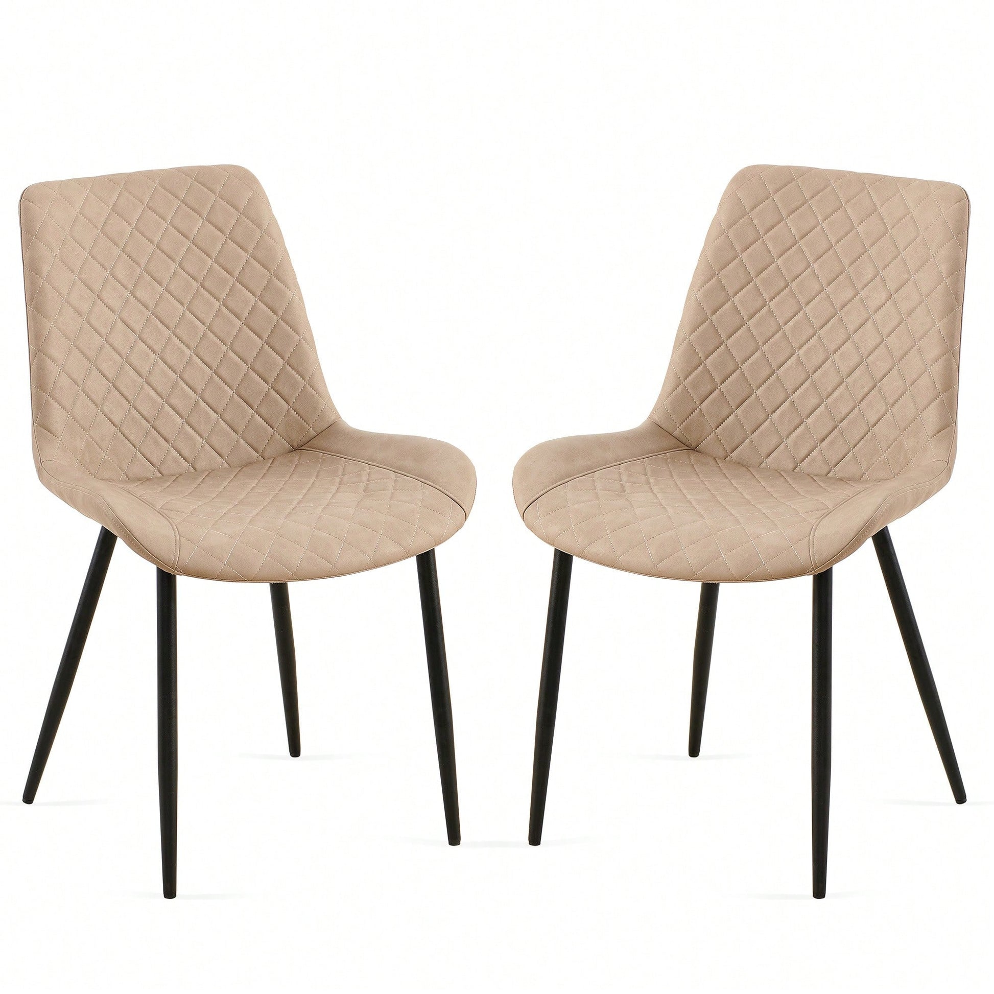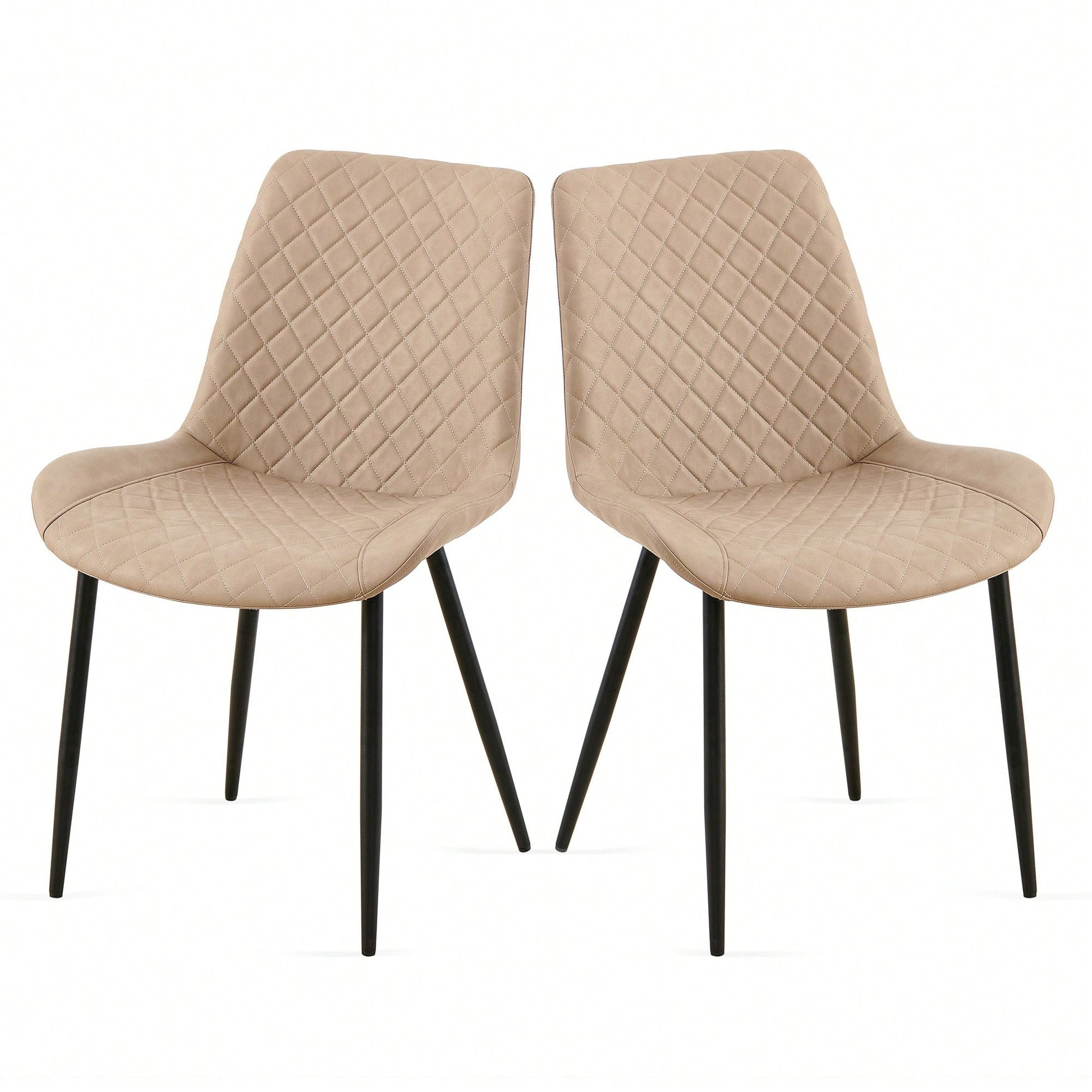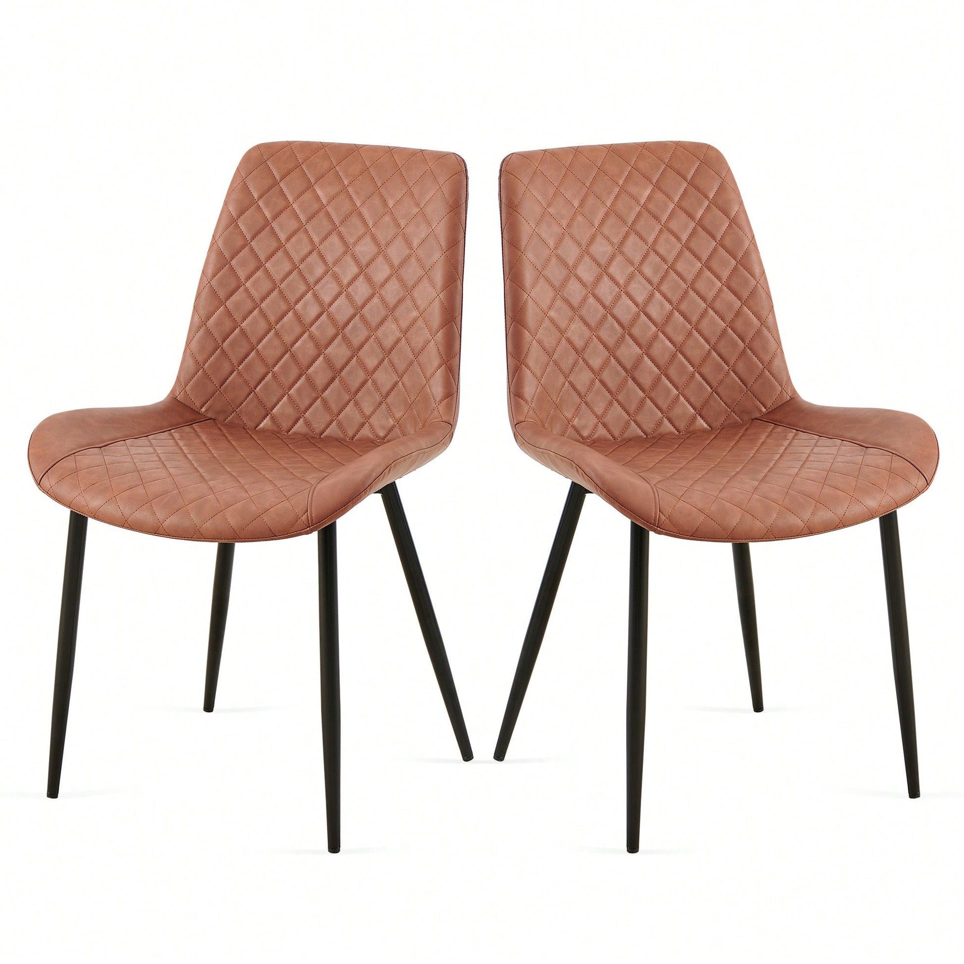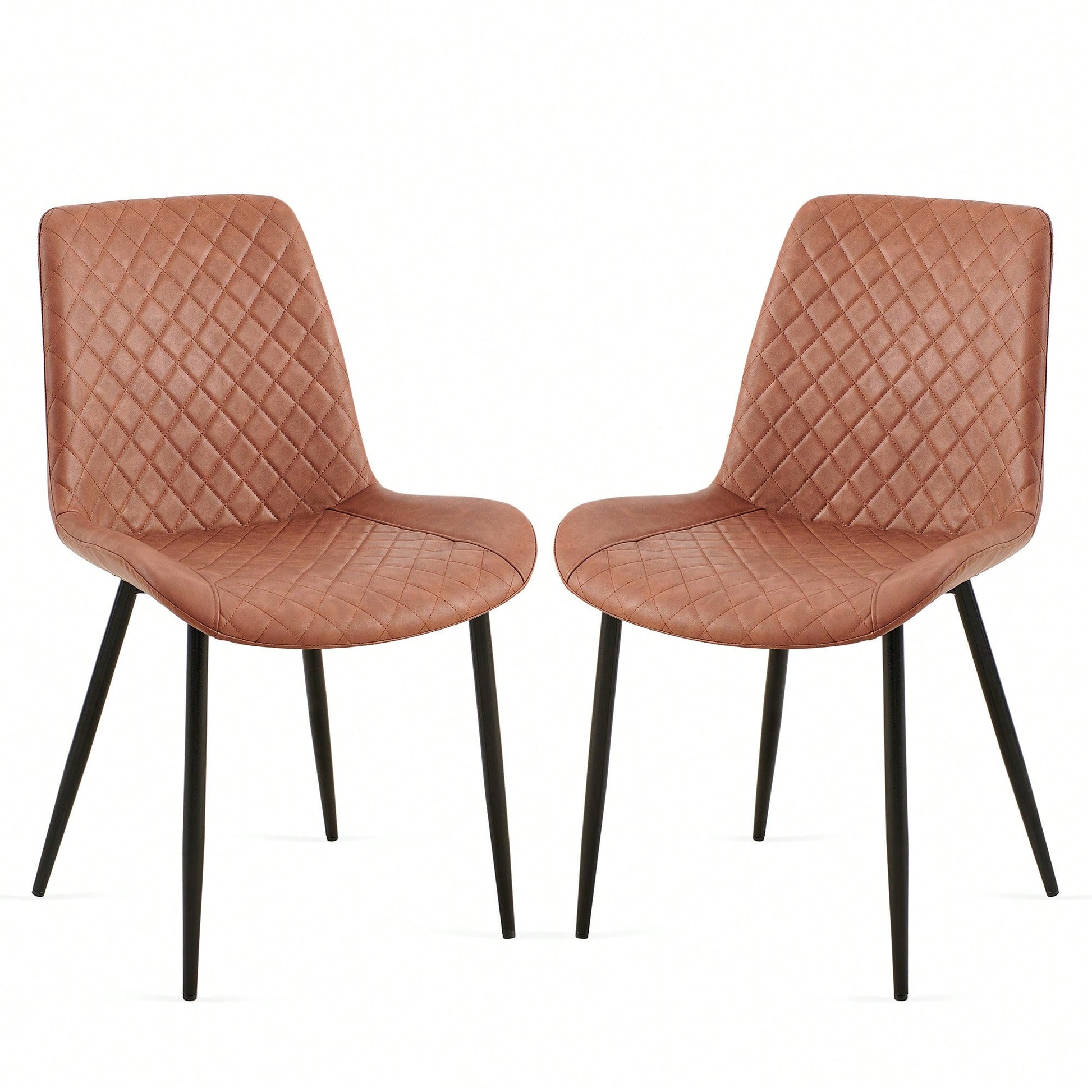 This set of two upholstered dining chairs is designed for comfort and style. With a sleek faux leather seat and a minimalist backrest, these chairs provide excellent support for relaxing in your kitchen or living room. Their elegant design enhances the aesthetic appeal of any space, making them a great addition to your home or office waiting area. The slightly splaying metal frame ensures stability while maintaining a lightweight feel, and the protective pads on the feet prevent floor scratches.