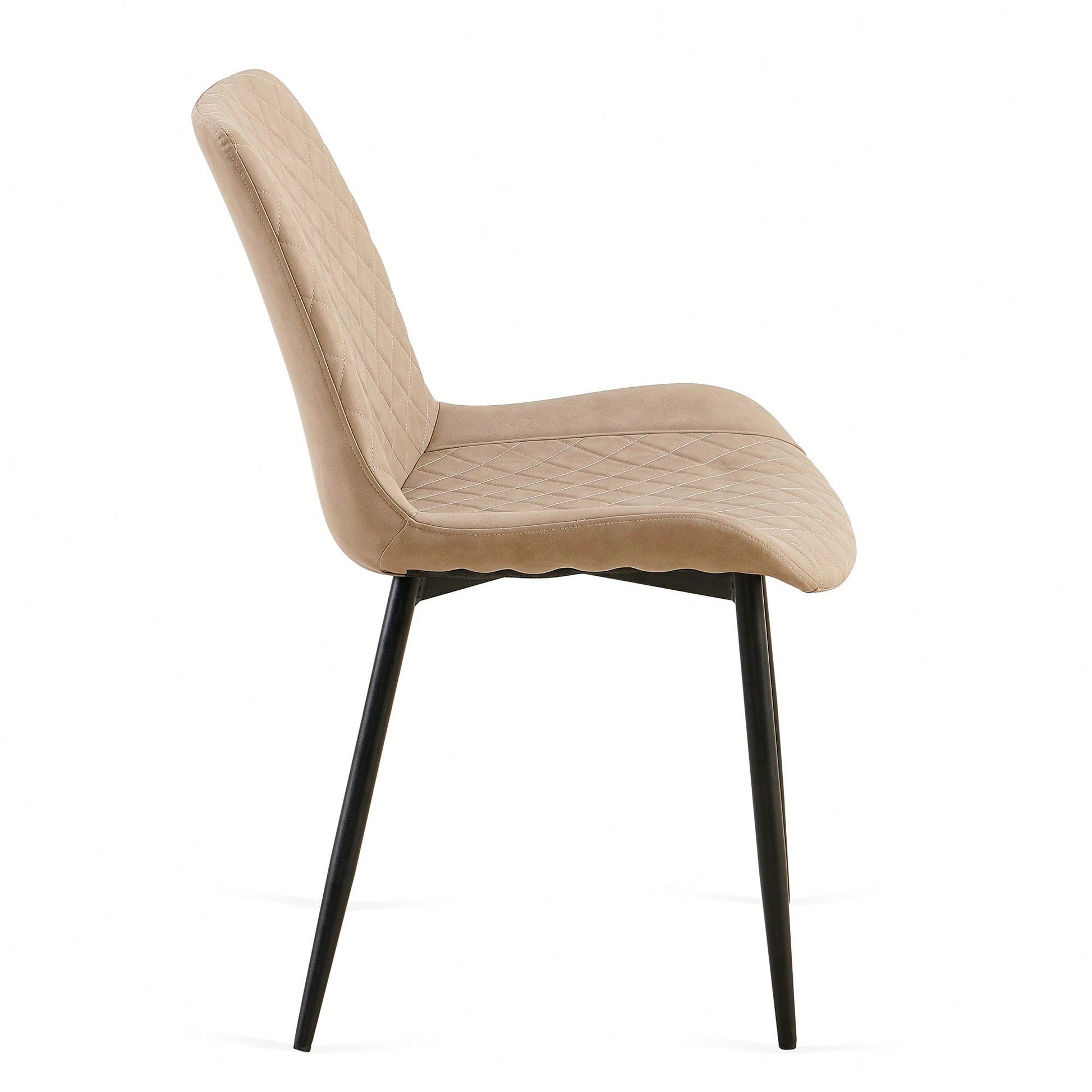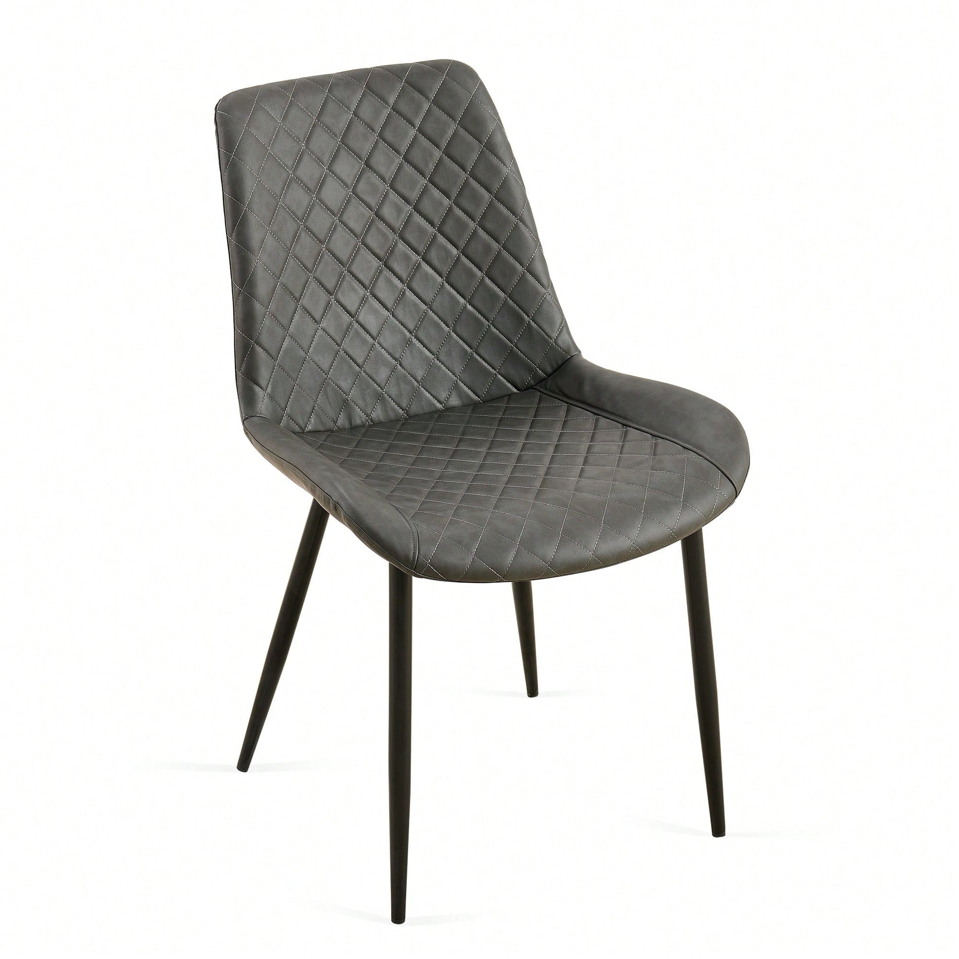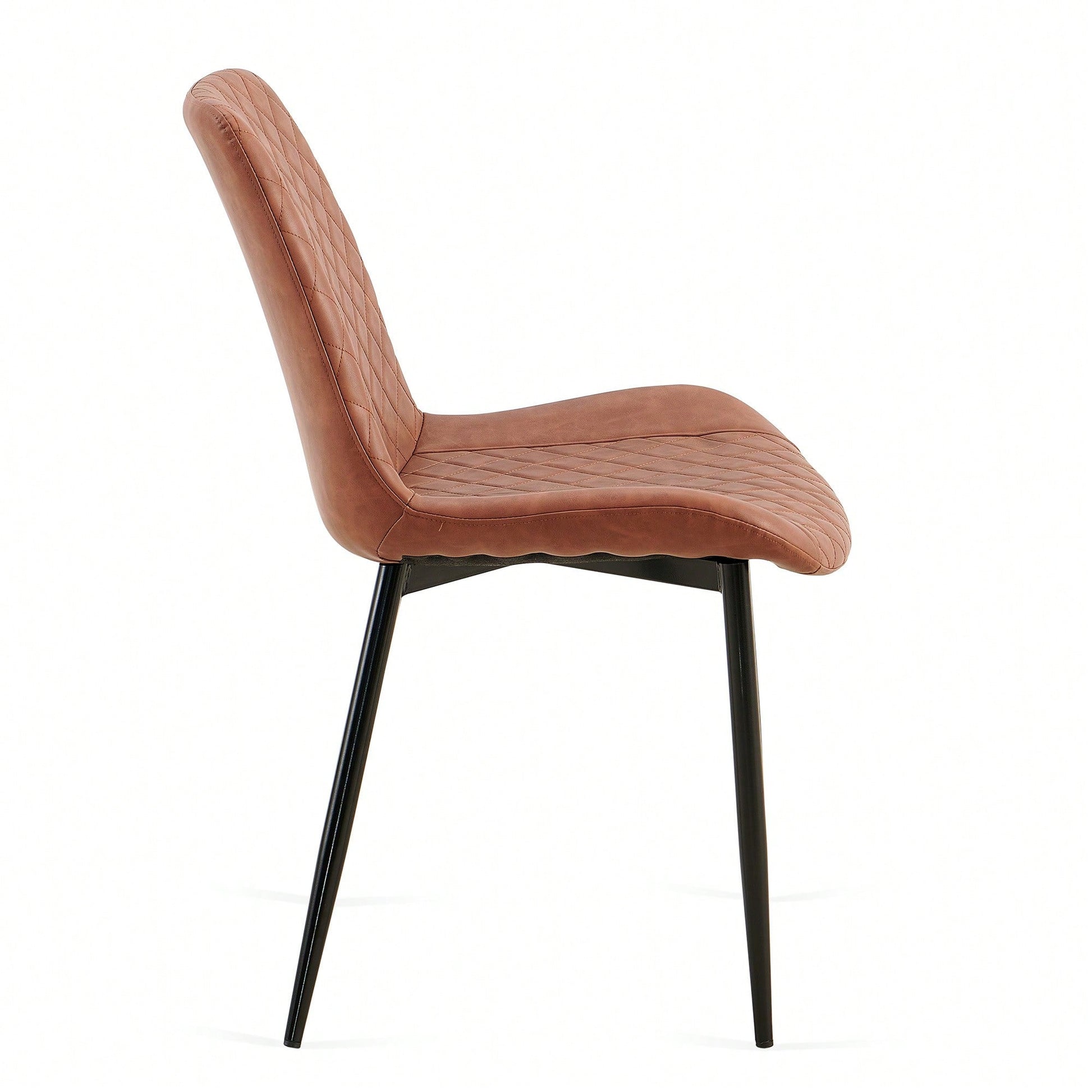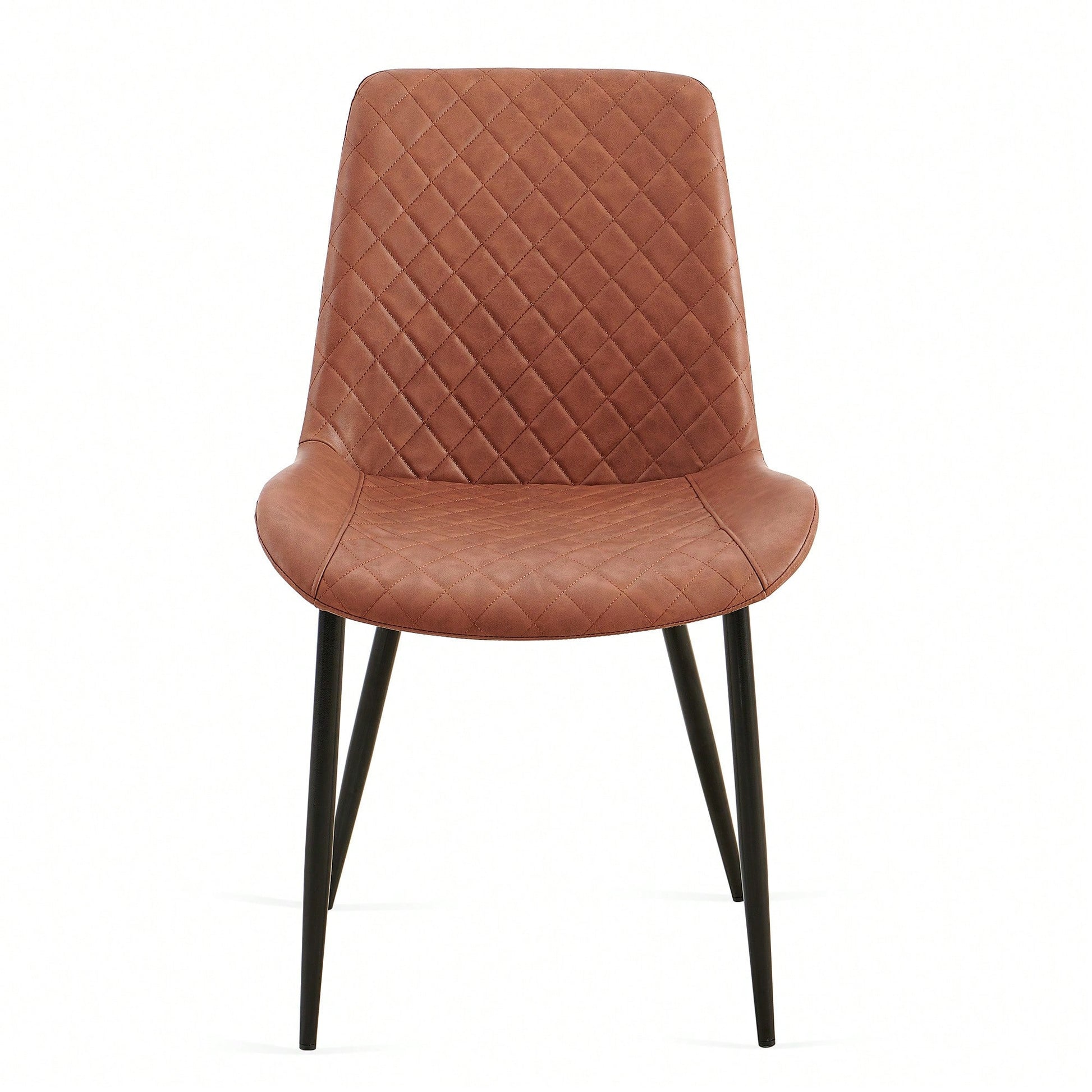 This set of two upholstered dining chairs is designed for comfort and style. With a sleek faux leather seat and a minimalist backrest, these chairs provide excellent support for relaxing in your kitchen or living room. Their elegant design enhances the aesthetic appeal of any space, making them a great addition to your home or office waiting area. The slightly splaying metal frame ensures stability while maintaining a lightweight feel, and the protective pads on the feet prevent floor scratches.