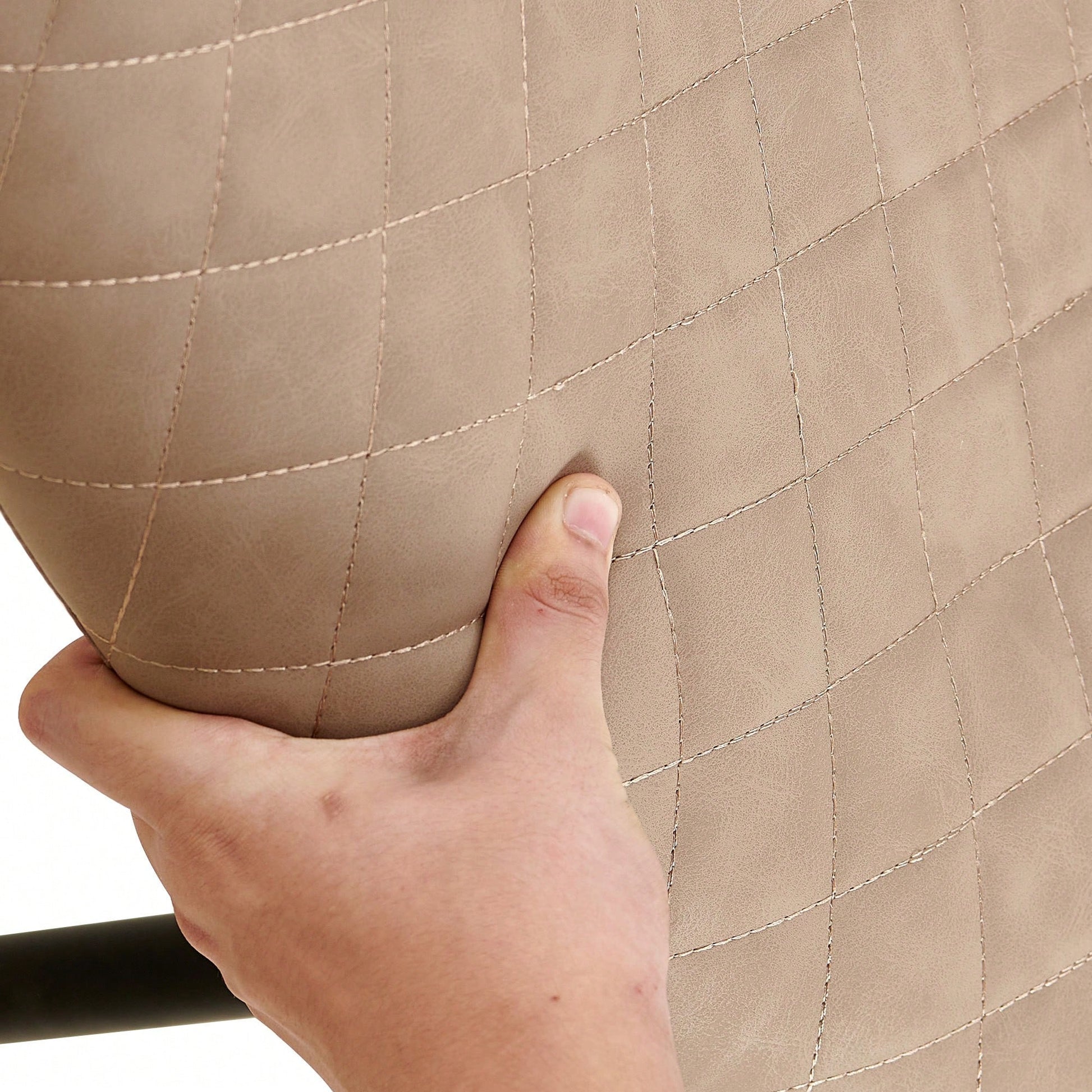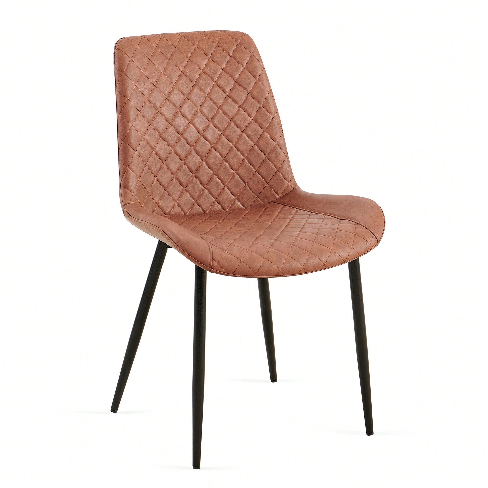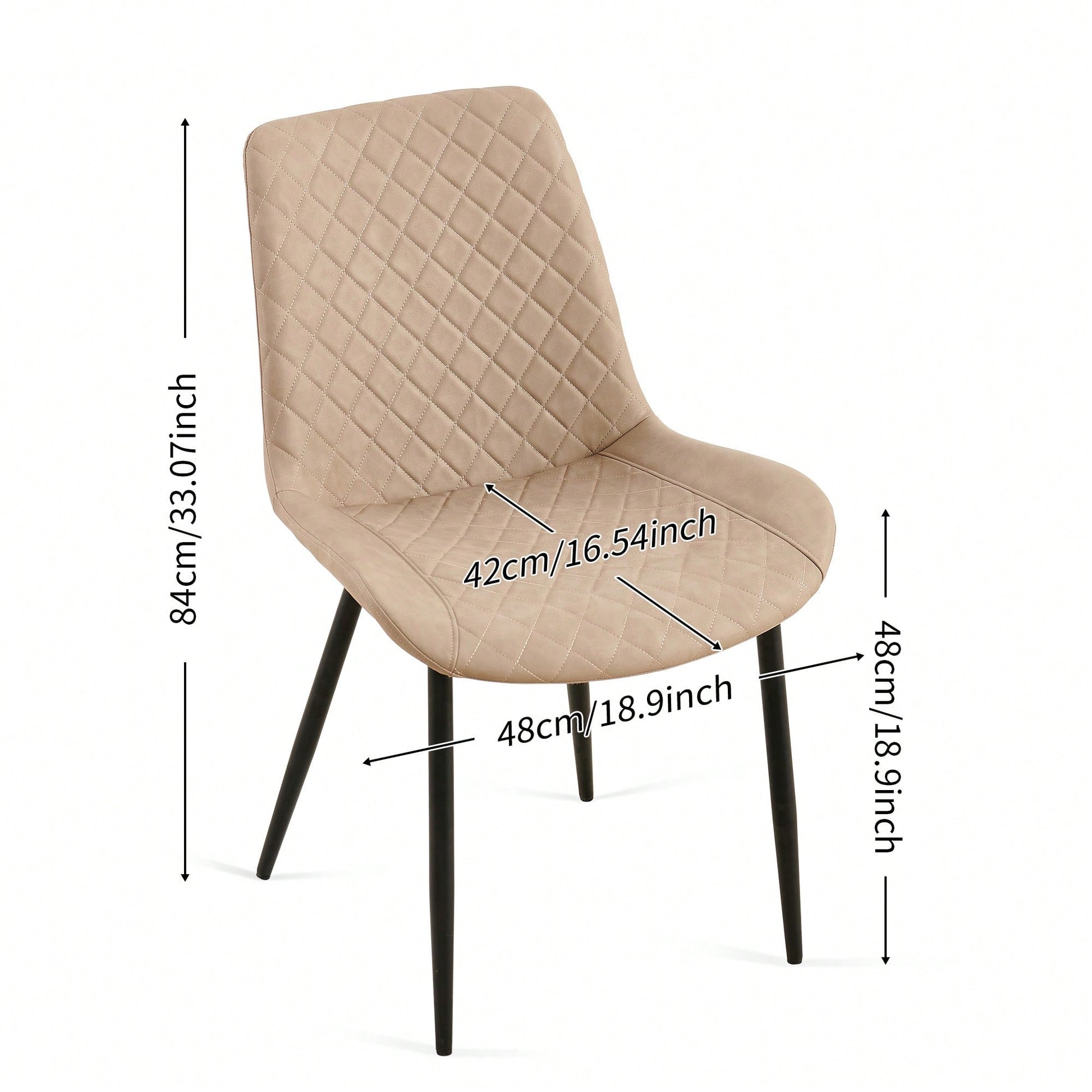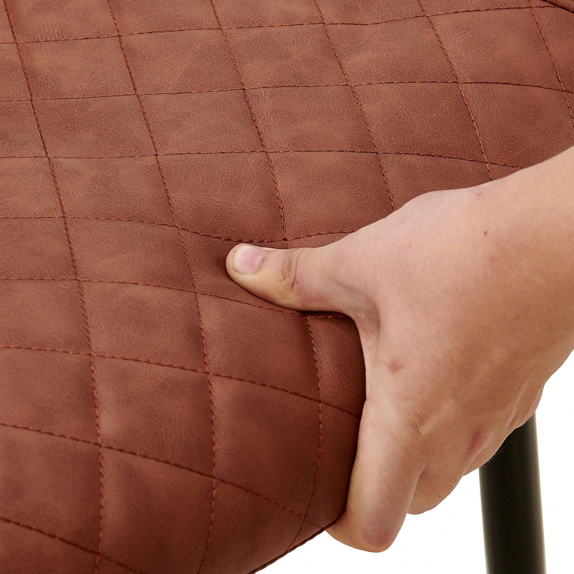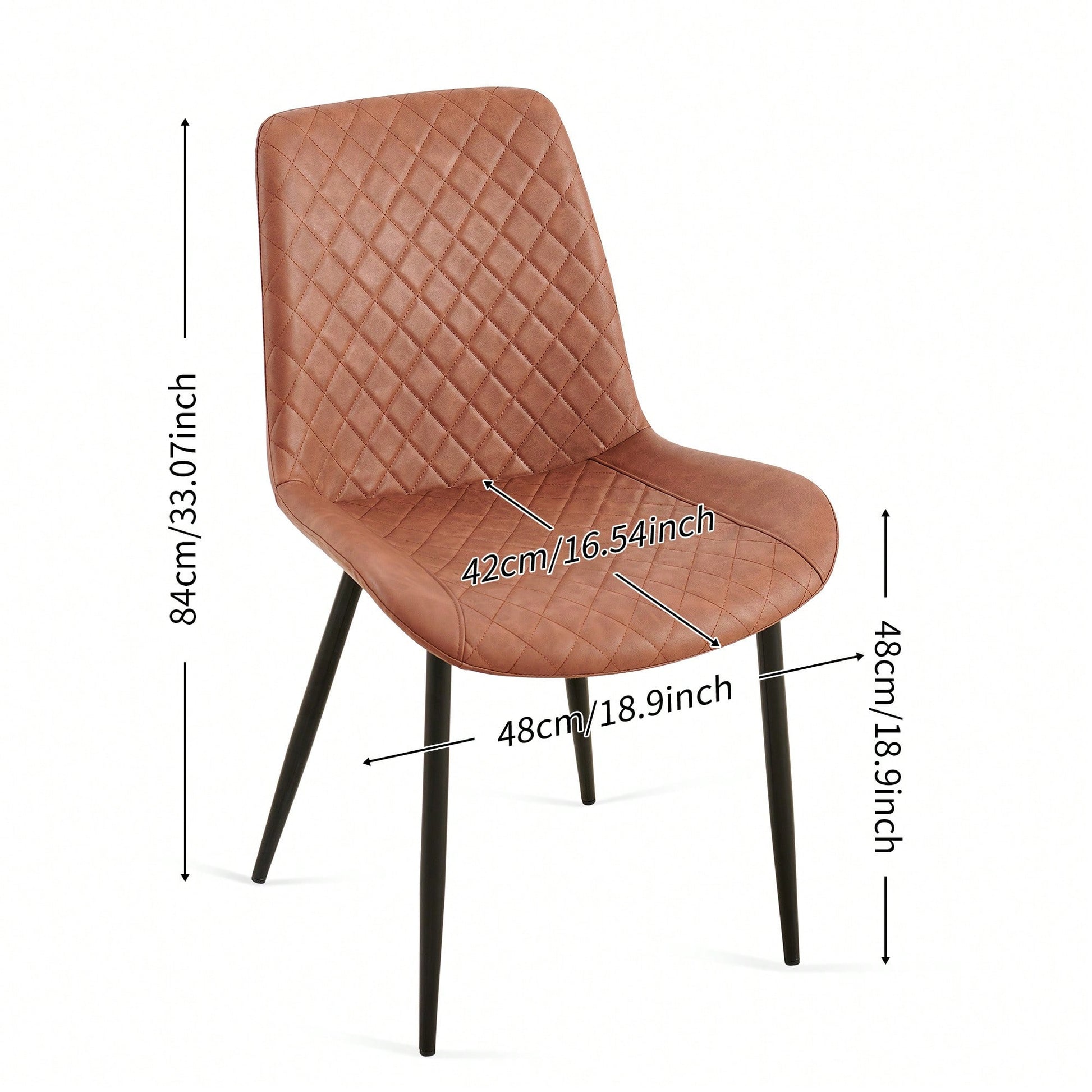 This set of two upholstered dining chairs is designed for comfort and style. With a sleek faux leather seat and a minimalist backrest, these chairs provide excellent support for relaxing in your kitchen or living room. Their elegant design enhances the aesthetic appeal of any space, making them a great addition to your home or office waiting area. The slightly splaying metal frame ensures stability while maintaining a lightweight feel, and the protective pads on the feet prevent floor scratches.