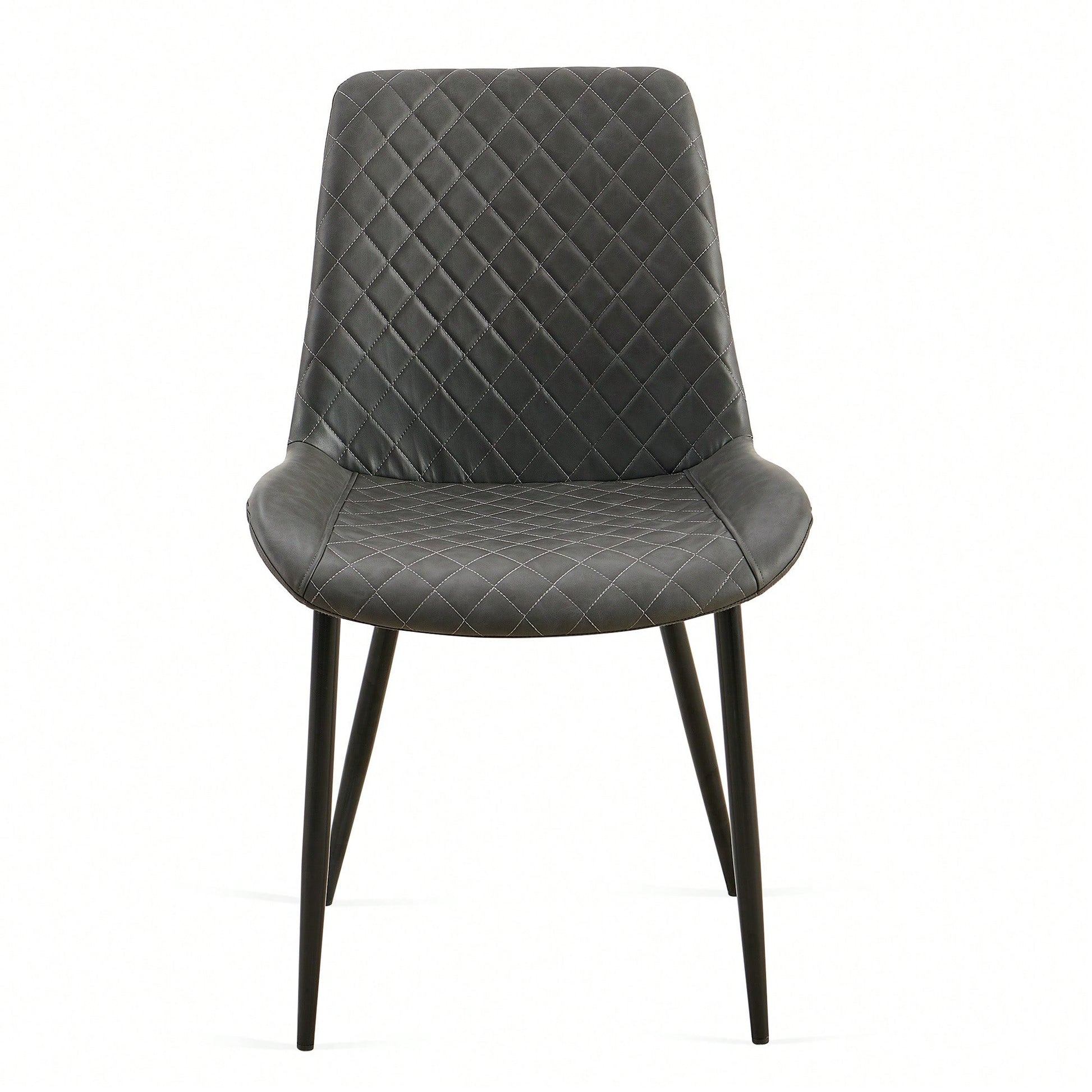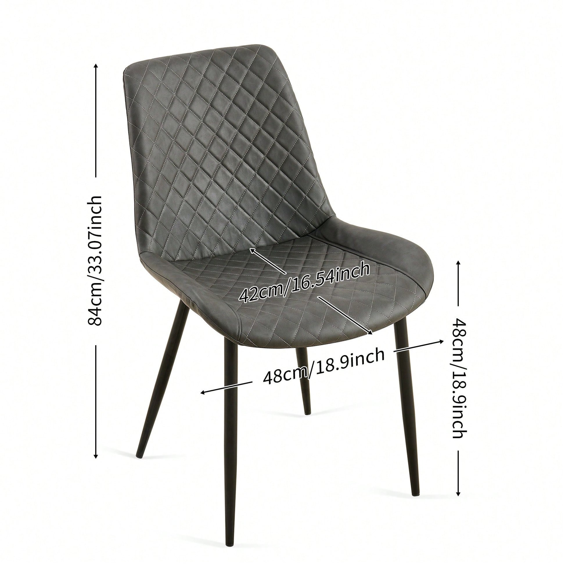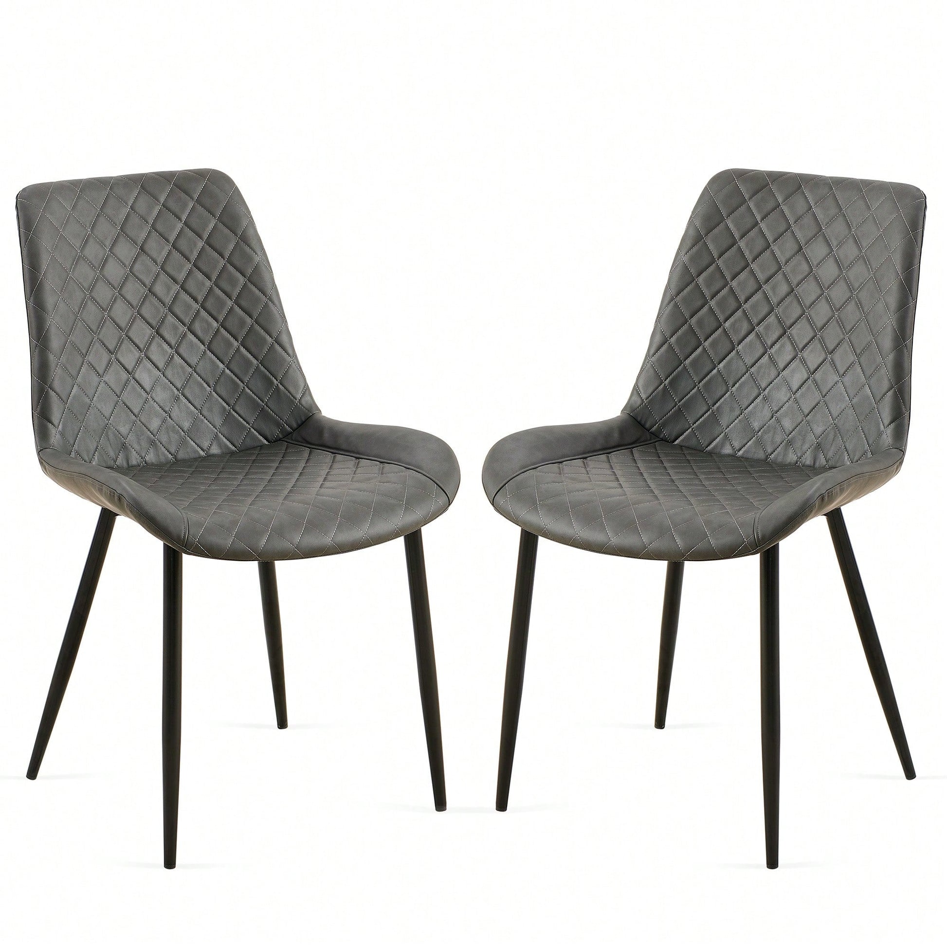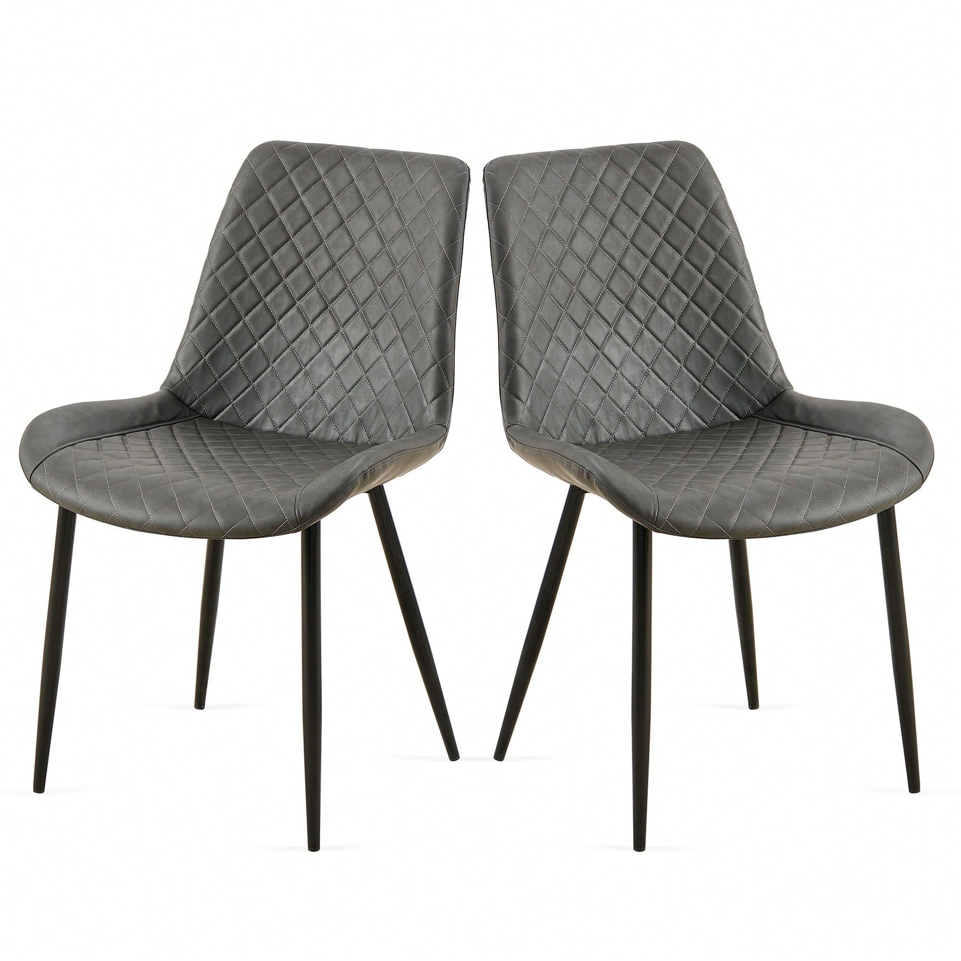 PU Leather Dining Chairs Set Of 2 Mid-Century Modern Armless Side Chairs With Metal Legs For Kitchen And Living Room Dark Grey