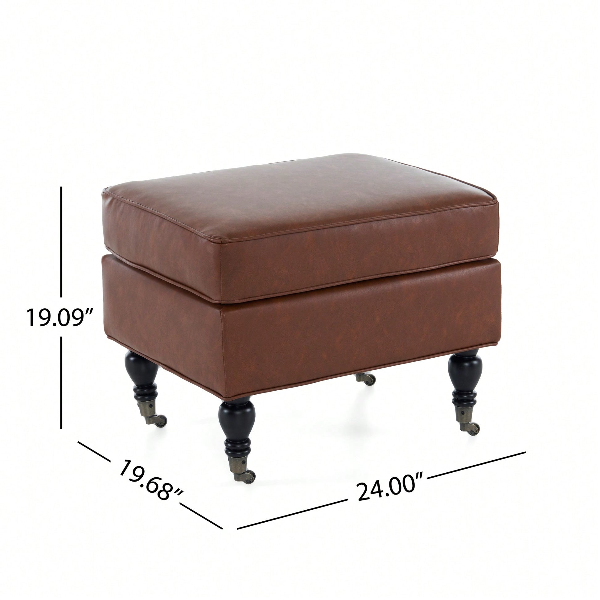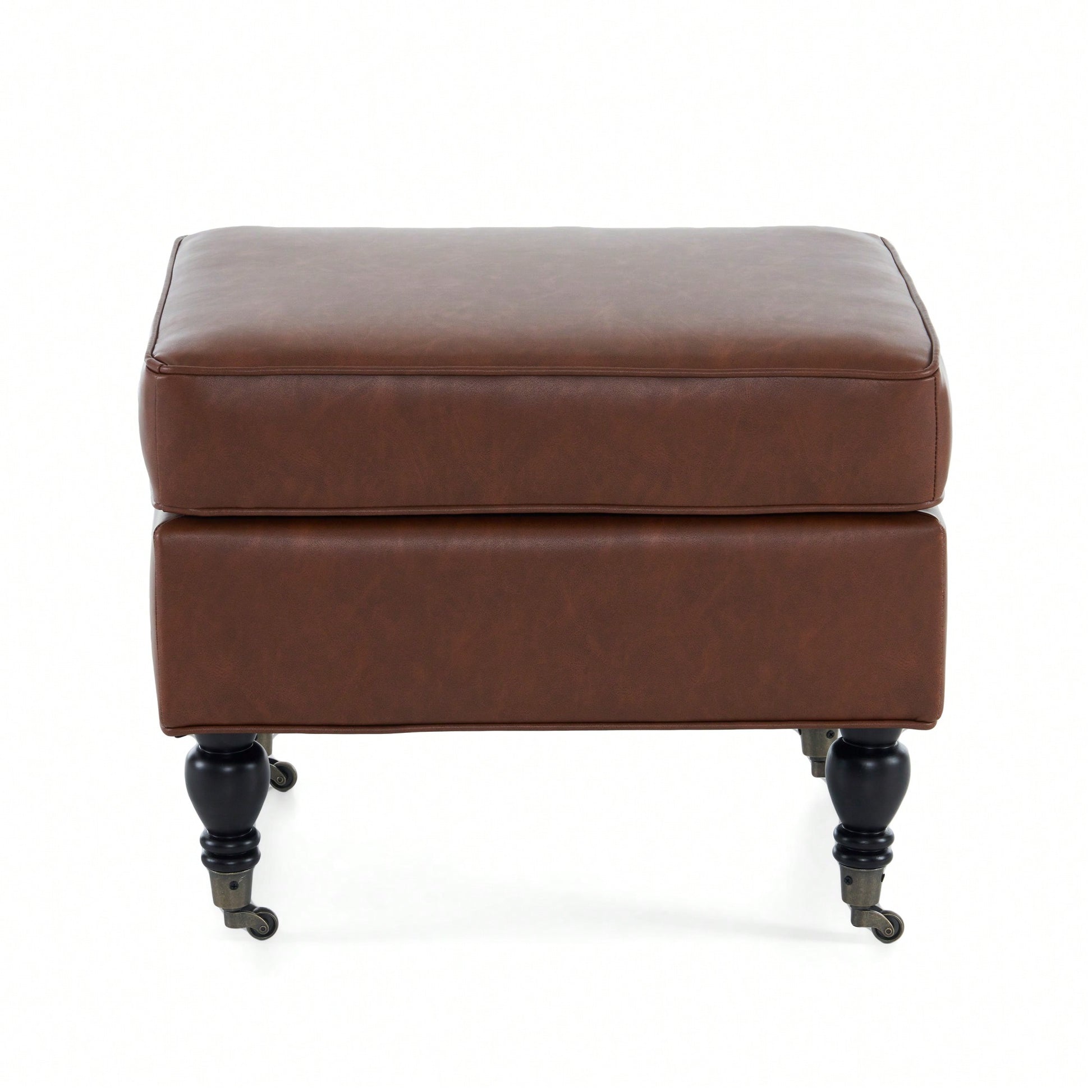 PU Leather Ottoman With Solid Wood Legs And Rolling Casters For Versatile Home Decor Brown