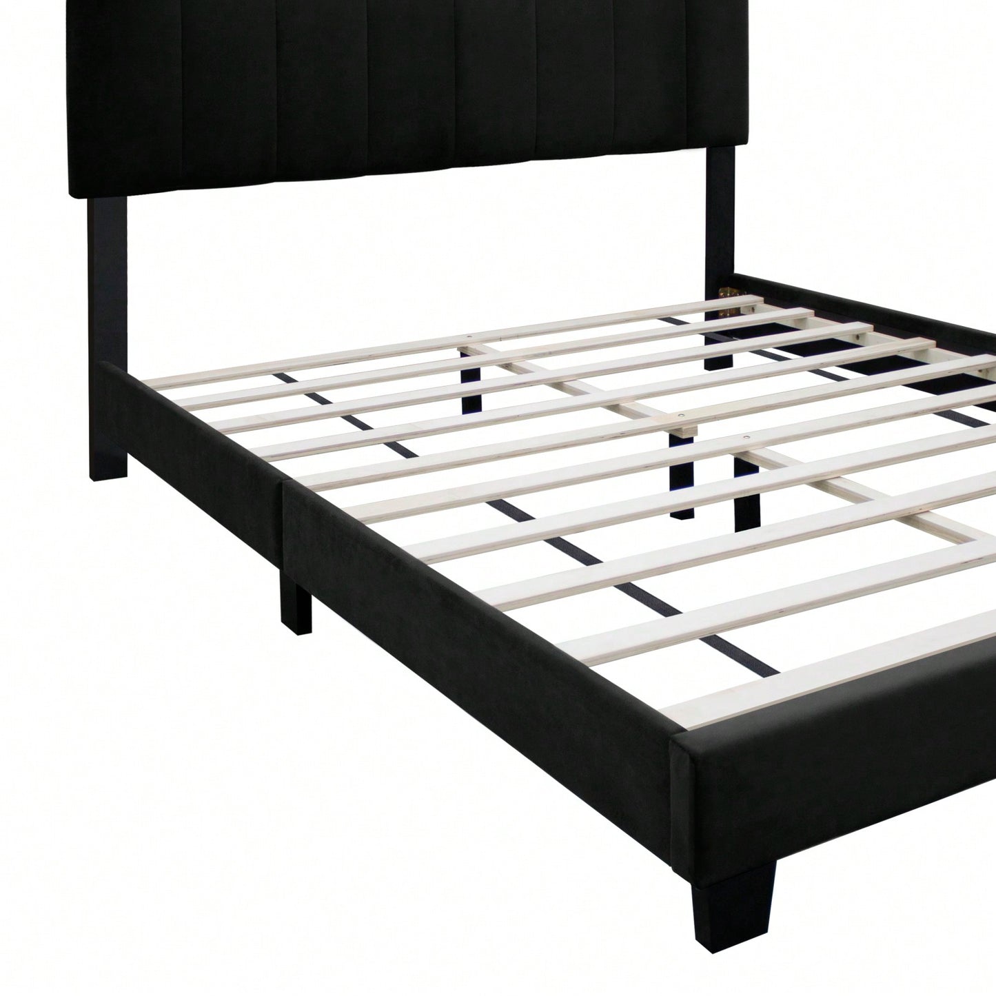 The Queen Size Adjustable Upholstered Bed Frame from the Dark Velvet Collection exudes comfort and simplicity. The plush velvet upholstery adds a touch of elegance and glamor to any bedroom. Its color varies with perspective and lighting, showcasing a darker hue in the shadows and a lighter shade in bright interior lighting. The innovative construction of durable wood and steel slats ensures excellent support and prolongs the life of the mattress. The adjustable headboard can be set to two different heights, 11'' or 15'', to cater to various visual and viewing angles. The professional design takes into account the principles of ergonomics, providing optimal support for the neck, back, waist, and buttocks. Easy to assemble, this upholstered bed includes all necessary parts, tools, and instructions in a single box, with an estimated assembly time of 60 minutes.