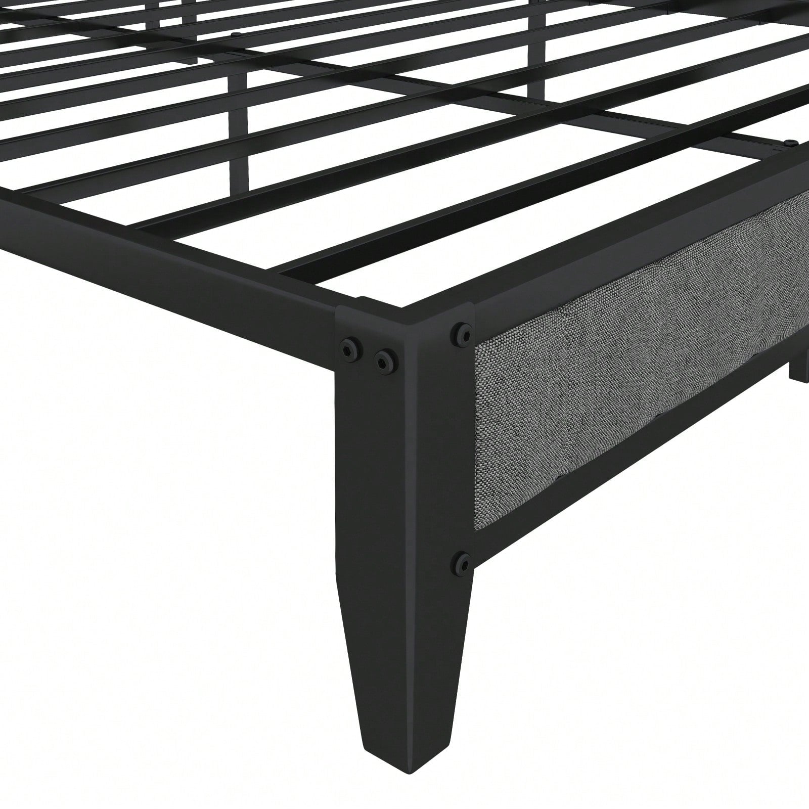 This queen-size bed frame combines modern functionality with classic American design. The headboard features built-in charging capabilities, allowing you to power up your devices with ease. Constructed with a sturdy metal platform, it offers excellent support for your mattress and eliminates the need for a box spring. The wide-set legs, crafted from angled iron, add durability and a touch of vintage charm. The upholstered headboard and built-in shelf further enhance both the comfort and practicality of this bed frame. The generous under-bed clearance provides additional storage space.