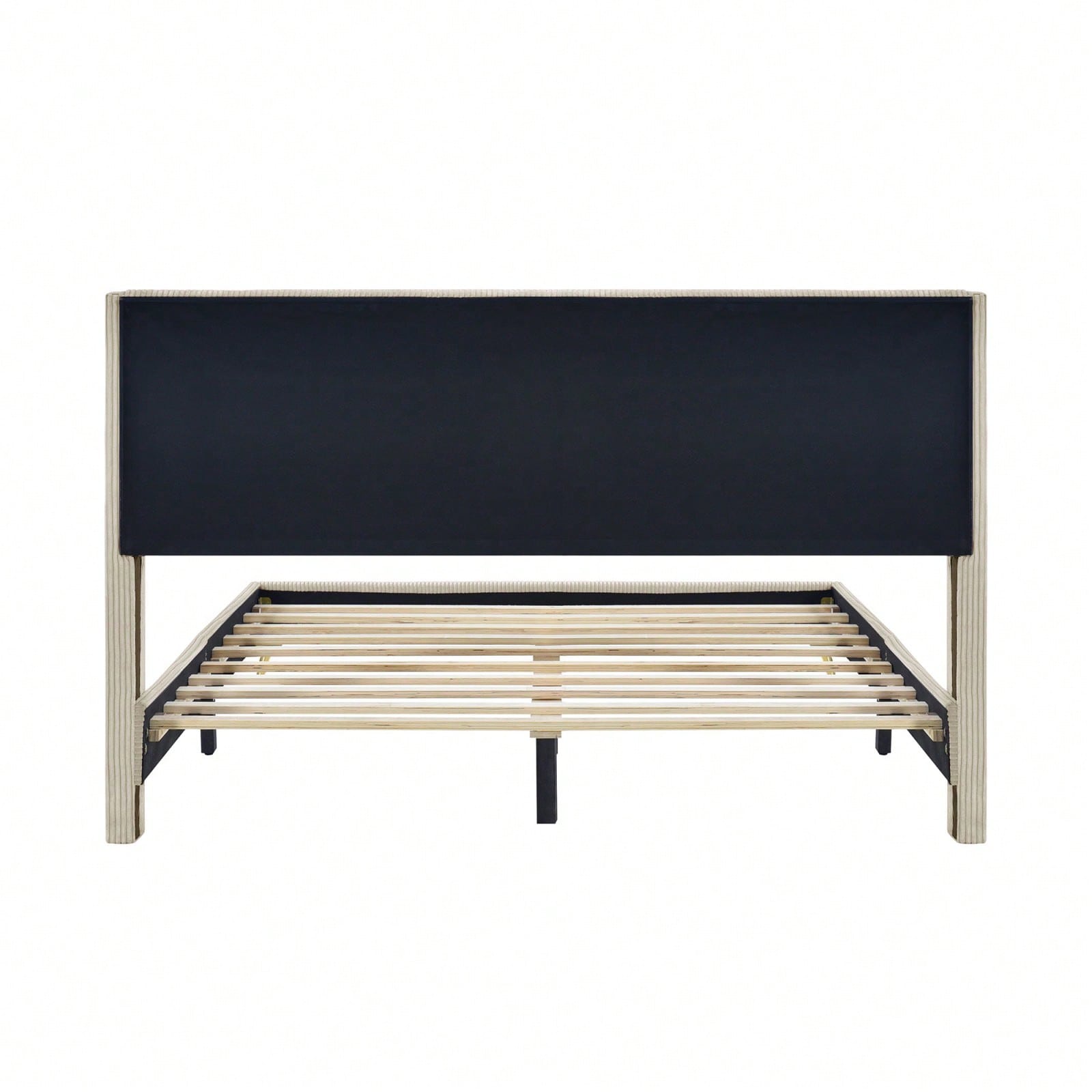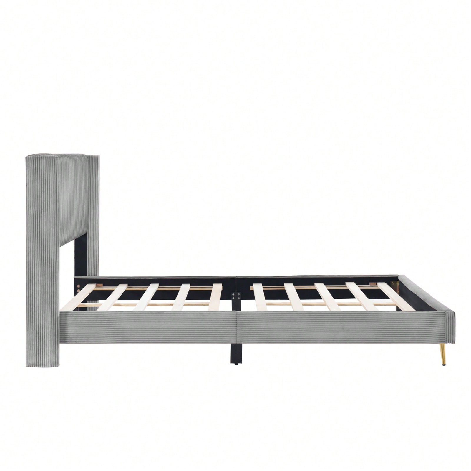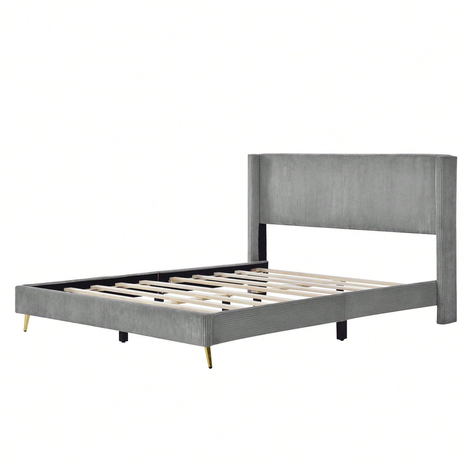 Queen Size Corduroy Platform Bed With Metal Legs,Upholstered Headboard, Sturdy Support, Easy Assembly - Modern And Timeless Design