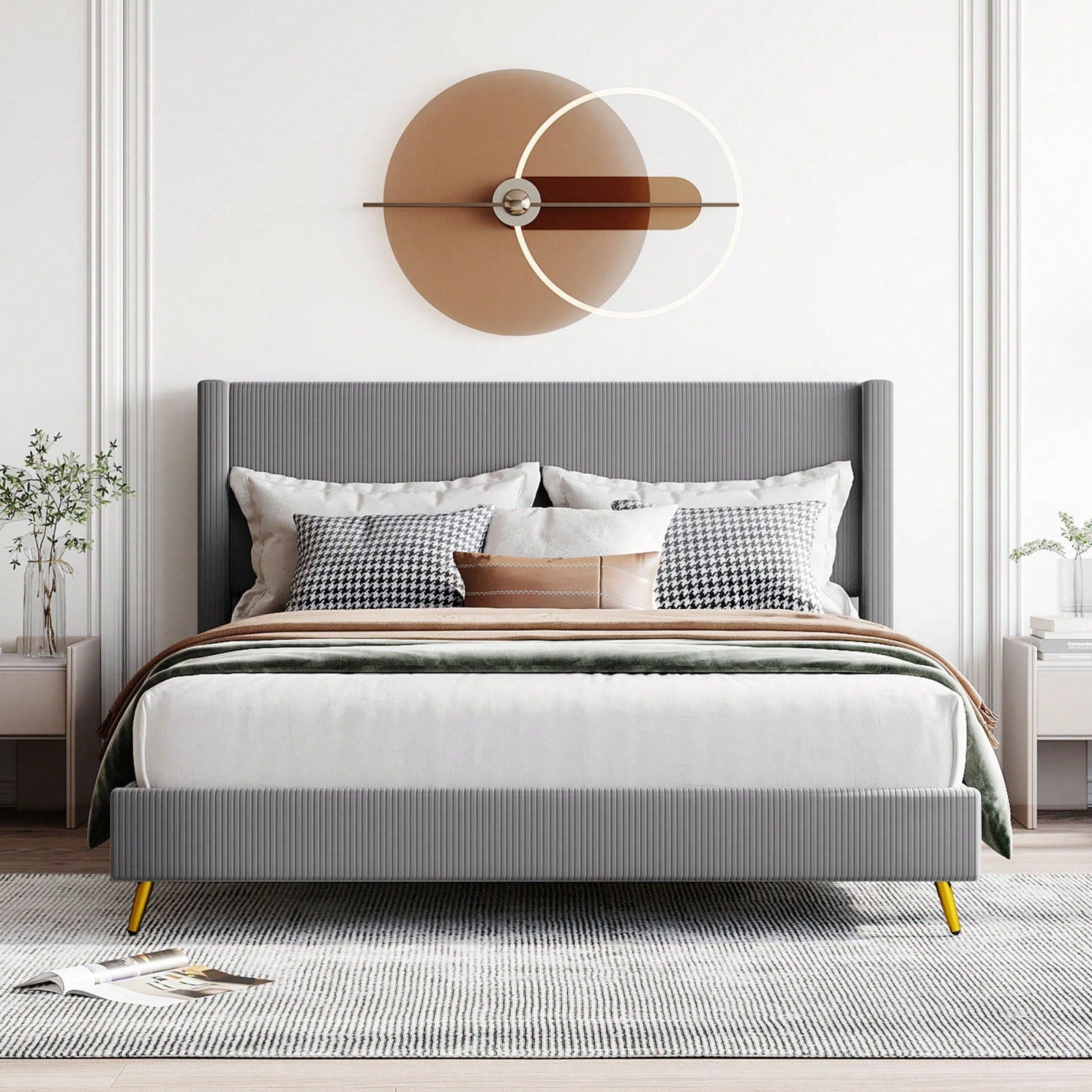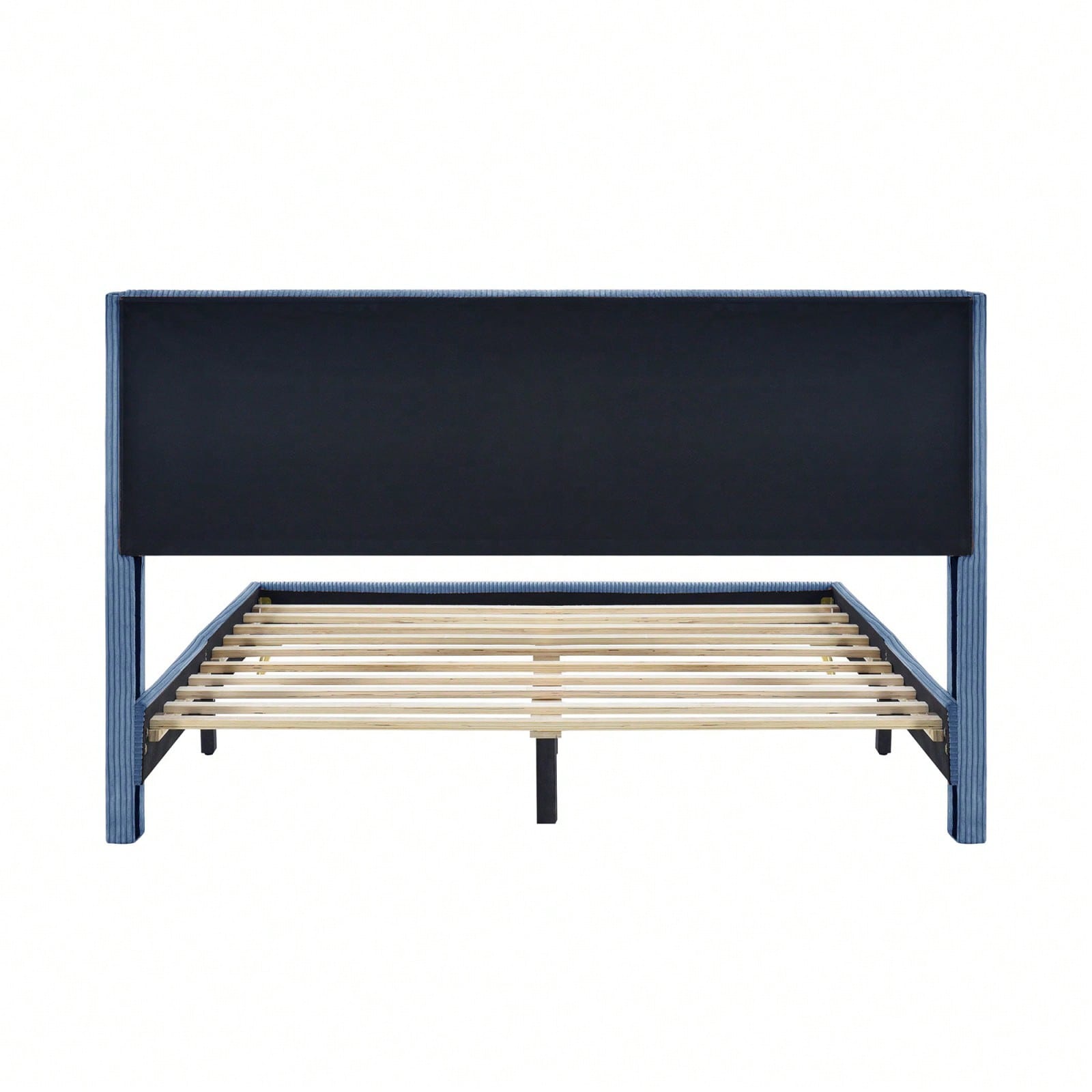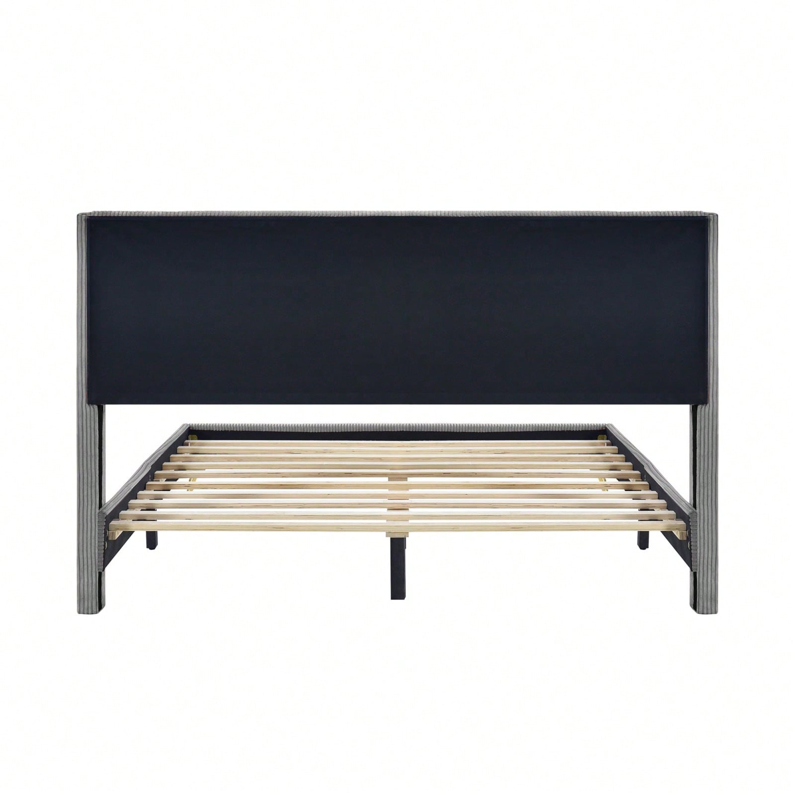 Queen Size Corduroy Platform Bed With Metal Legs,Upholstered Headboard, Sturdy Support, Easy Assembly - Modern And Timeless Design