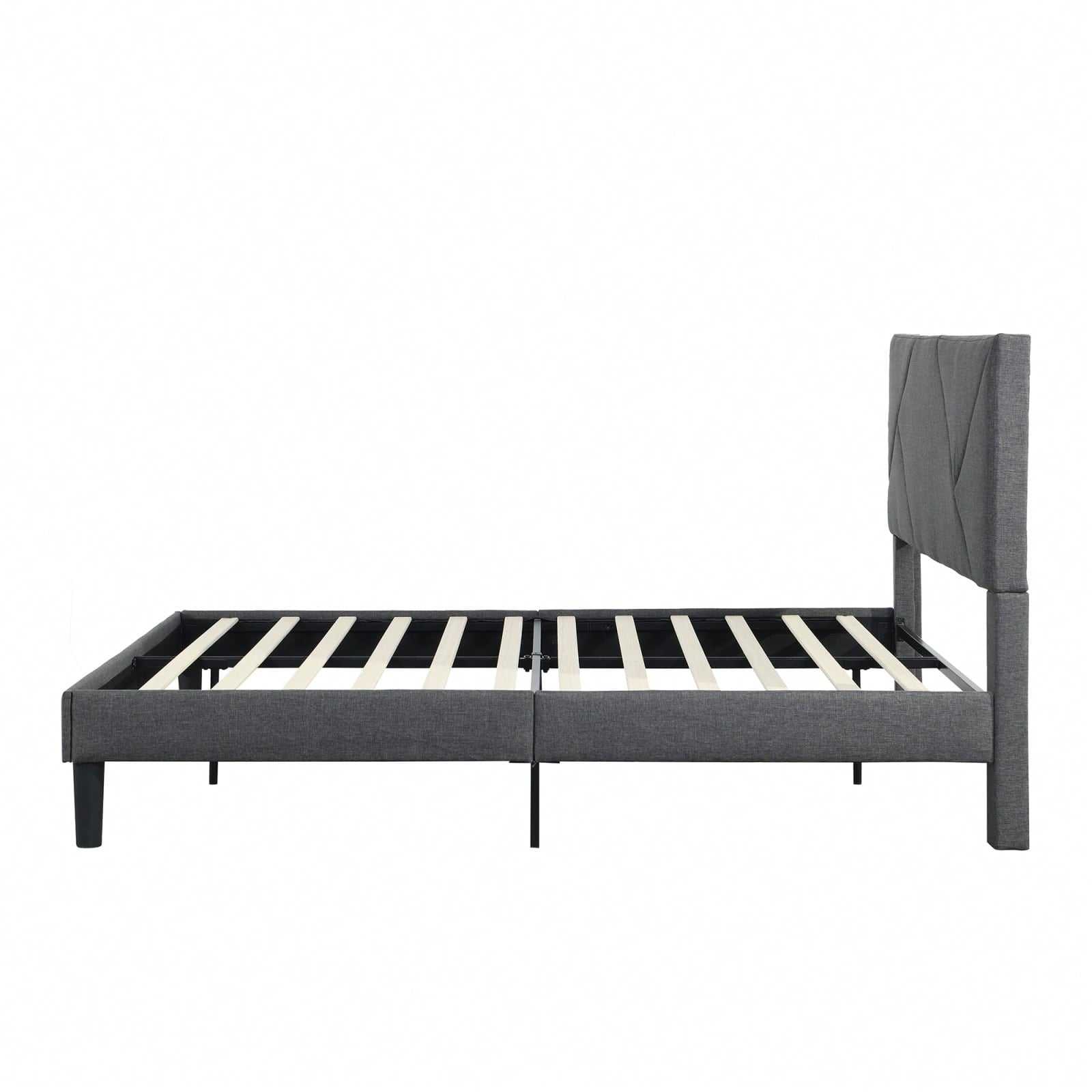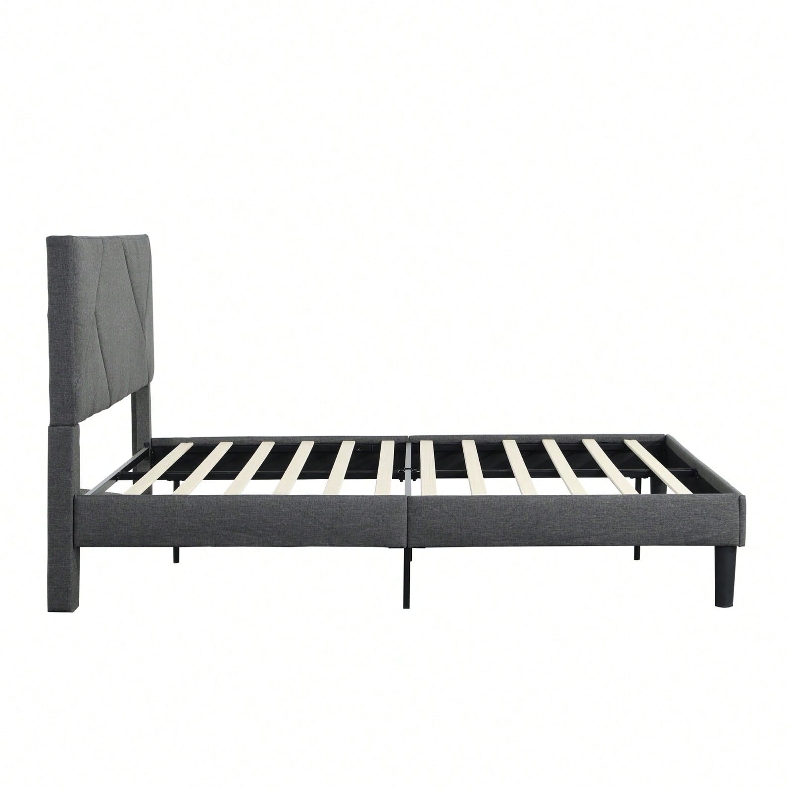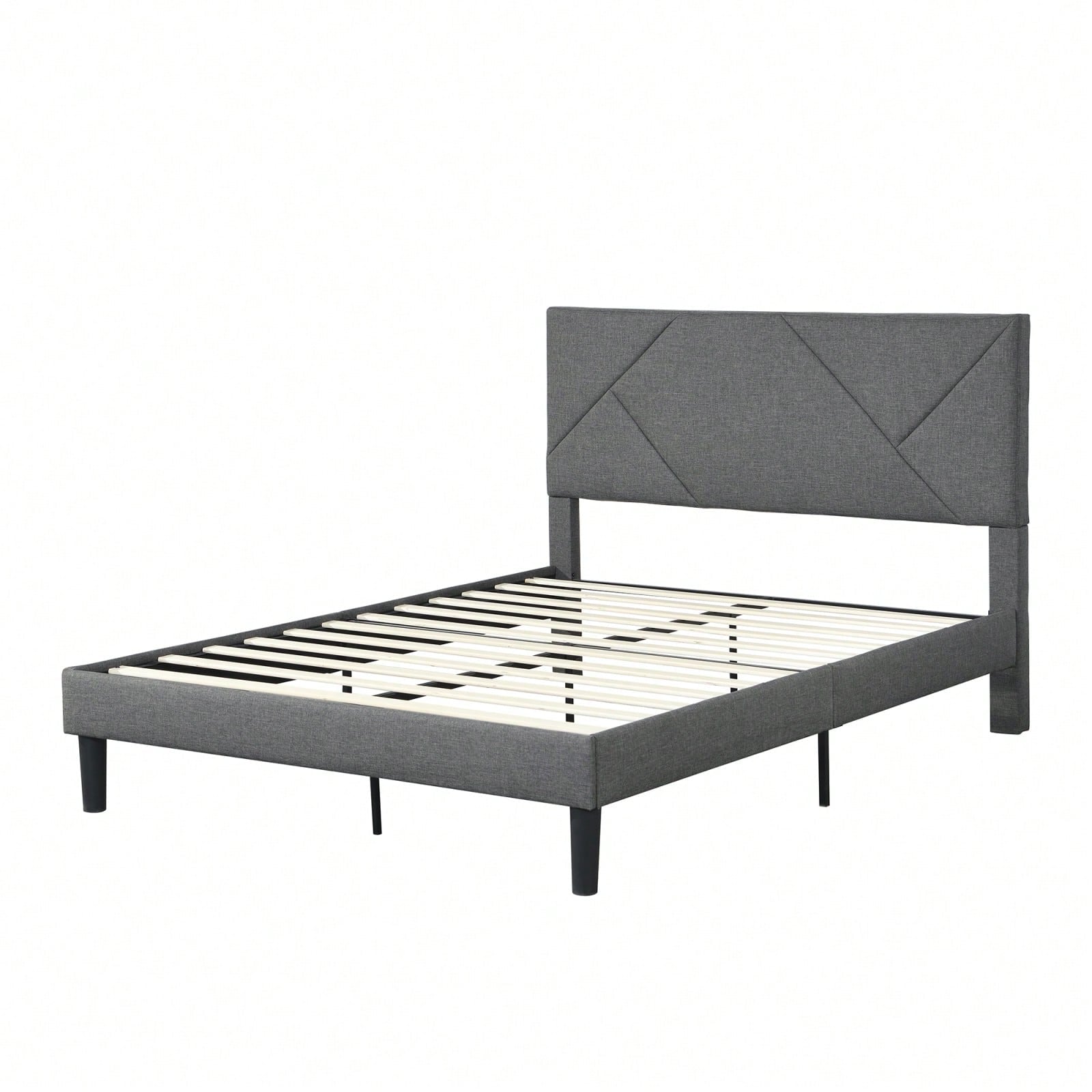 1. Modern and stylish Queen Size Upholstered Platform Bed Frame in elegant grey color adds comfort and sophistication to any bedroom decor.