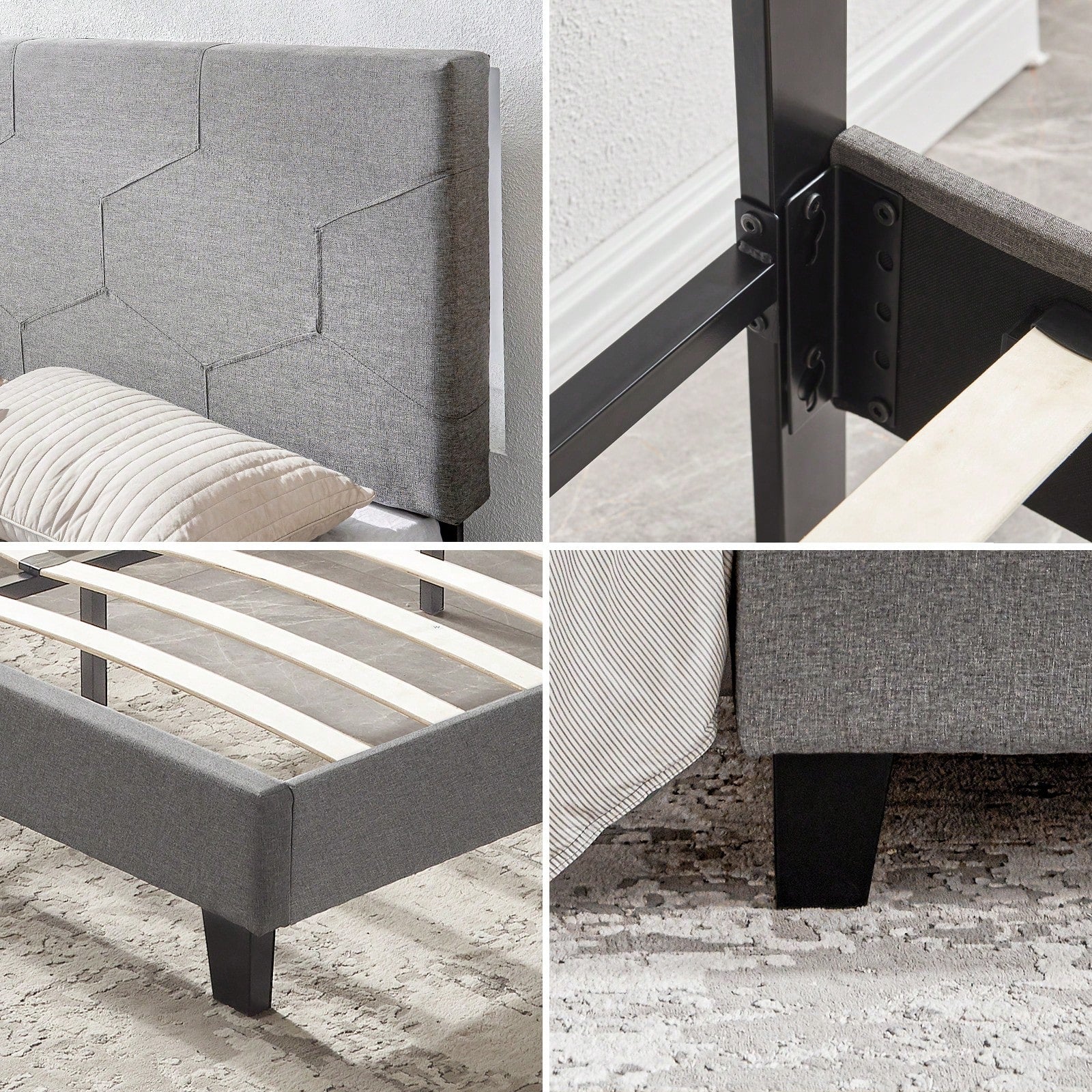 1. Modern and stylish Queen Size Upholstered Platform Bed Frame in elegant grey color adds comfort and sophistication to any bedroom decor.