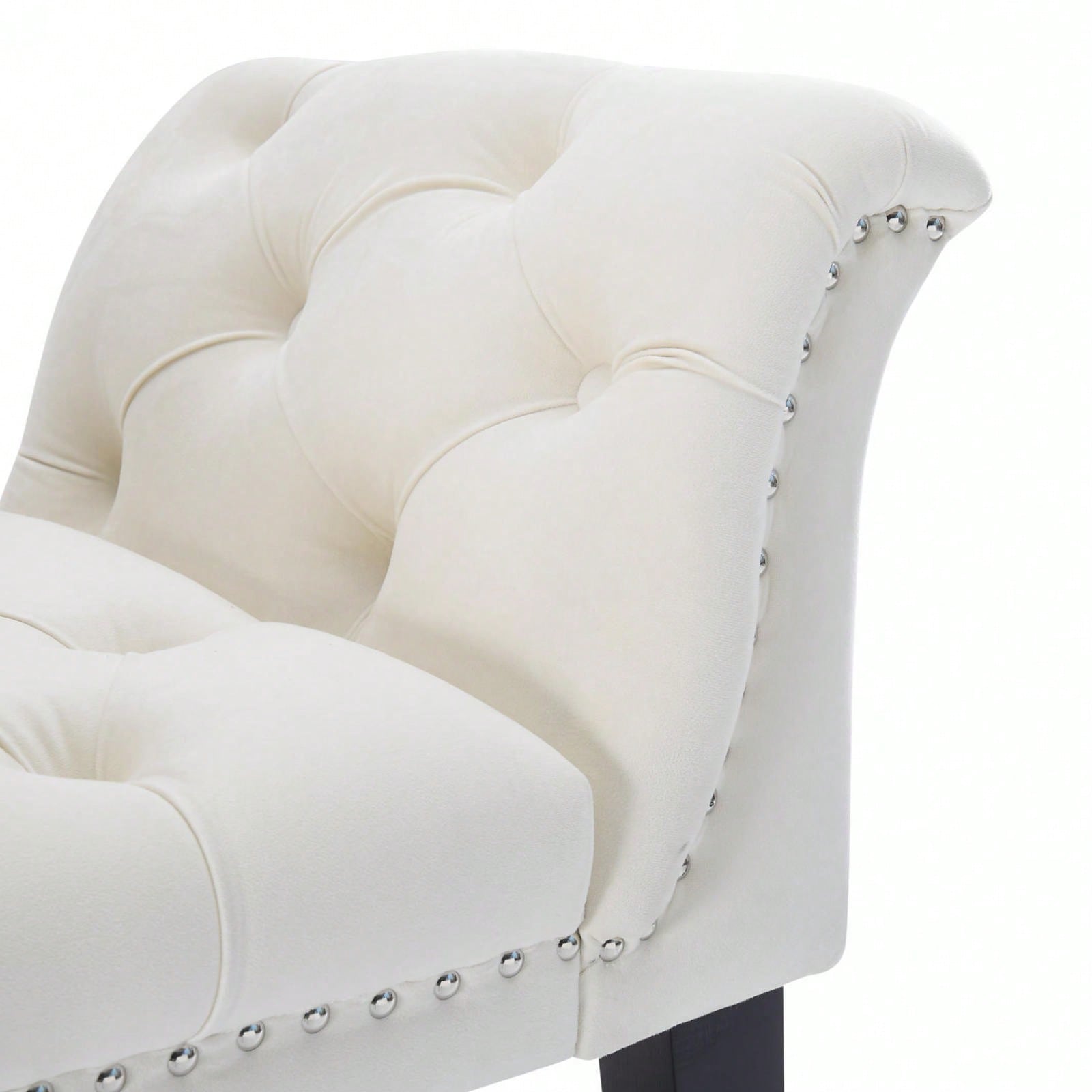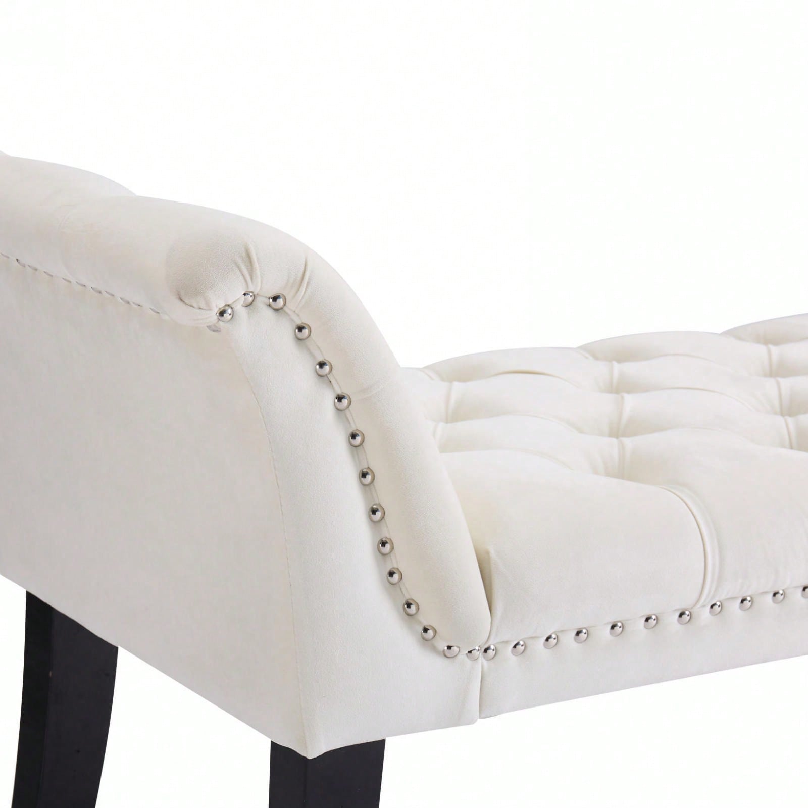 Beige Velvet Button Tufted Ottoman Bench with Nailhead Trim for Living Room Entryway Bedroom