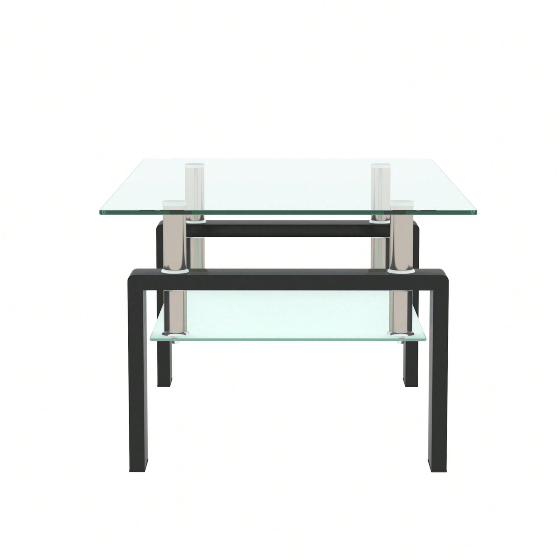 Rectangle Black Glass Coffee Table, Modern Side Center Tables For Living Room