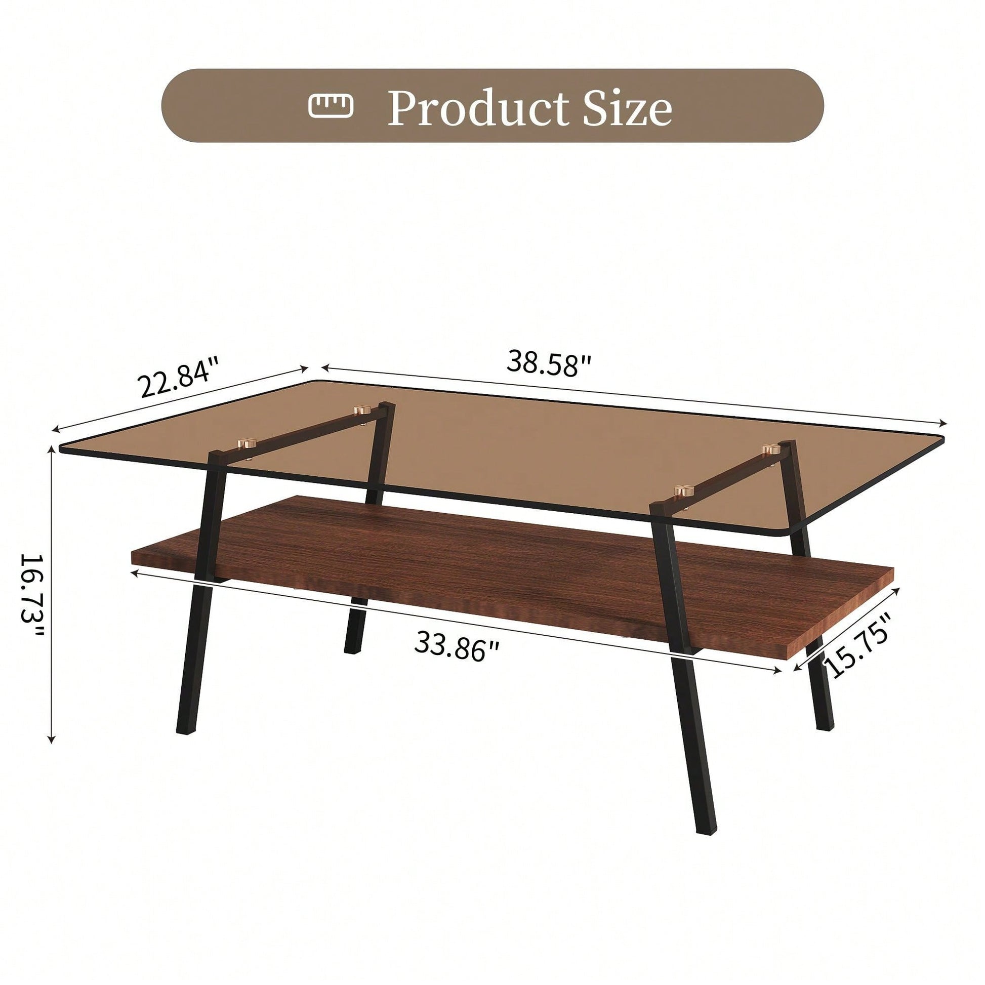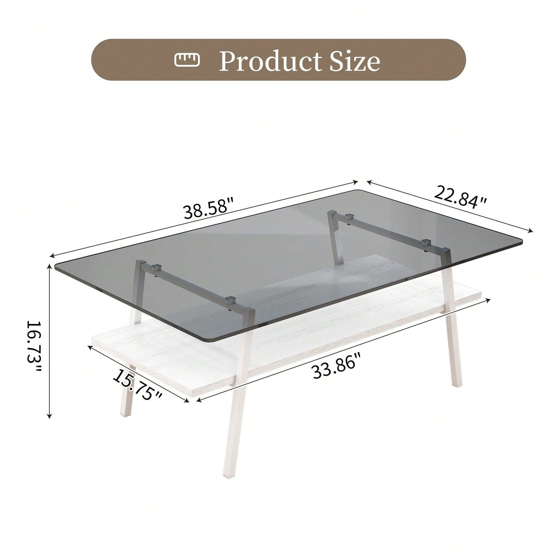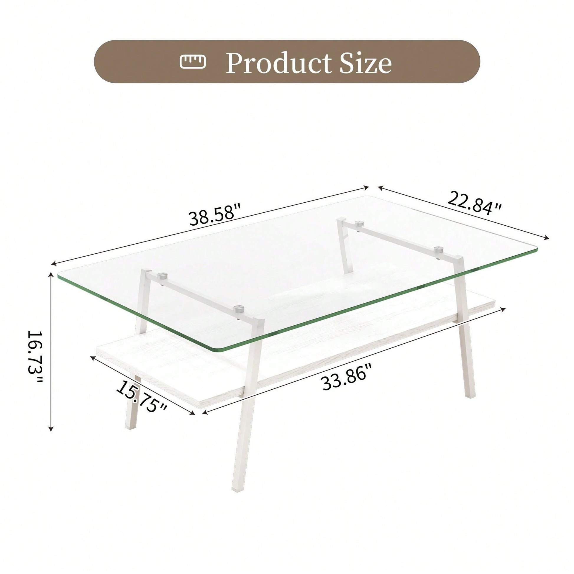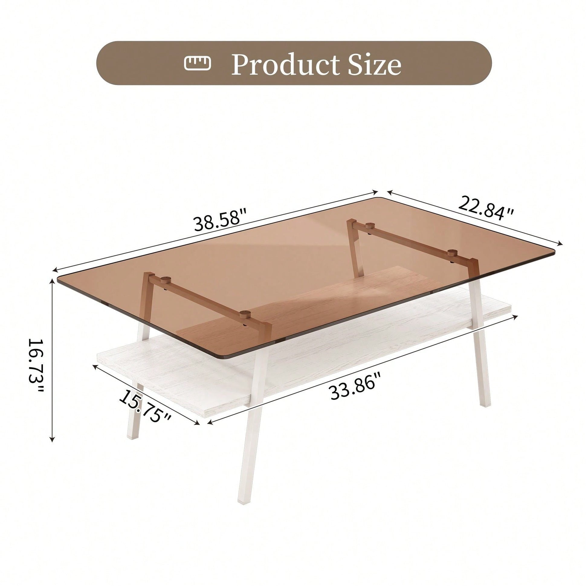 Rectangle Coffee Table, Tempered Glass Tabletop With Metal Legs, Modern Table For Living Room