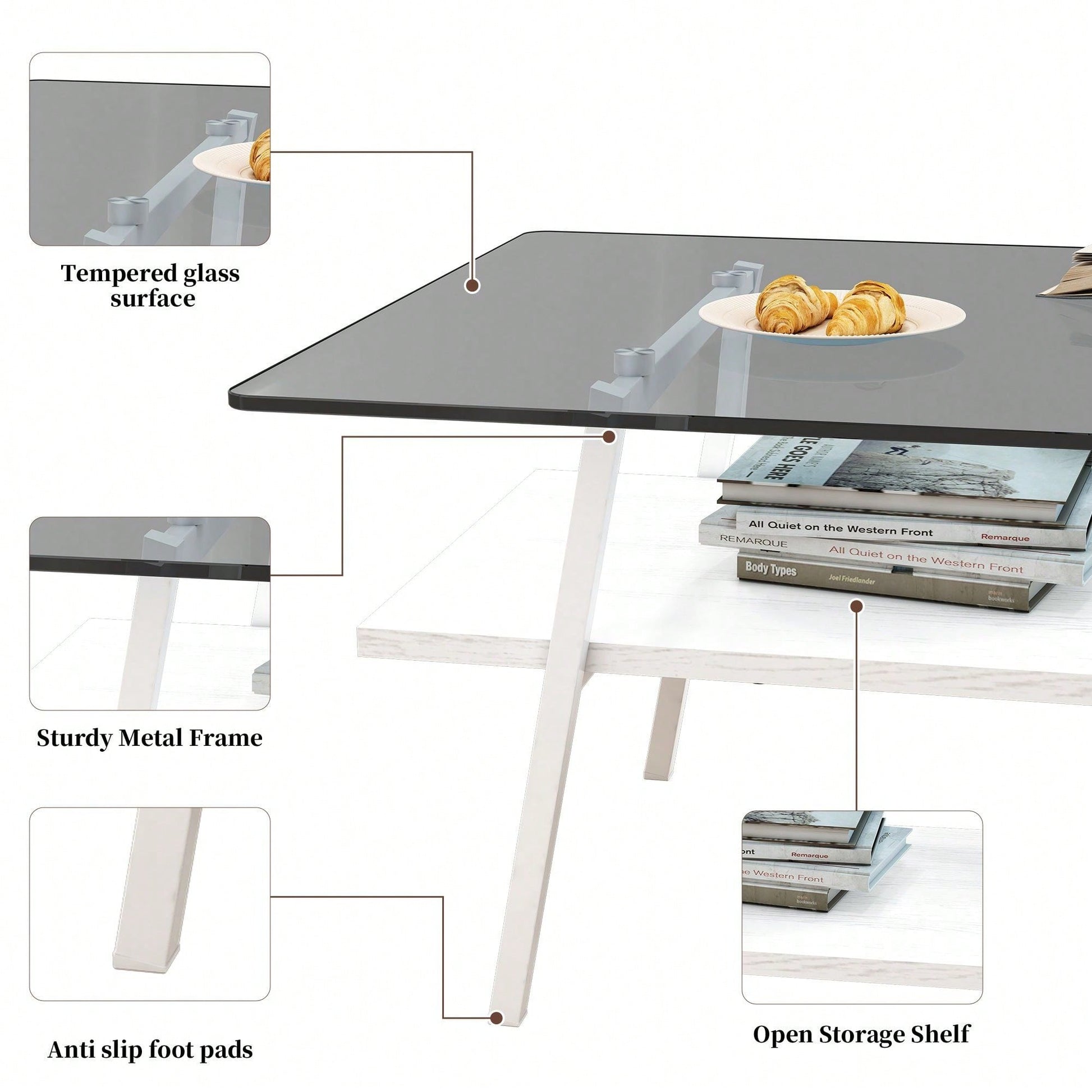 2. Stylish Design: This coffee table features a sleek and modern design with a tempered glass top. The upper panel is made of transparent glass, adding a touch of elegance to living space.