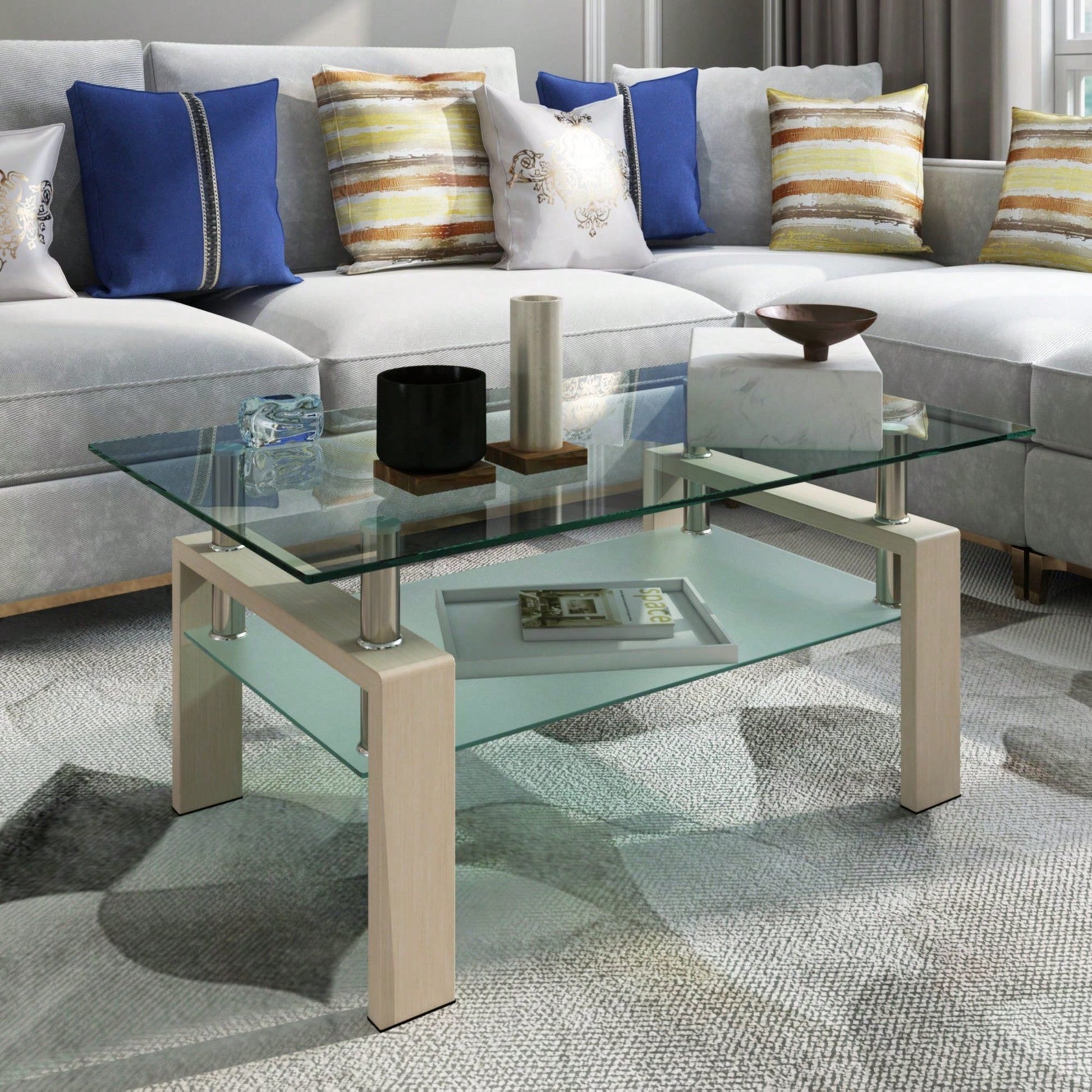 Rectangle Glass Coffee Table, Clear Coffee Table Modern Side Center Tables For Living Room Living Room Furniture