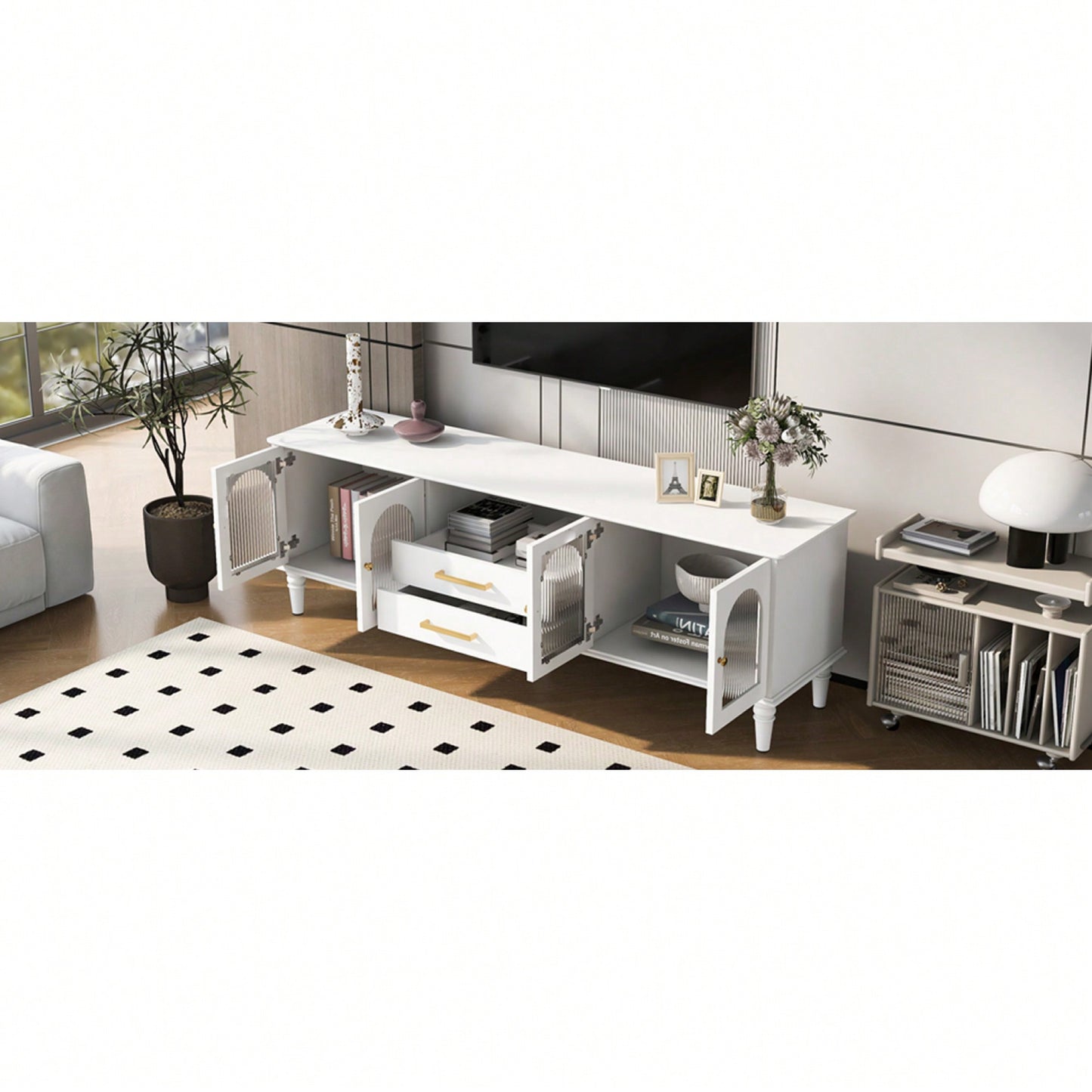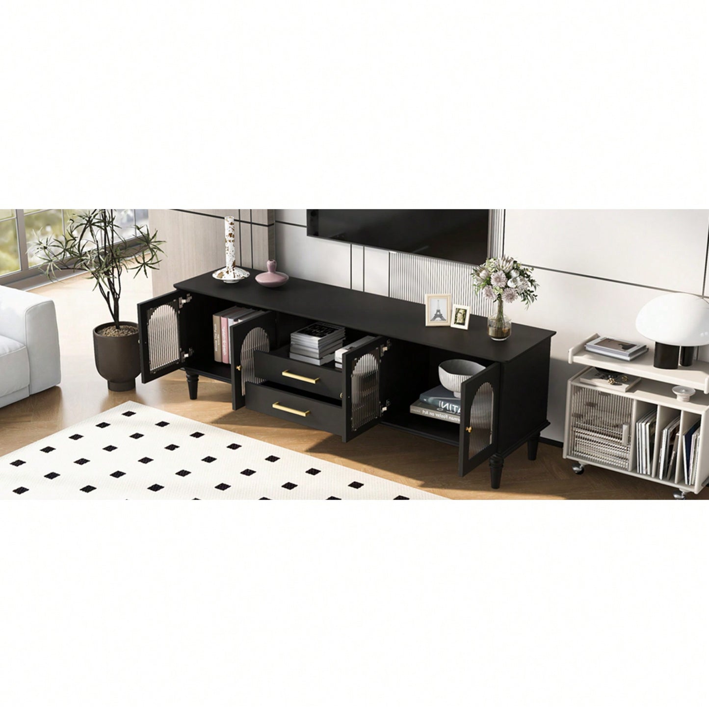 Retro TV Stand For TVs Up To 75 Inches Entertainment Center With Fluted Glass Doors And Solid Wood Legs For Living Room