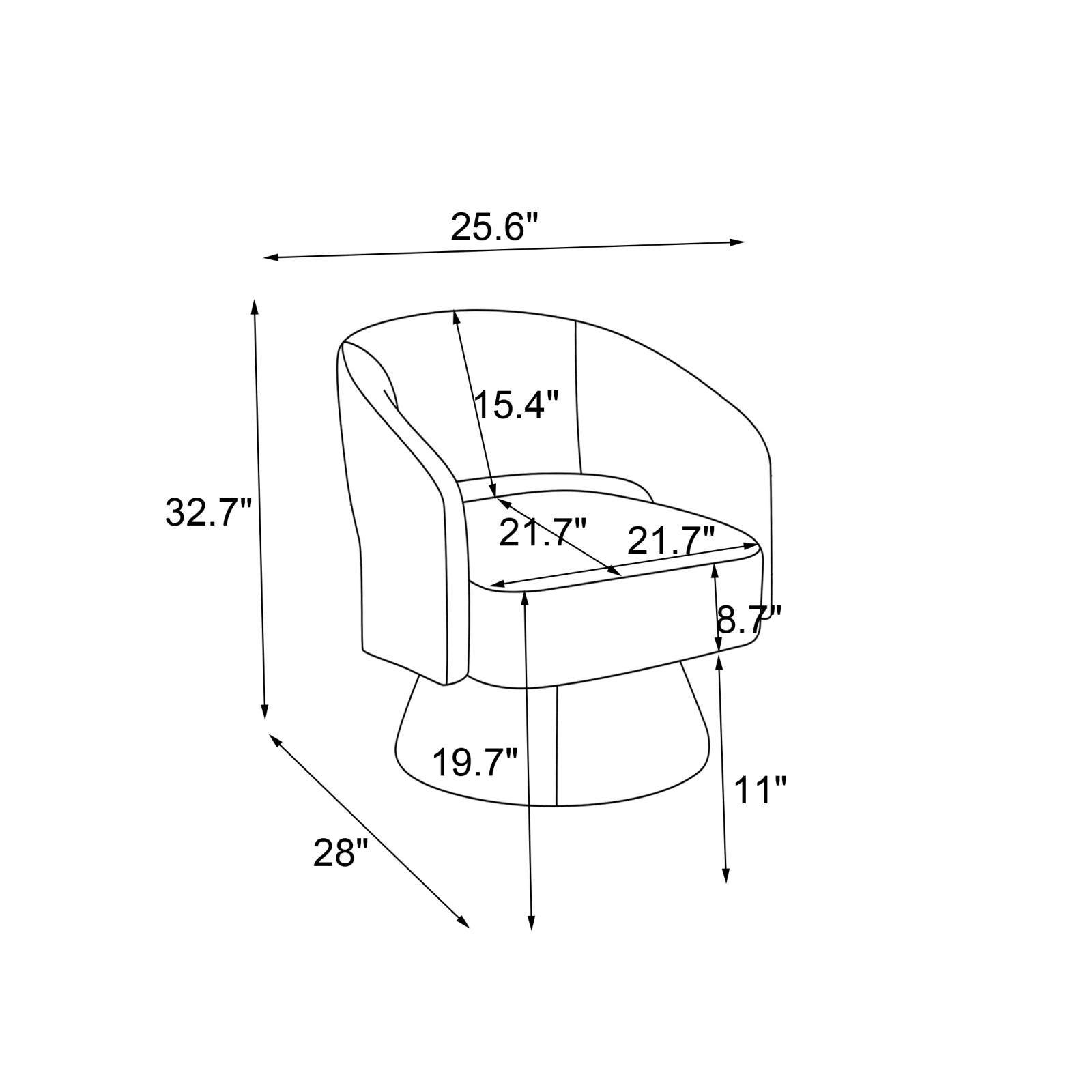 This stylish accent chair features a modern barrel design with a plush, inviting seat. Its round shape and soft upholstery create a cozy and sophisticated feel, perfect for adding a touch of elegance to any living room or bedroom. The chair's swivel base allows for easy movement and conversation, while its sturdy construction ensures lasting comfort and durability. Whether you're curling up with a good book or entertaining guests, this versatile chair is sure to enhance your home décor.