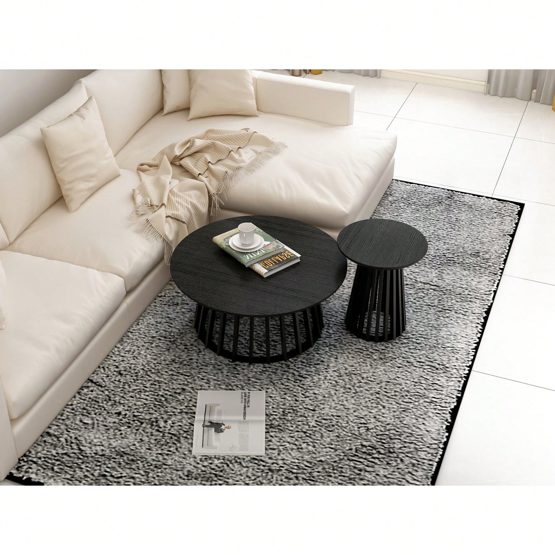 This set of two round coffee tables is designed to enhance your living space with both style and functionality. The melamine finish ensures durability, providing excellent scratch resistance and waterproof capabilities. The unique grille molding adds a touch of elegance while allowing for air circulation. With non-slip foot pads, you can rest assured that your floors will remain unscathed. The sturdy pine wood base strengthens the overall structure, making these tables perfect for your bedroom, living room, or balcony.