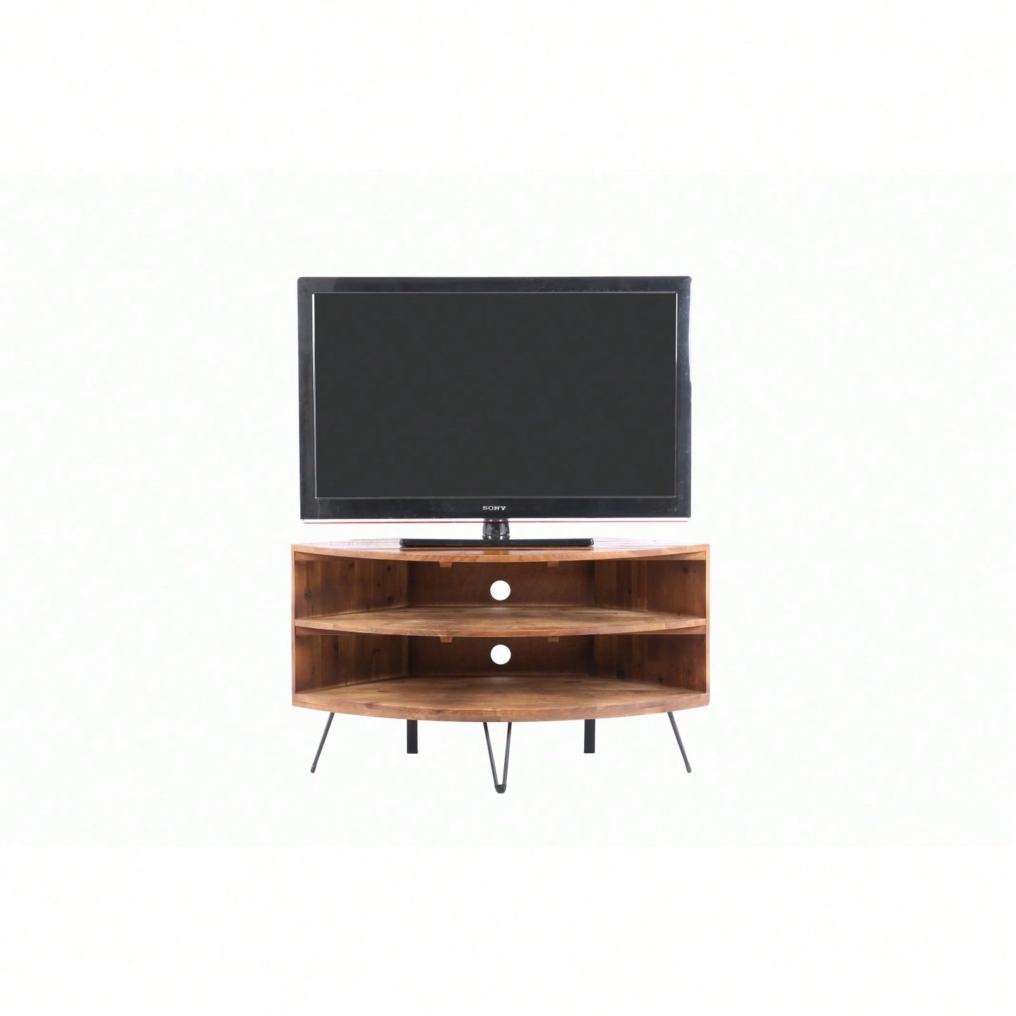 Rustic Corner Media Stand Fan Shaped TV Console Table Reclaimed Wood Finish Space Saving Entertainment Center for Living Room