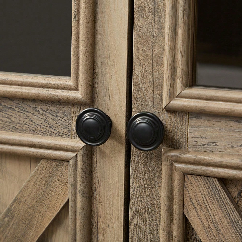 - Rustic farmhouse design with barn doors and black metal handles