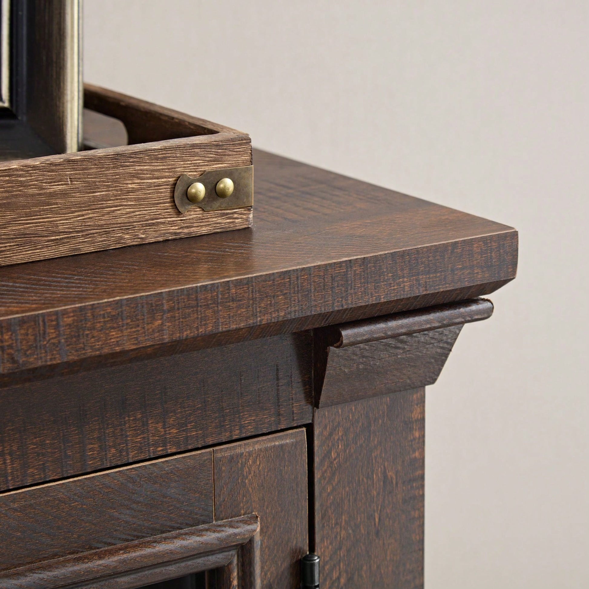 - Wide tabletop for displaying appliances like microwaves and coffee makers