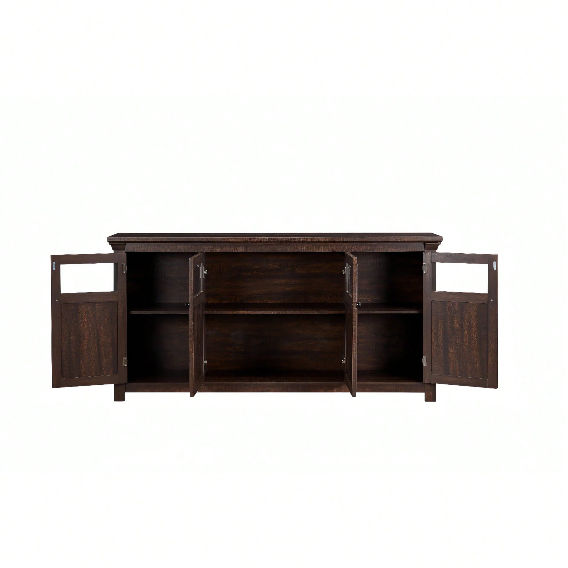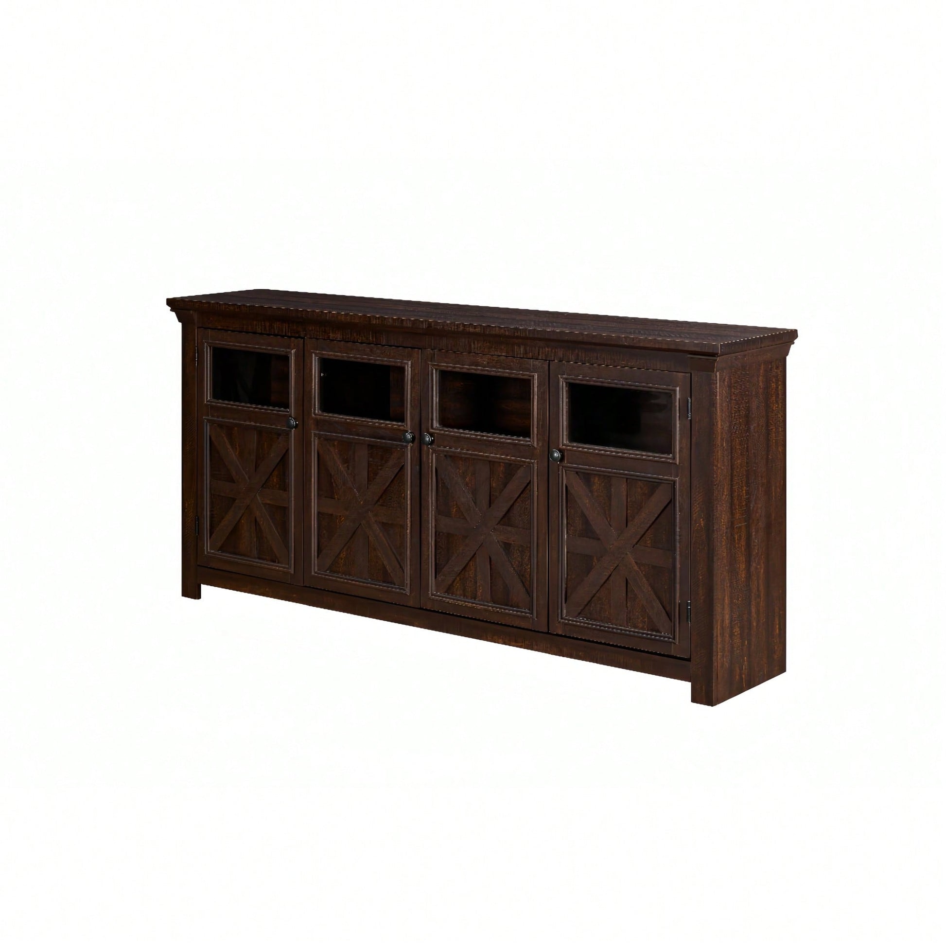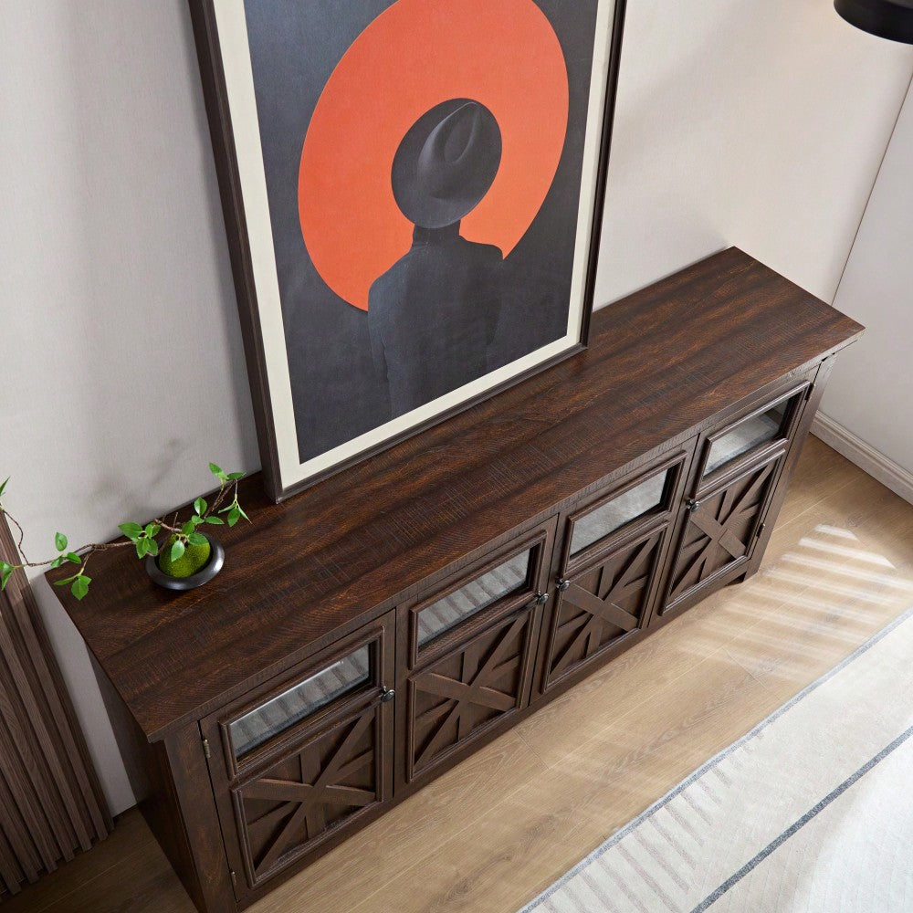 Rustic Farmhouse Buffet Cabinet with 4 Doors Adjustable Shelves Espresso Finish 68.35L x 15.35W x 34.65H for Kitchen Living Room Storage