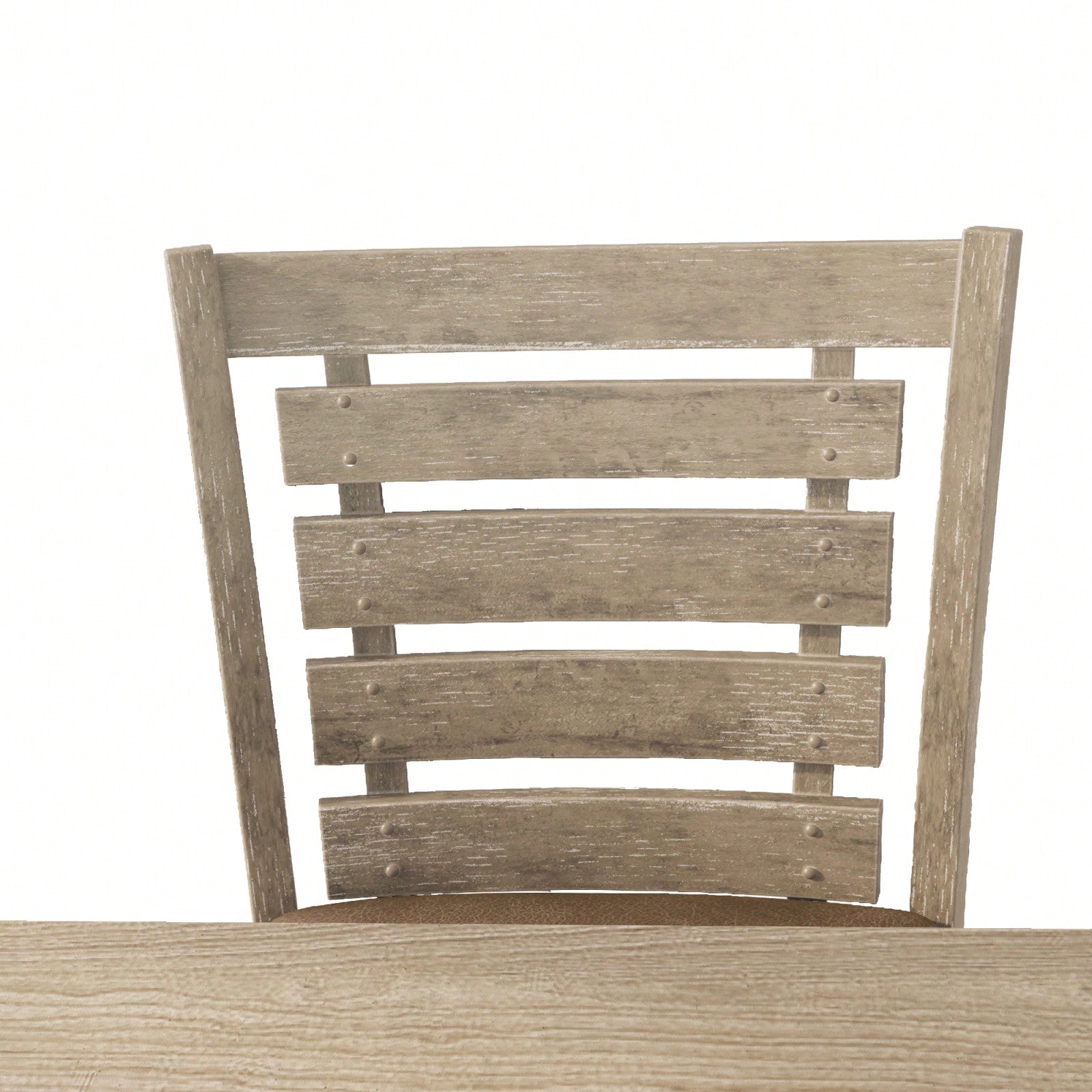2.Crafted from weathered wood, these chairs feature a natural, distressed finish that exudes a warm and inviting ambiance. The horizontal slatted backrest design offers a contemporary twist, seamlessly integrating with a variety of decor styles, from modern farmhouse to industrial-chic.