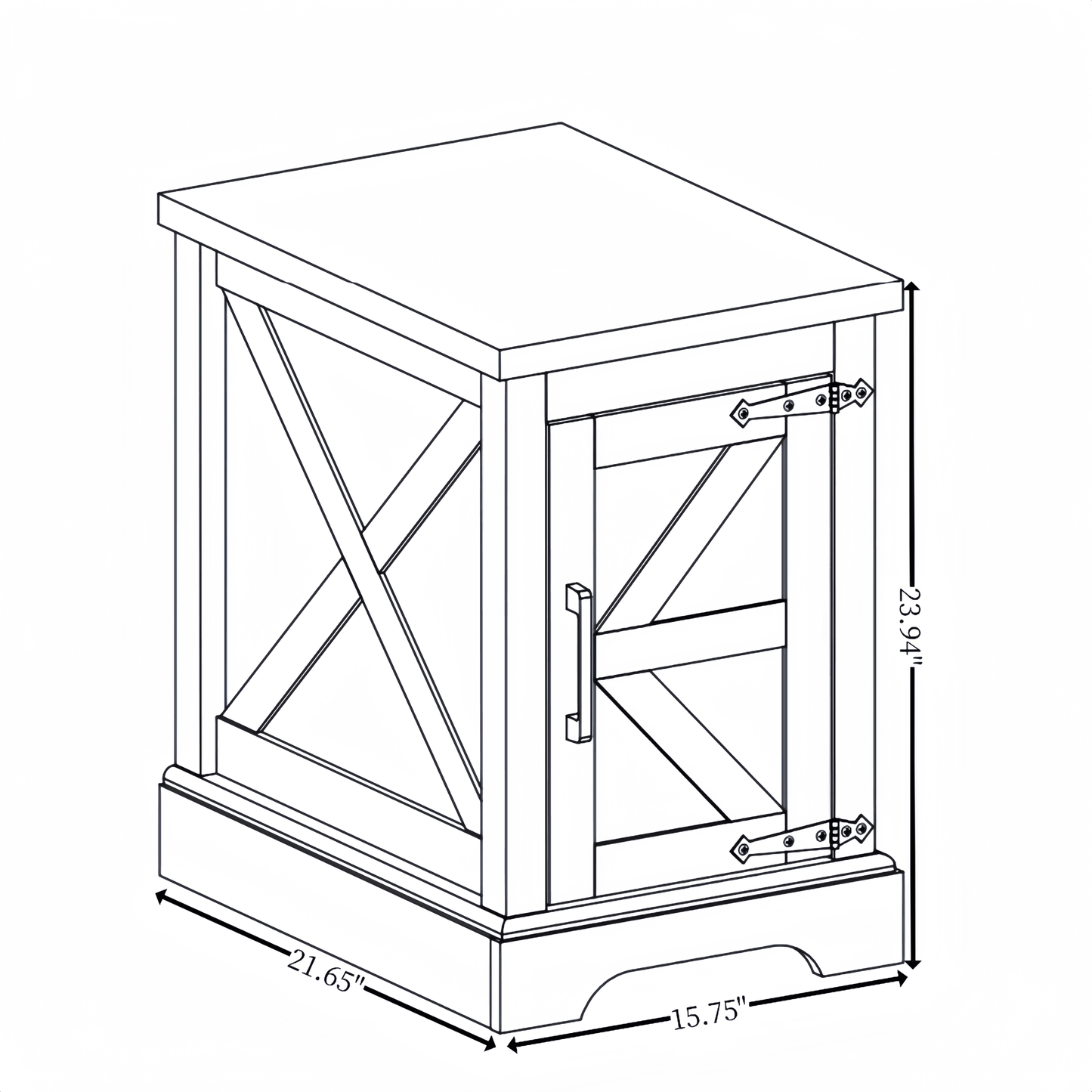 This end table embodies timeless elegance with its classic design reminiscent of farm barn doors, enhanced by sleek metal accents that provide a vintage touch. Its unique wood grain surface captures the essence of natural wood, promoting an inviting and warm atmosphere in your home. Designed to declutter your living space, it features ample storage for magazines, books, and personal items while maintaining a charming rustic aesthetic. The versatile design makes it suitable for use as a stylish nightstand in the bedroom or a chic side table in the living room, effortlessly transitioning to fit your needs with an added sense of luxury and practicality.
