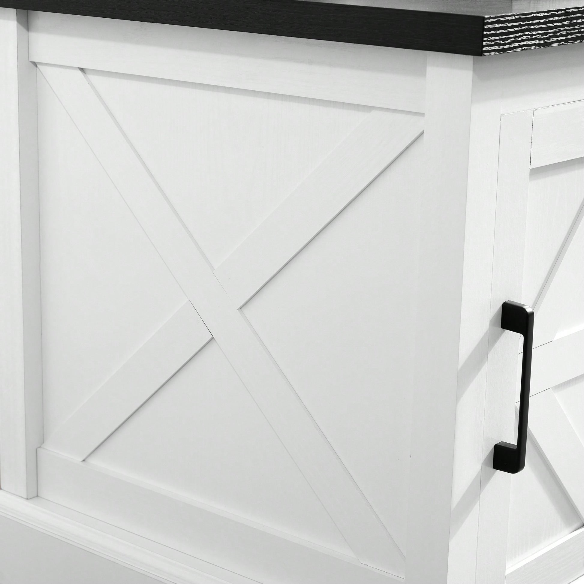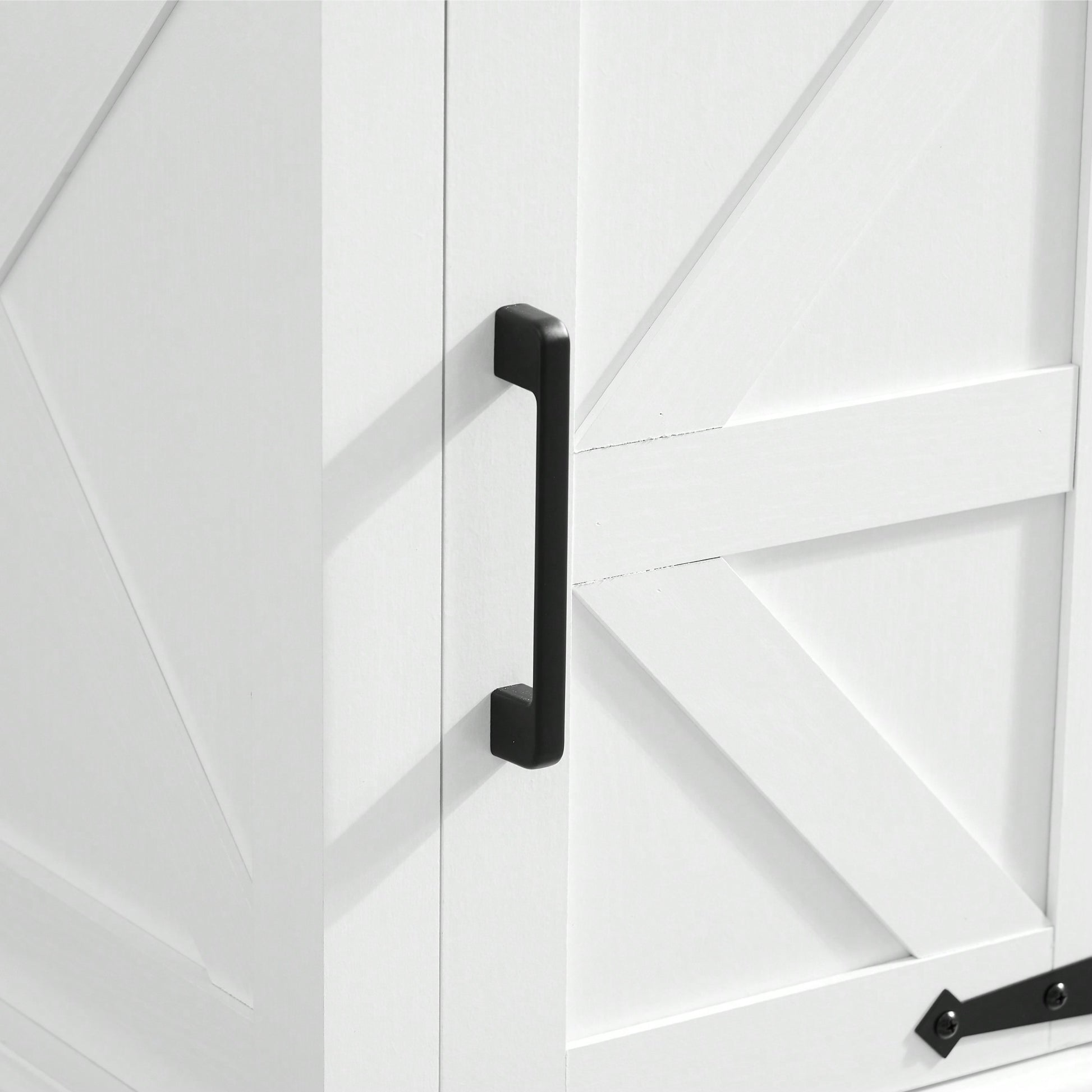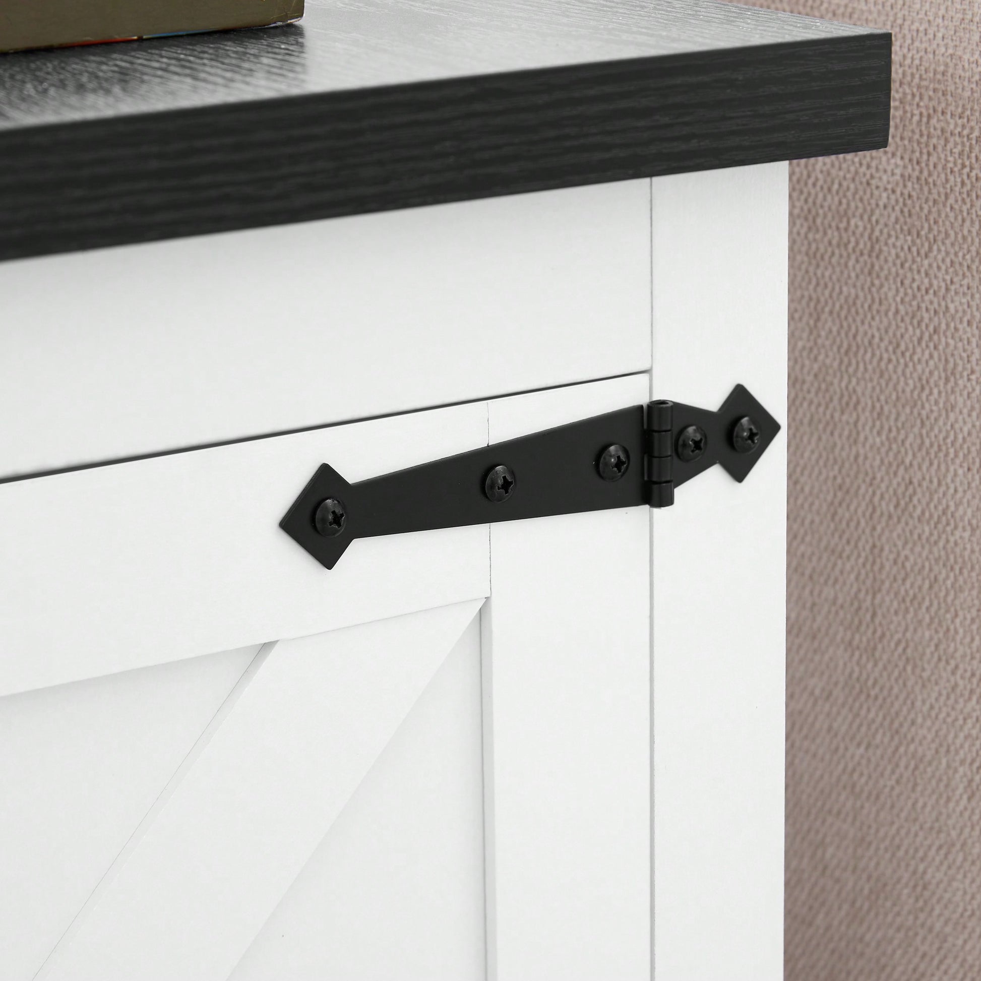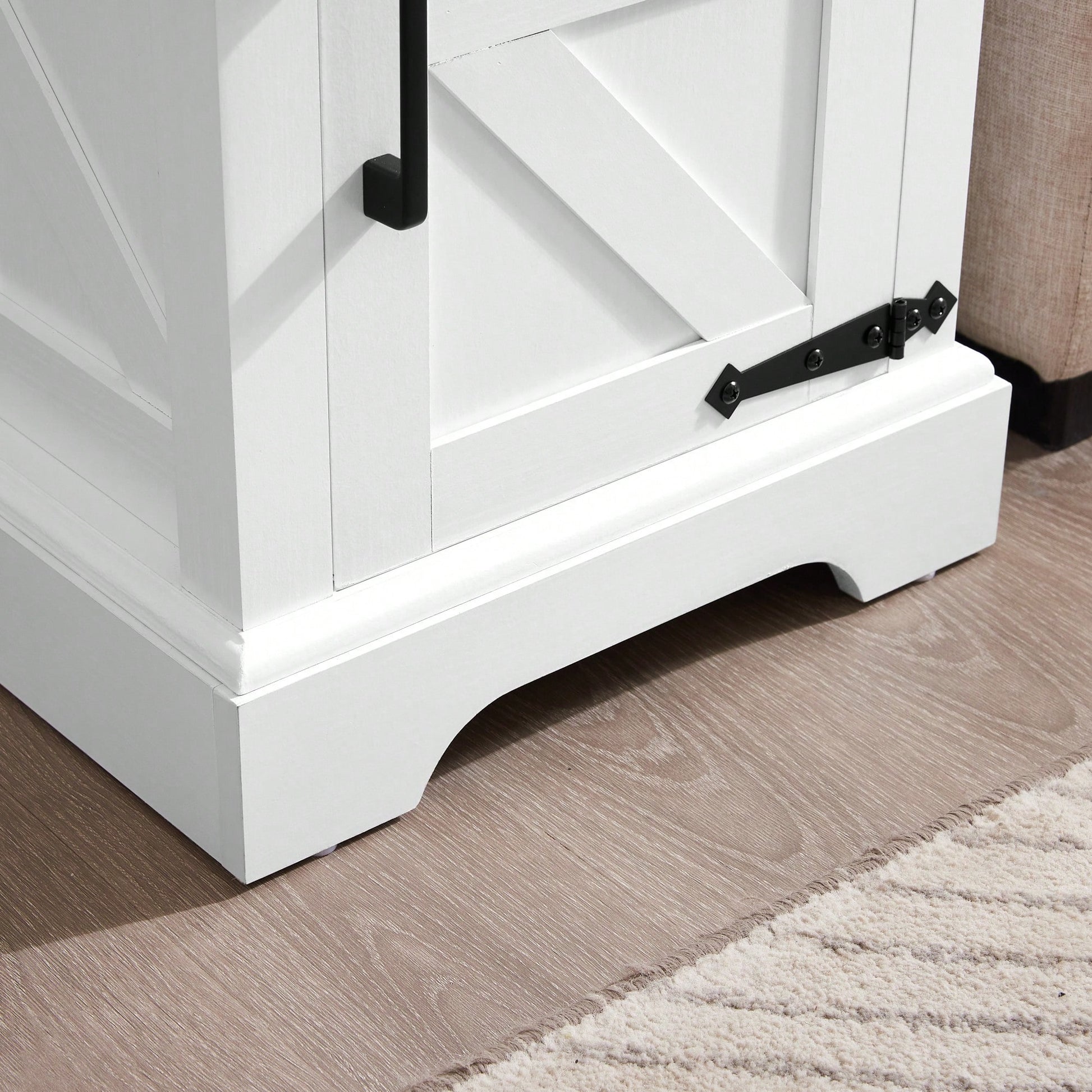 Farmhouse Style Rustic Rectangular Nightstand with Barn Door and Adjustable Shelf White Finish for Living Room and Bedroom