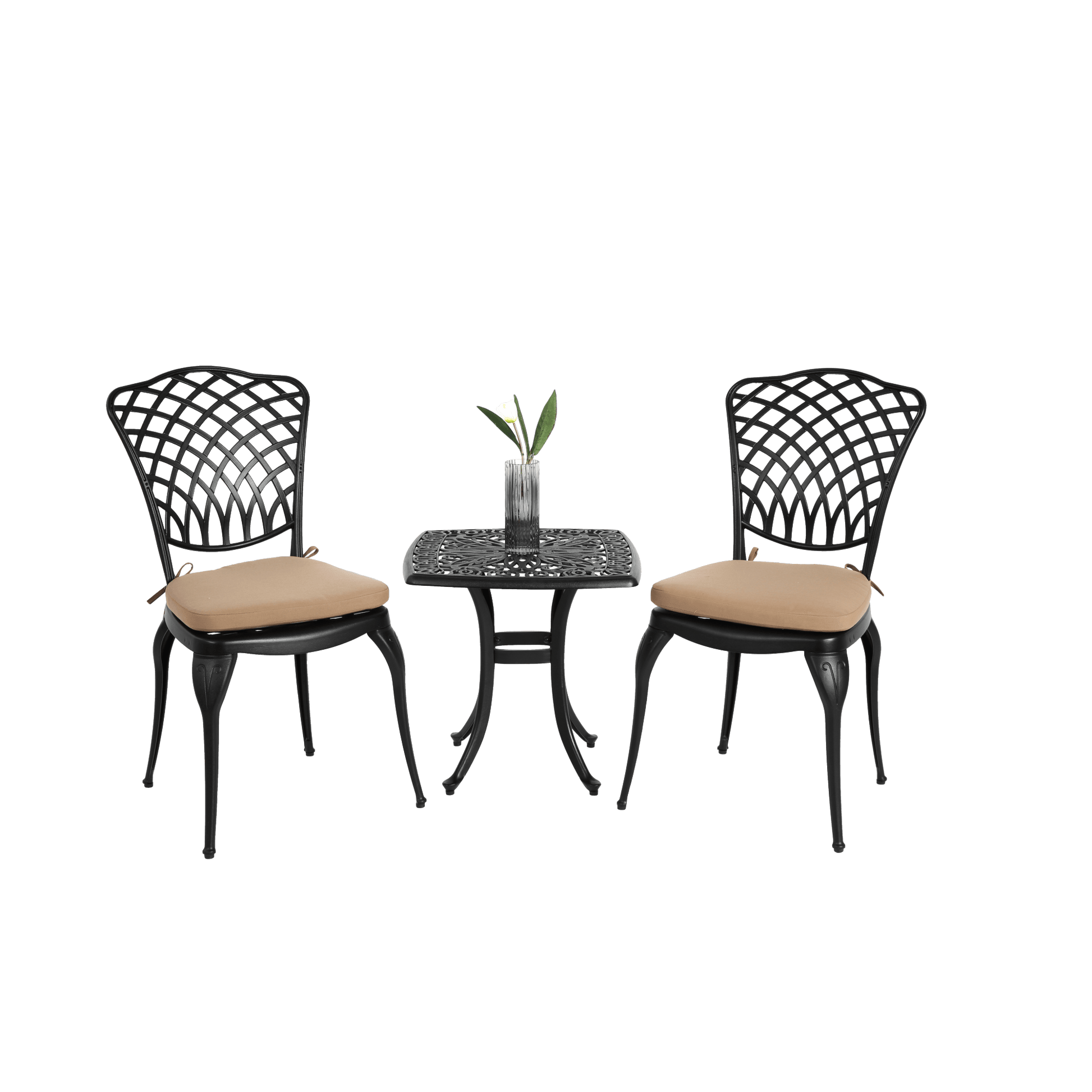 Rustproof Cast Aluminum 3 Piece Bistro Set With Cushions For Outdoor Patio Garden Balcony - 2 Chairs And Round Table