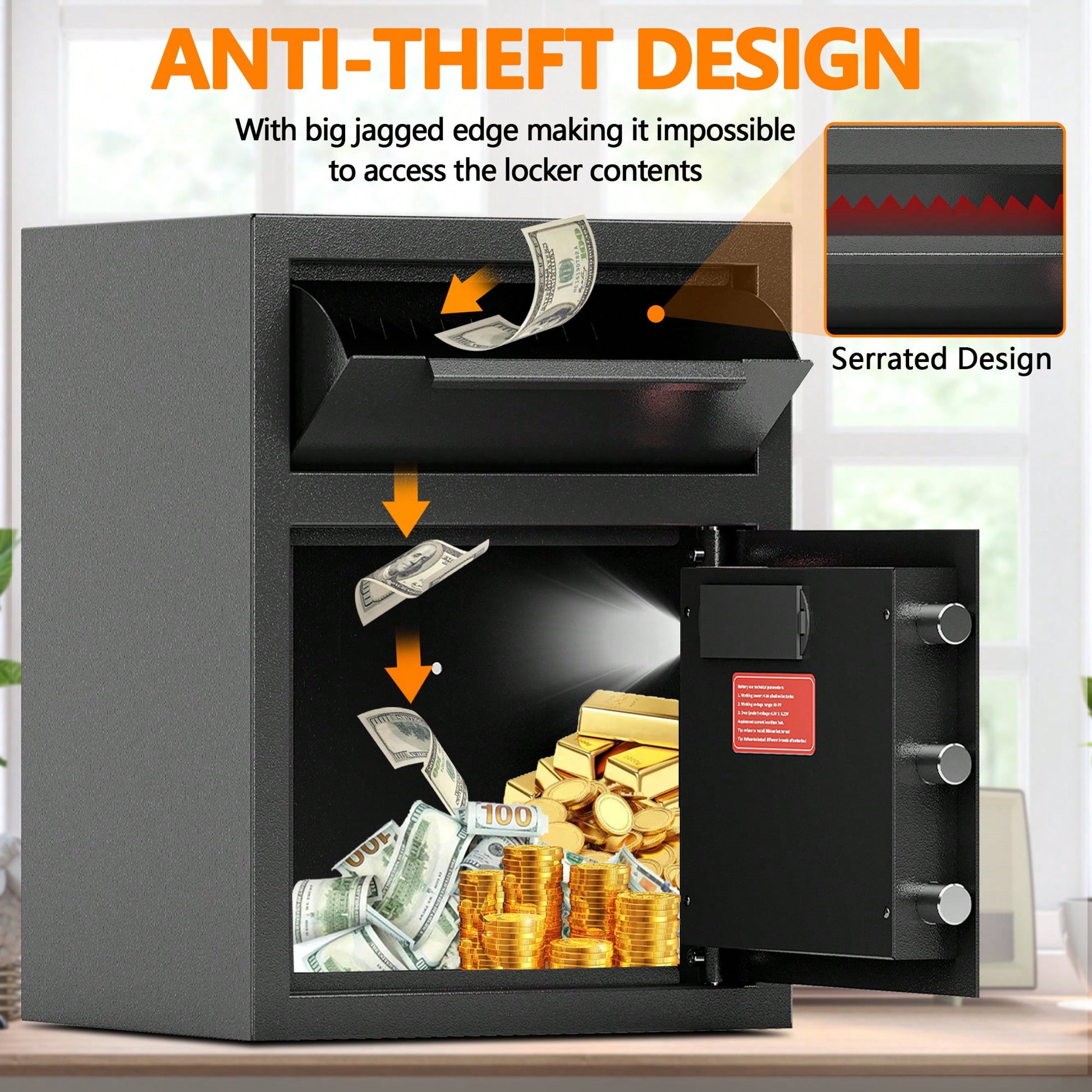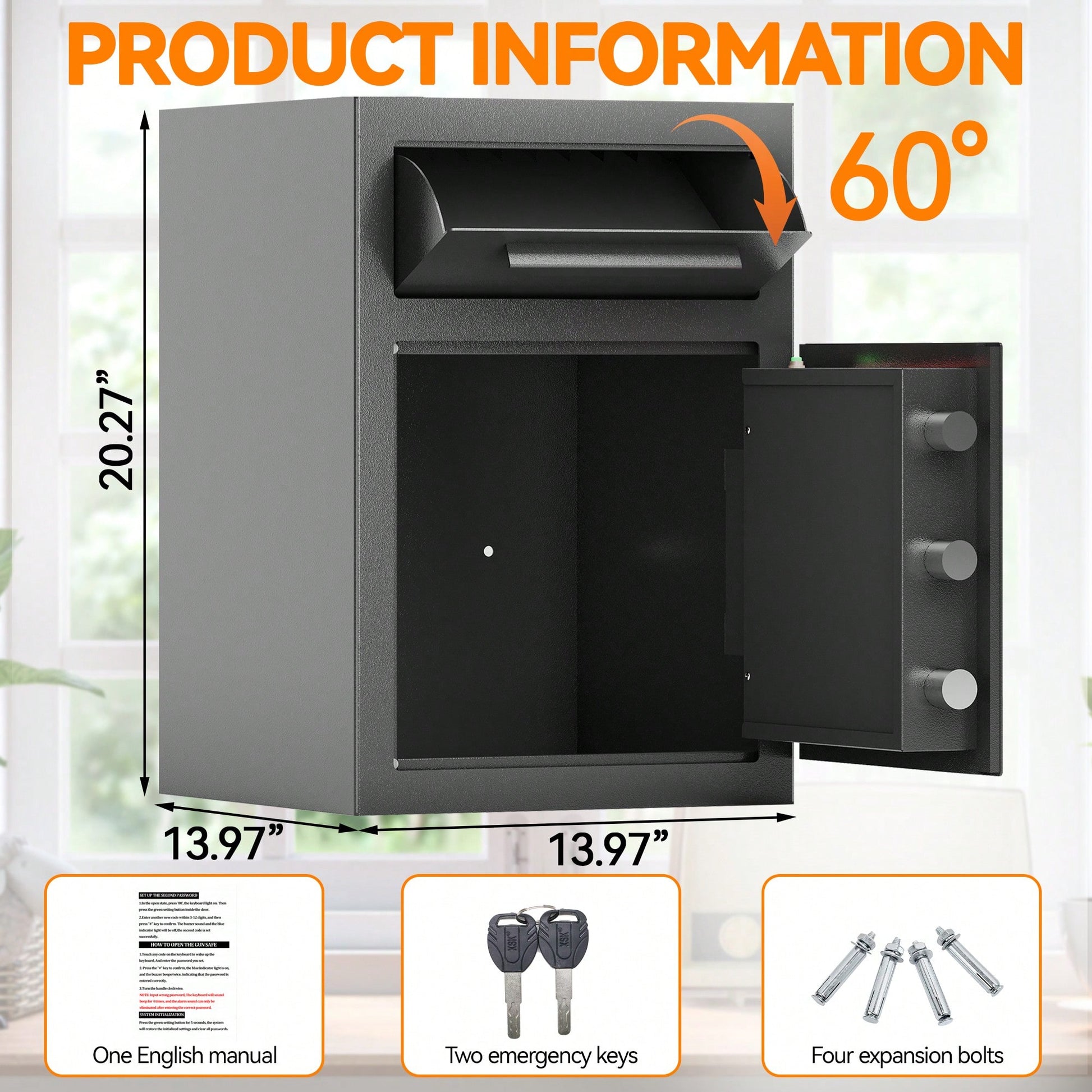 - Features: Deposit slot, saw-tooth edge tilting baffle, enhanced locking bolts