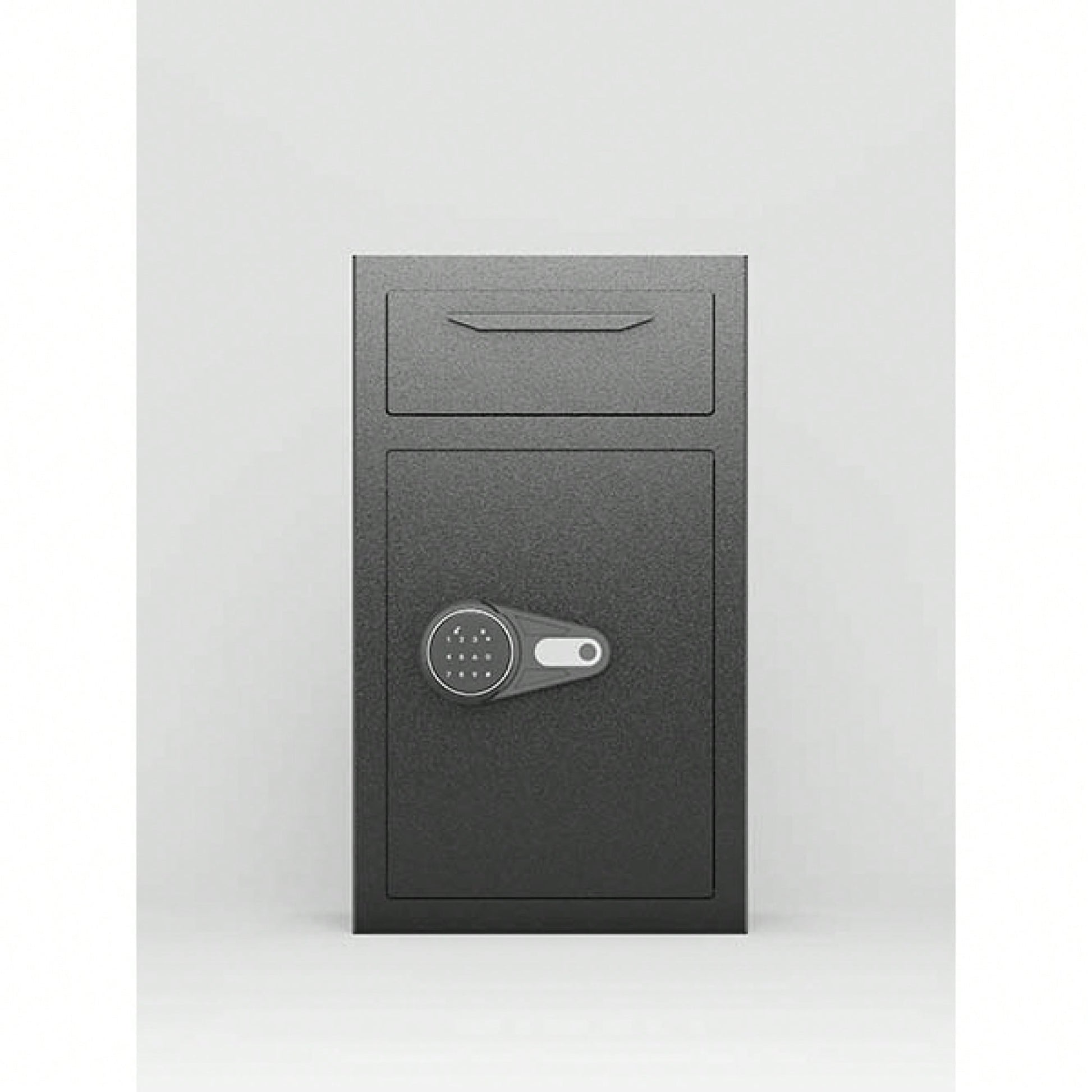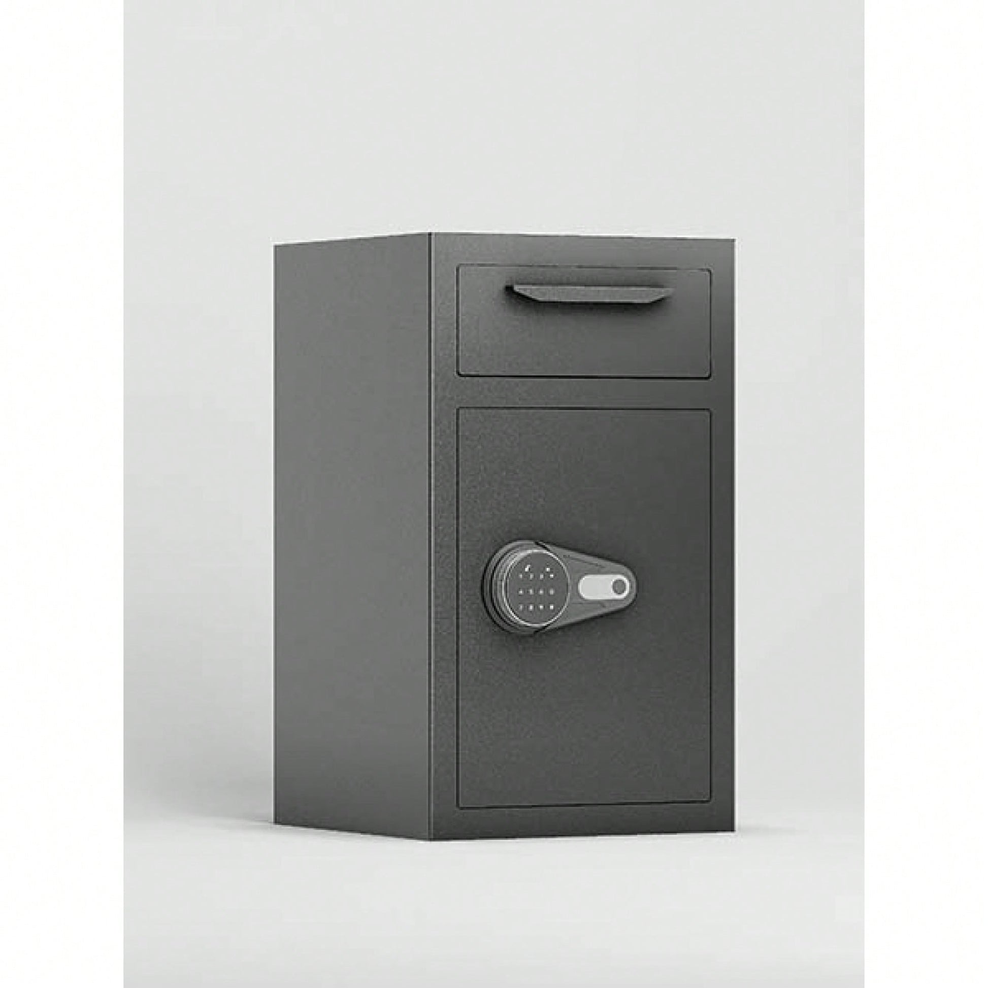 This deposit safe is designed to provide maximum security for cash and important documents. The electronic lock system allows for two user codes and comes with two backup keys, ensuring that authorized users have access while keeping out children and unauthorized individuals. Its innovative deposit slot makes it easy to securely drop in cash and paperwork without opening the safe, featuring a specially designed tilting baffle that prevents fishing.