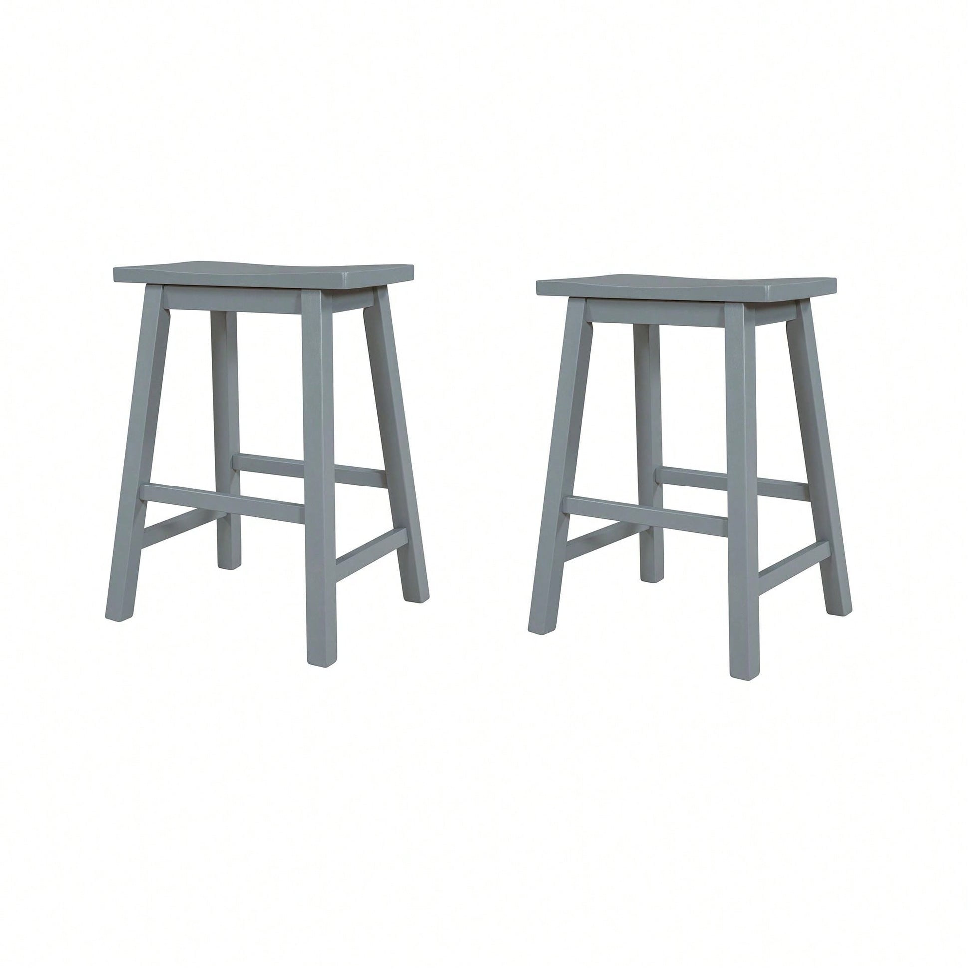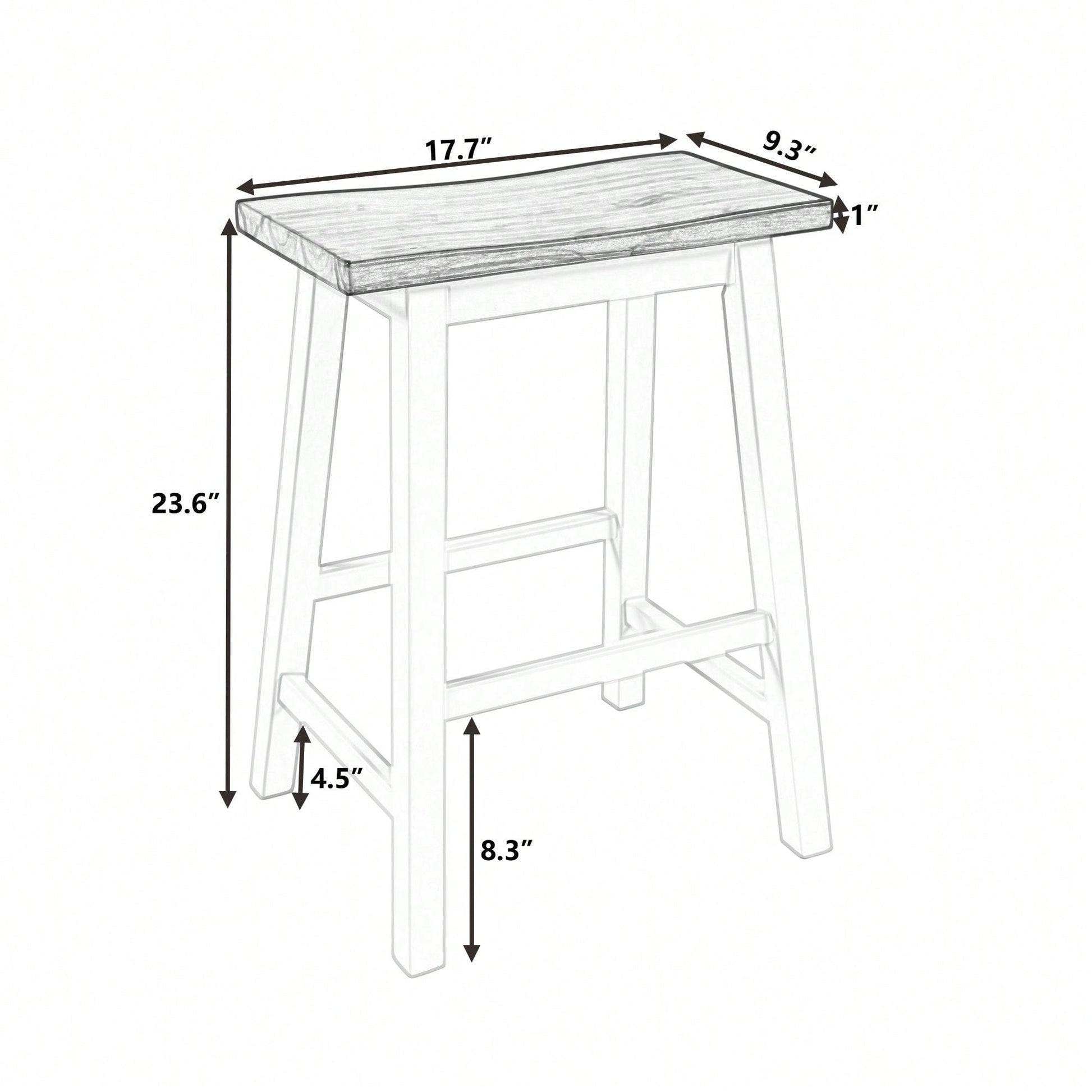 Set Of 2, Counter Height Wood Kitchen Dining Stools For Small Places