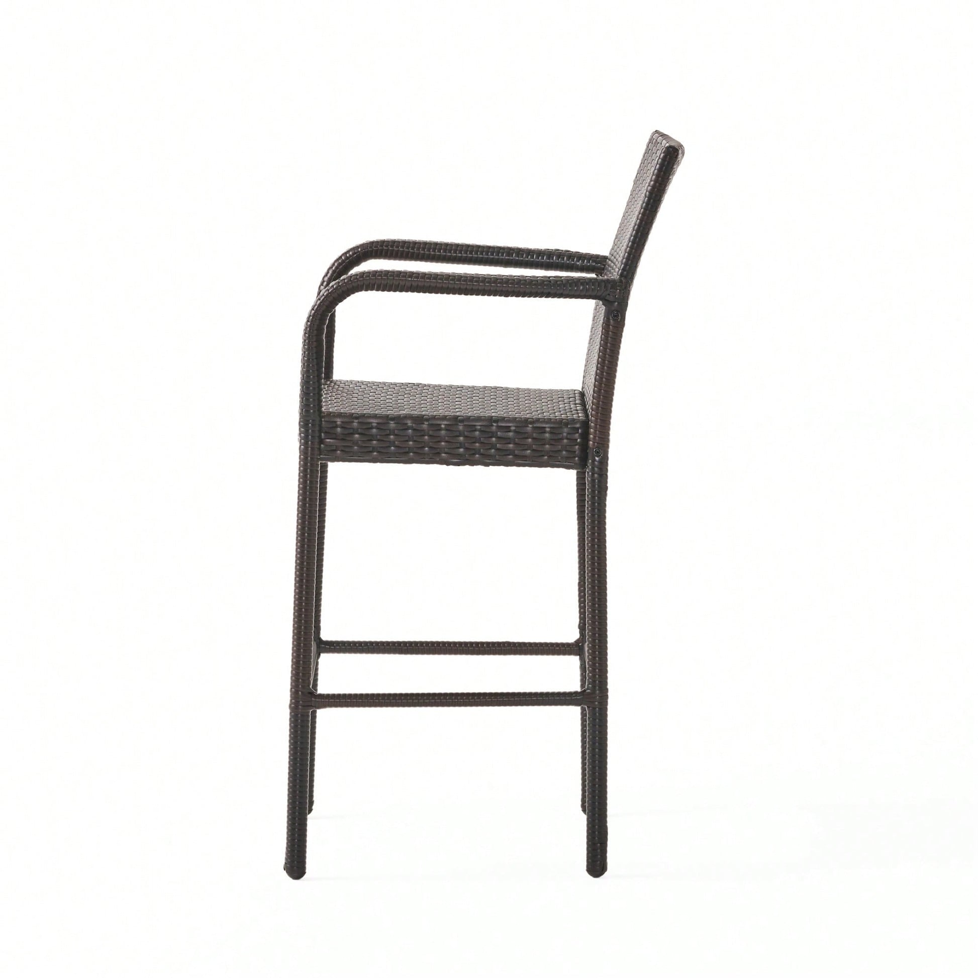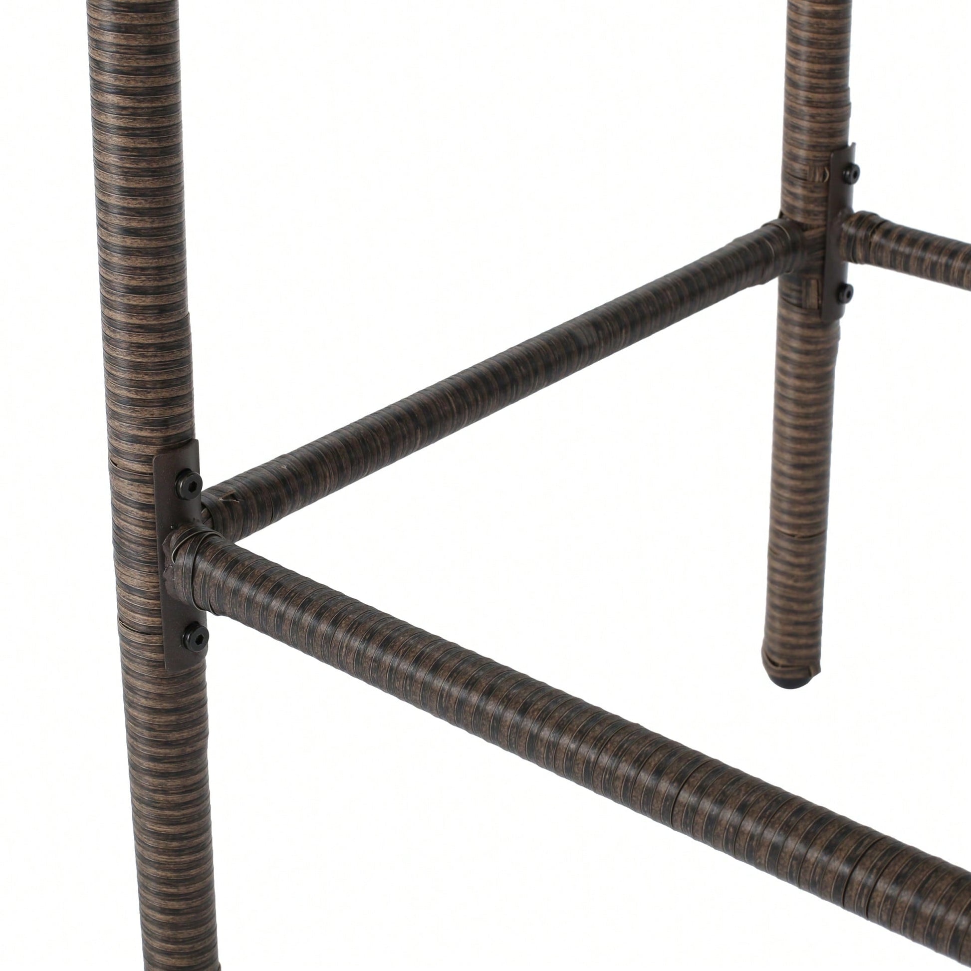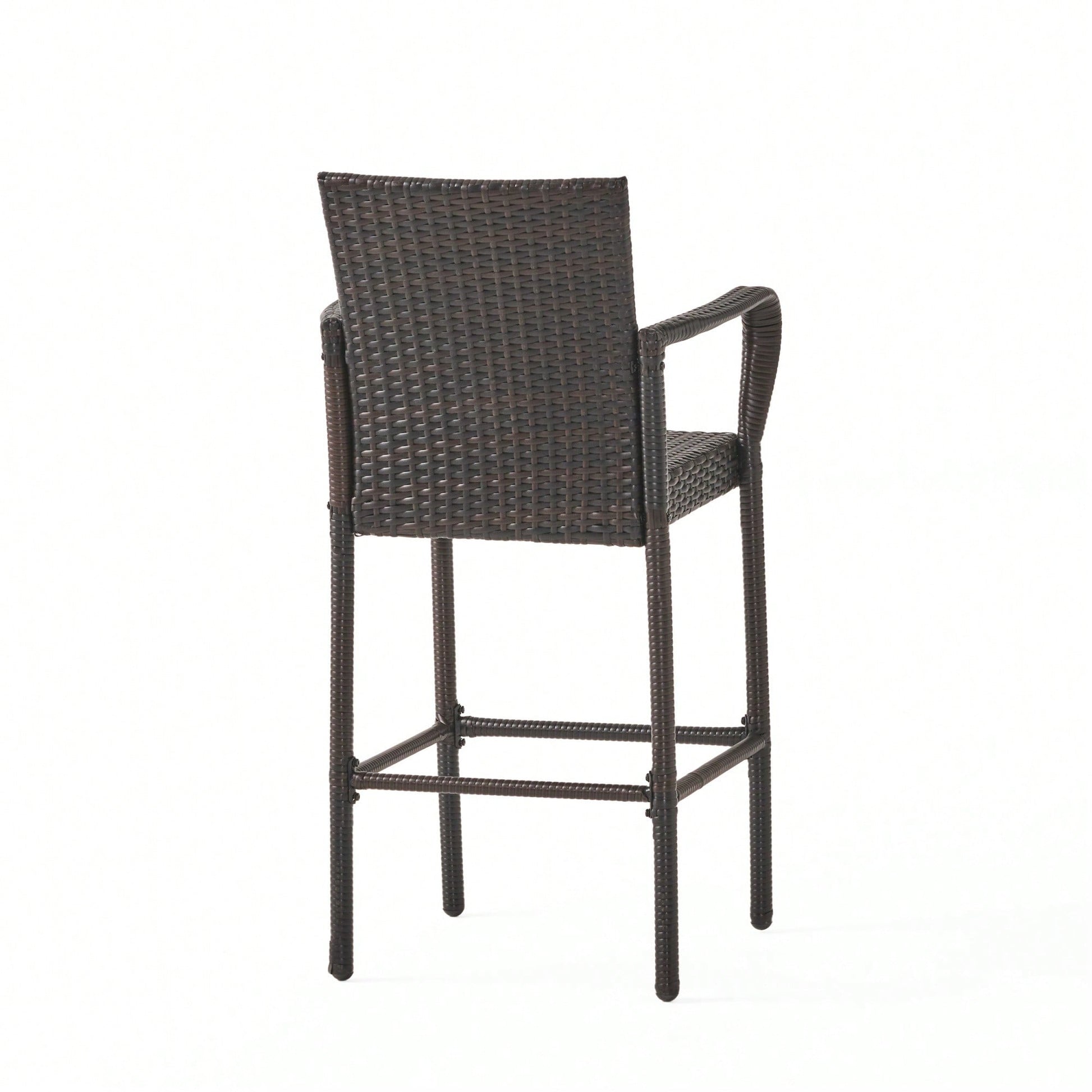 This bar stool is the perfect modern accessory for your outdoor area, featuring a chic, minimalistic look with a flared structure. The long-lasting woven finish of the polyethylene rattan ensures durability while allowing the stool to blend seamlessly with your outdoor decor. Constructed with a robust powder-coated metal frame, this piece is designed to withstand heavy use. While it is weather resistant, it is recommended to cover or store the stool during heavy or prolonged exposure to the elements.
