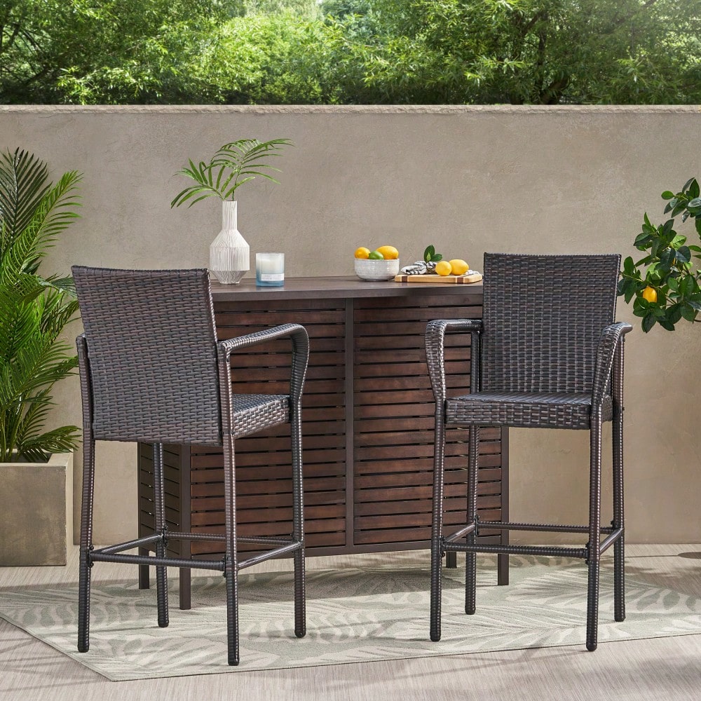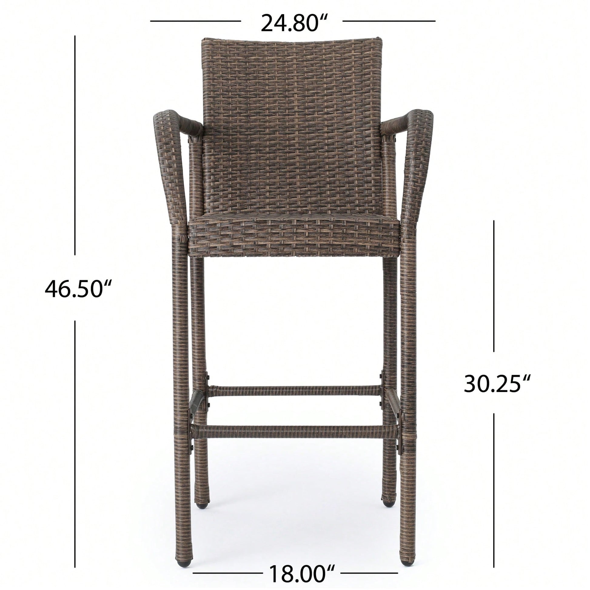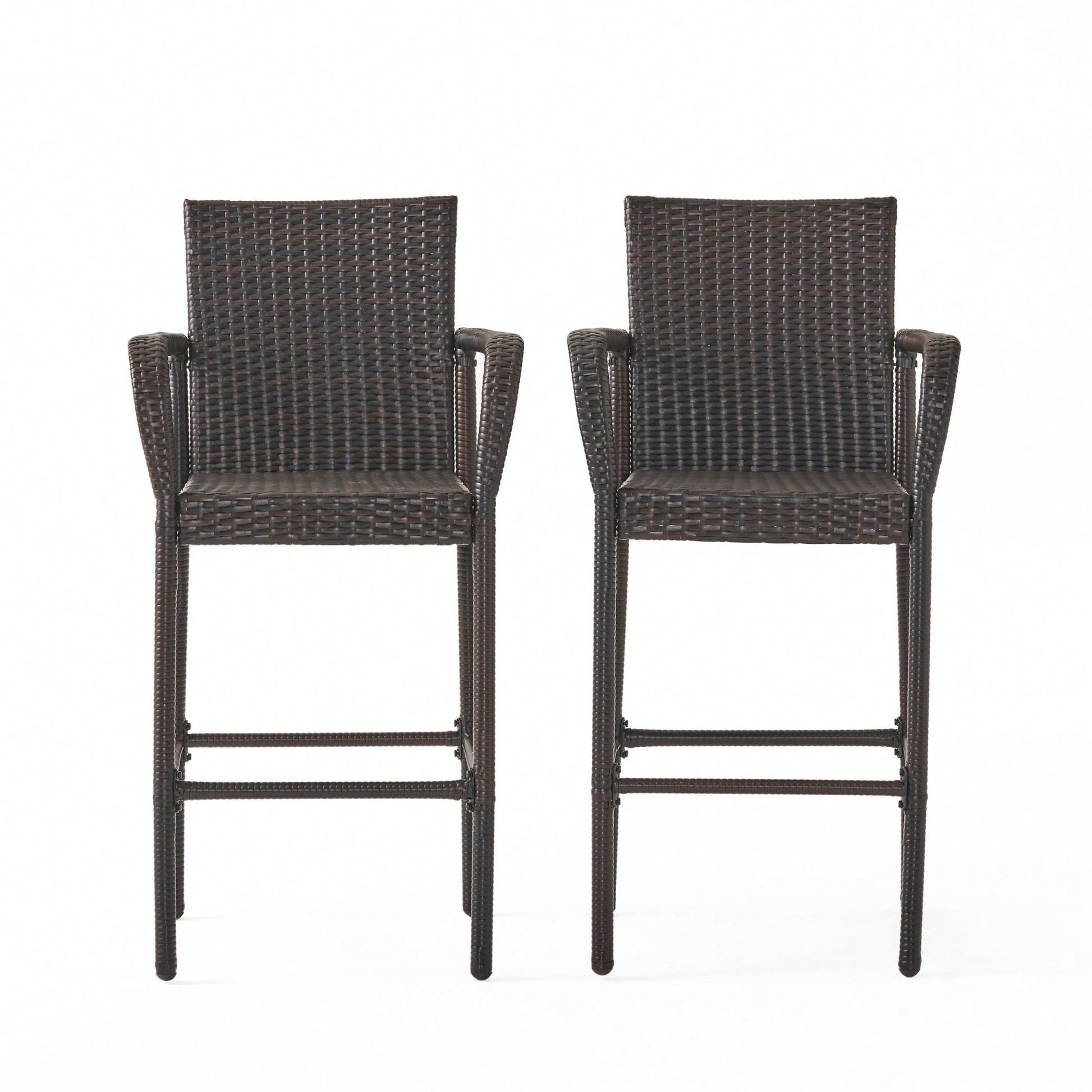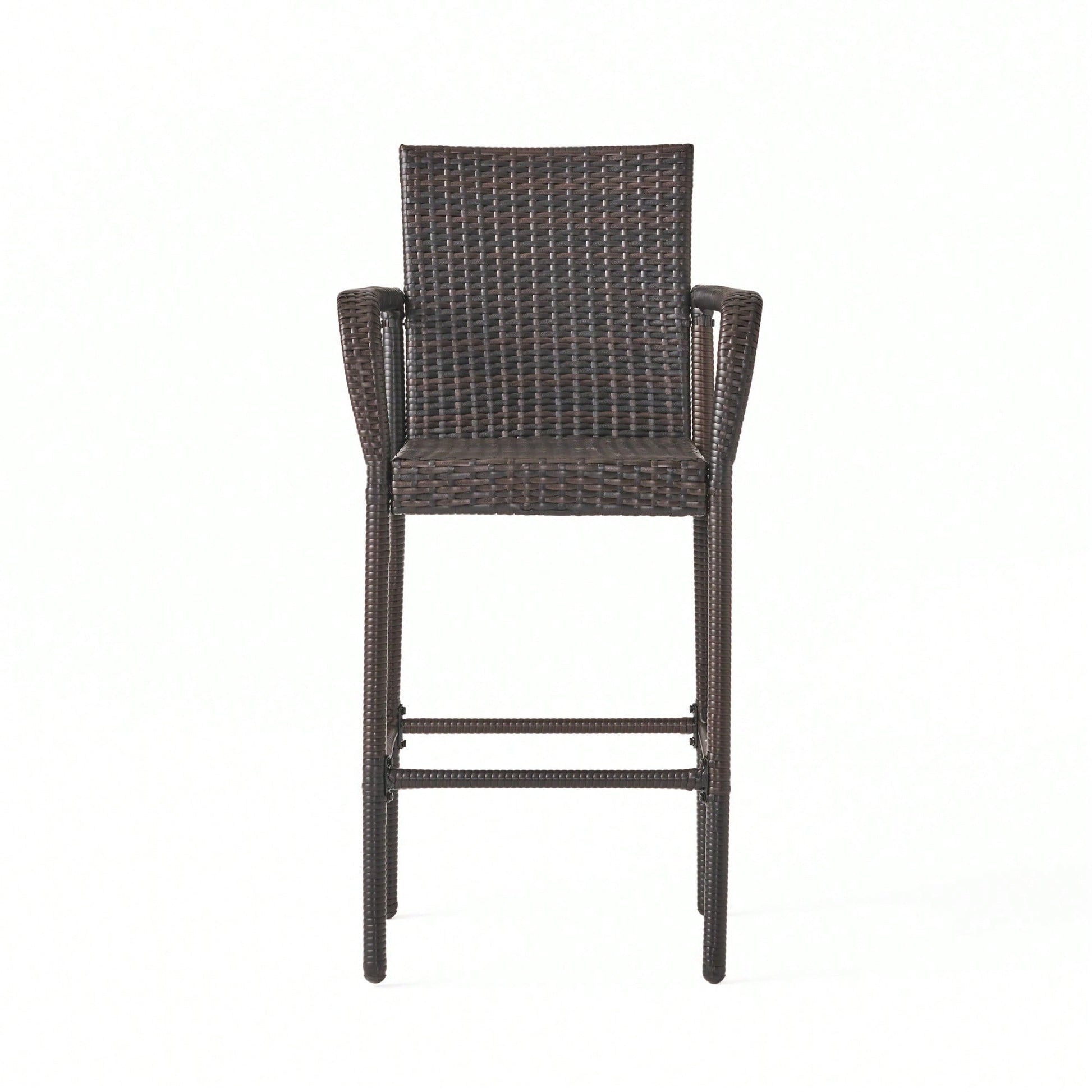 This bar stool is the perfect modern accessory for your outdoor area, featuring a chic, minimalistic look with a flared structure. The long-lasting woven finish of the polyethylene rattan ensures durability while allowing the stool to blend seamlessly with your outdoor decor. Constructed with a robust powder-coated metal frame, this piece is designed to withstand heavy use. While it is weather resistant, it is recommended to cover or store the stool during heavy or prolonged exposure to the elements.