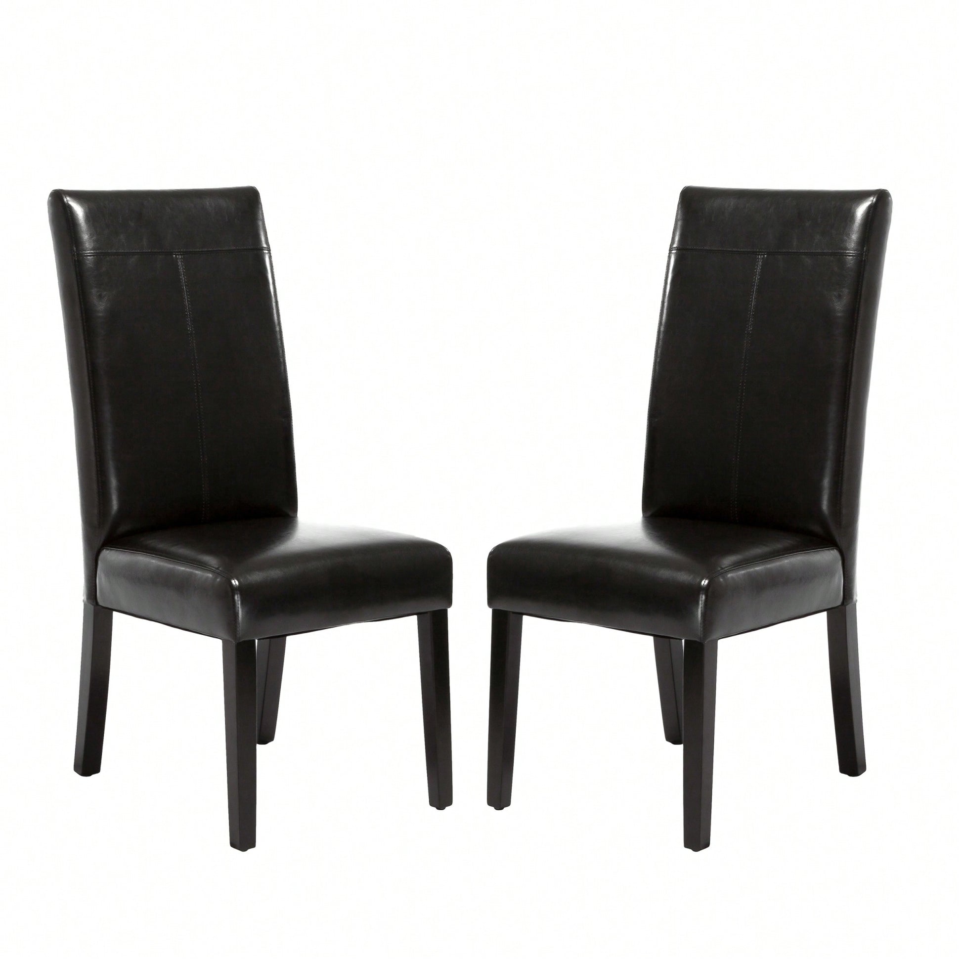 These stylish dining chairs are perfect for enhancing your dining experience and can also serve as versatile seating in any room. The chairs feature a smooth polyurethane leather upholstery that is both durable and easy to clean, complemented by a well-padded seat for added comfort. The elegant espresso stained legs provide a sophisticated touch, making them a beautiful addition to any decor.
