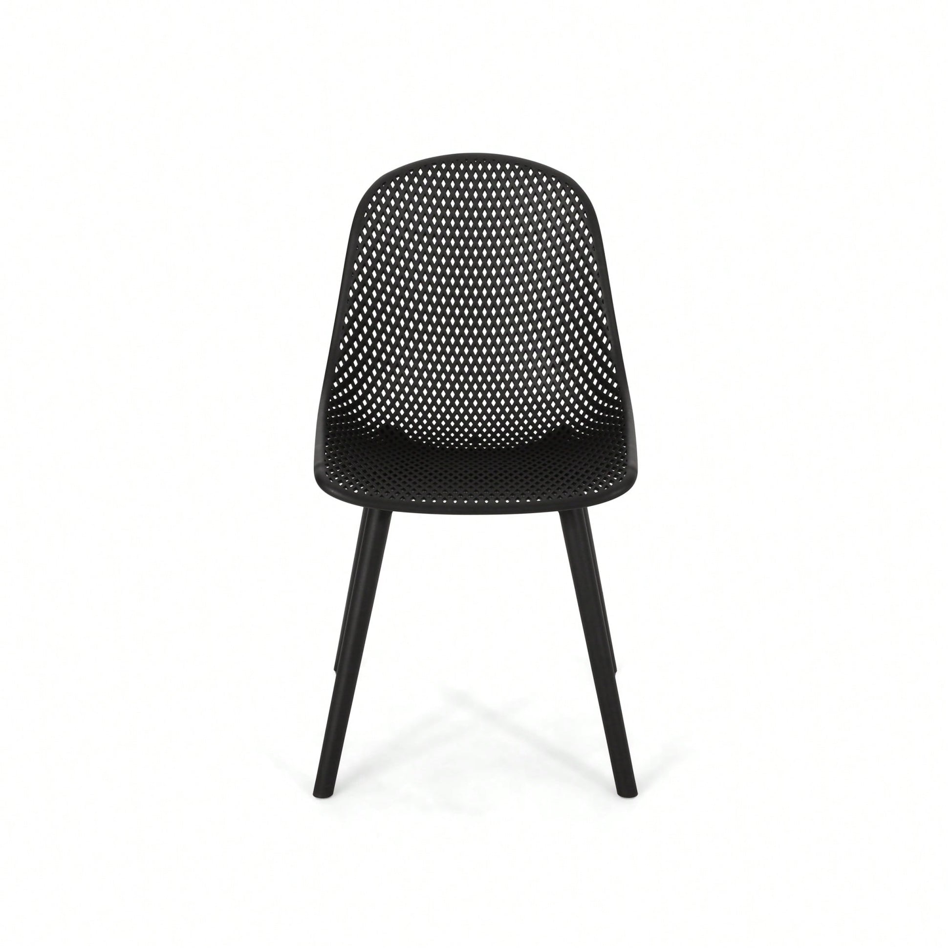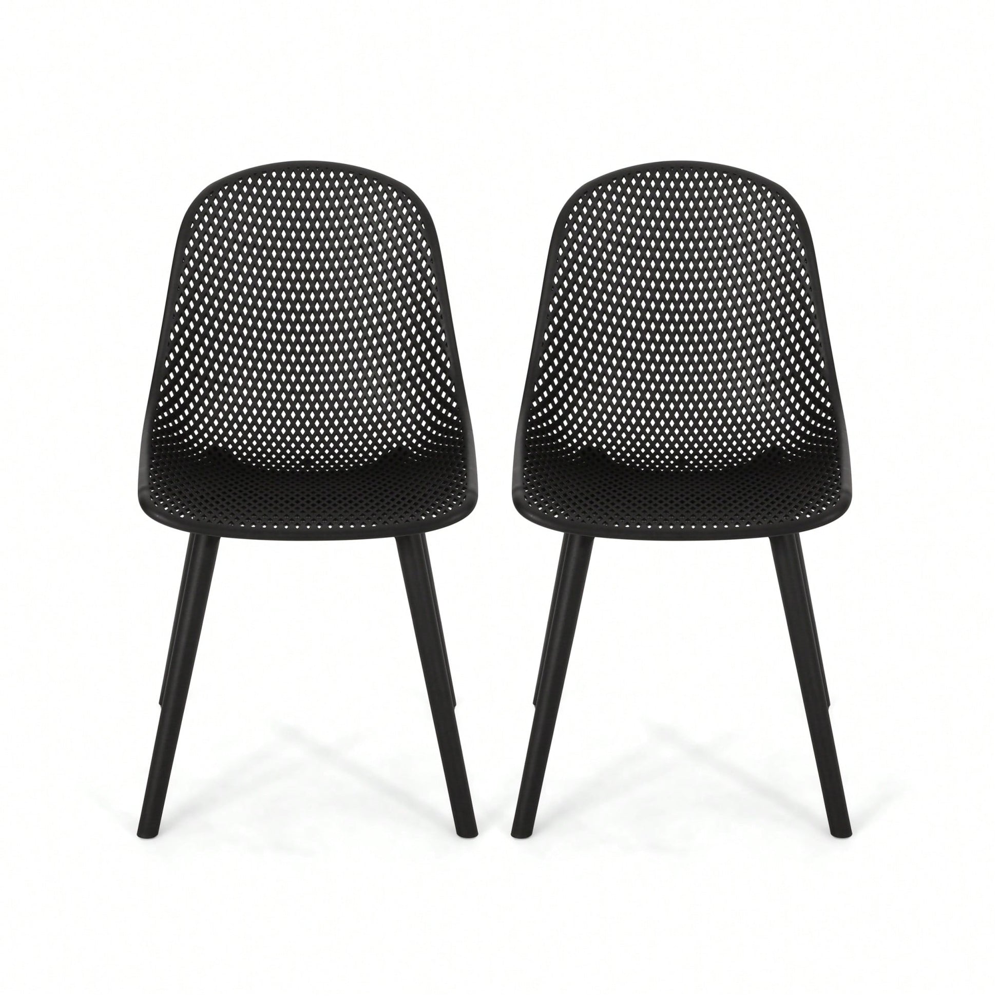 Elevate your outdoor area with a dining chair set that combines style and functionality. Designed with a minimalistic approach, these chairs feature clean lines and a distinctive perforated diamond mesh pattern, offering a perfect blend of sturdy structure and comfortable seating. The weather-resistant properties ensure that this chair set can withstand the elements, providing you with years of reliable use. Its modern aesthetic is sure to enhance any outdoor setting, making it an ideal choice for those looking to create an elegant atmosphere in their backyard.