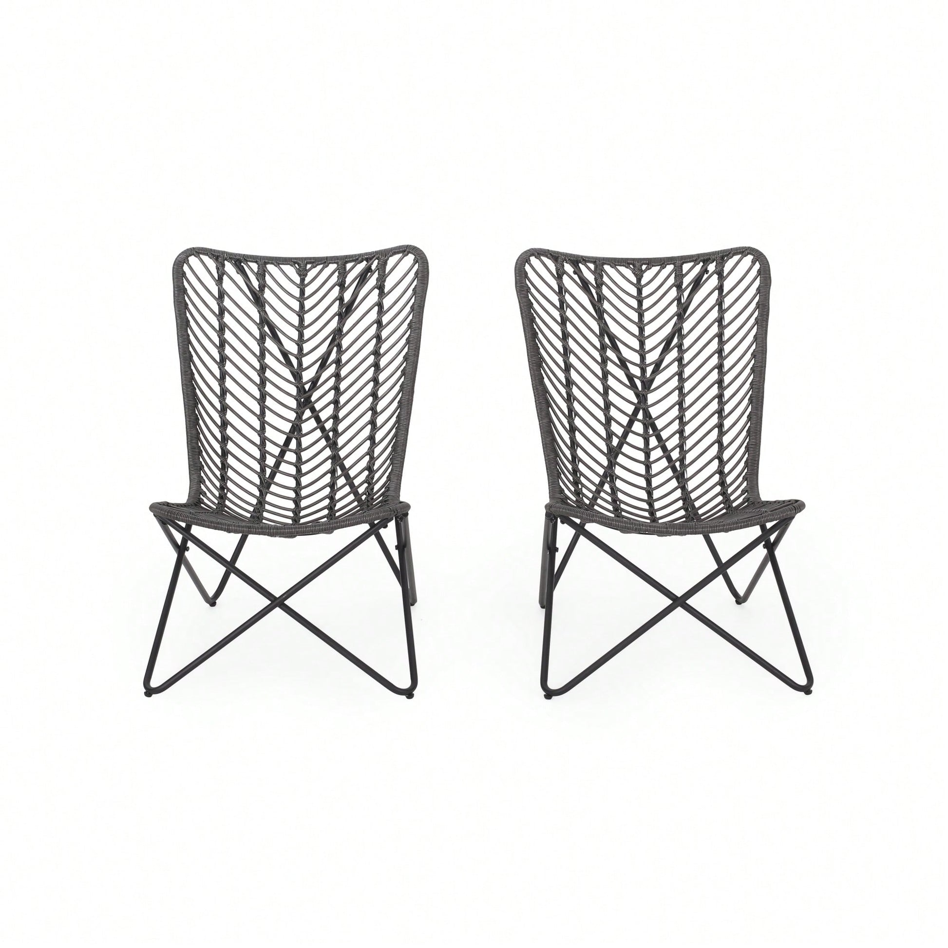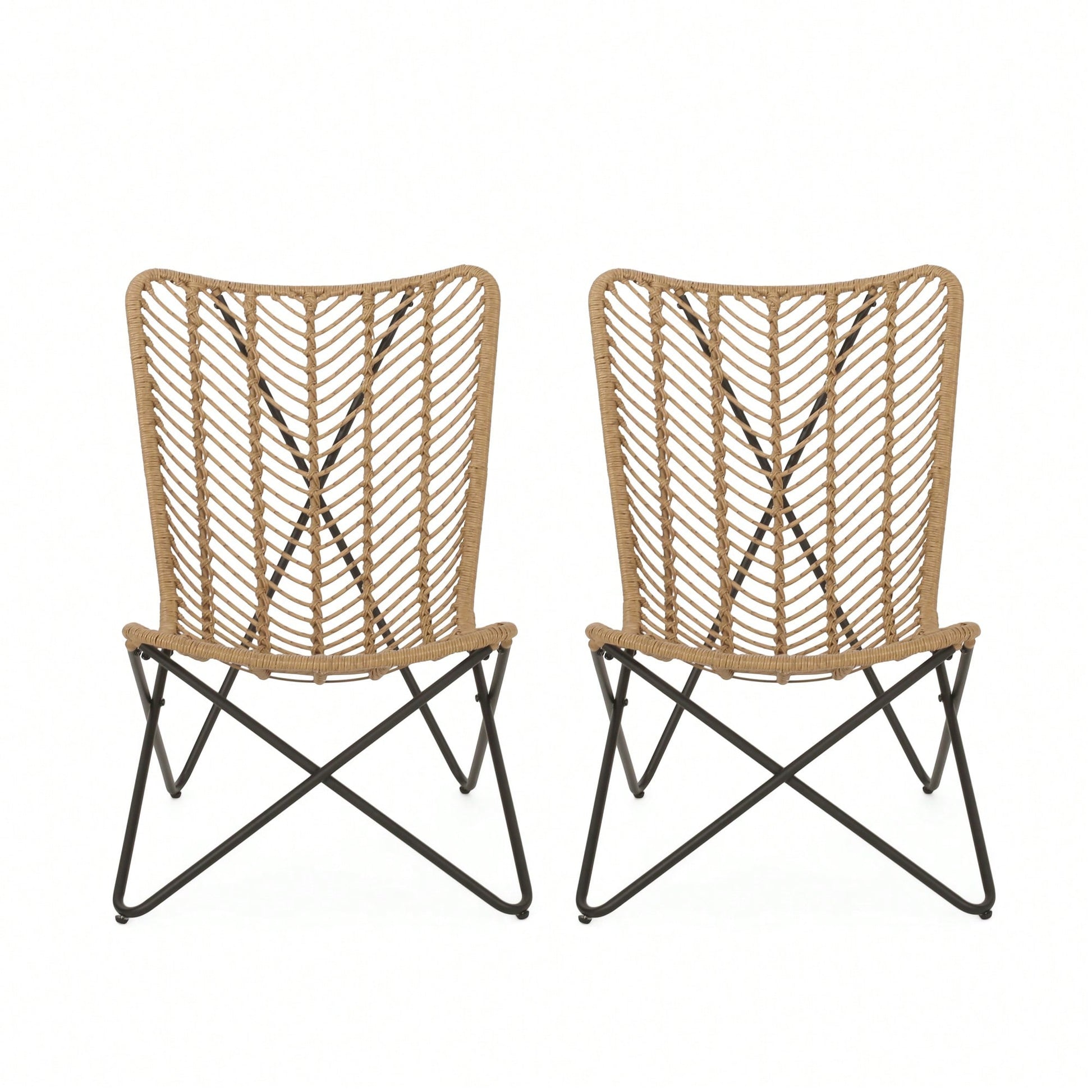 This patio chair set combines timeless style with ultimate comfort, making it a perfect addition to your outdoor space. The earthy wicker finish enhances its boho look, while the gently curved seating invites relaxation. Supported by a unique geometric cross base, these chairs are both durable and modern, ensuring they stand out in any setting.