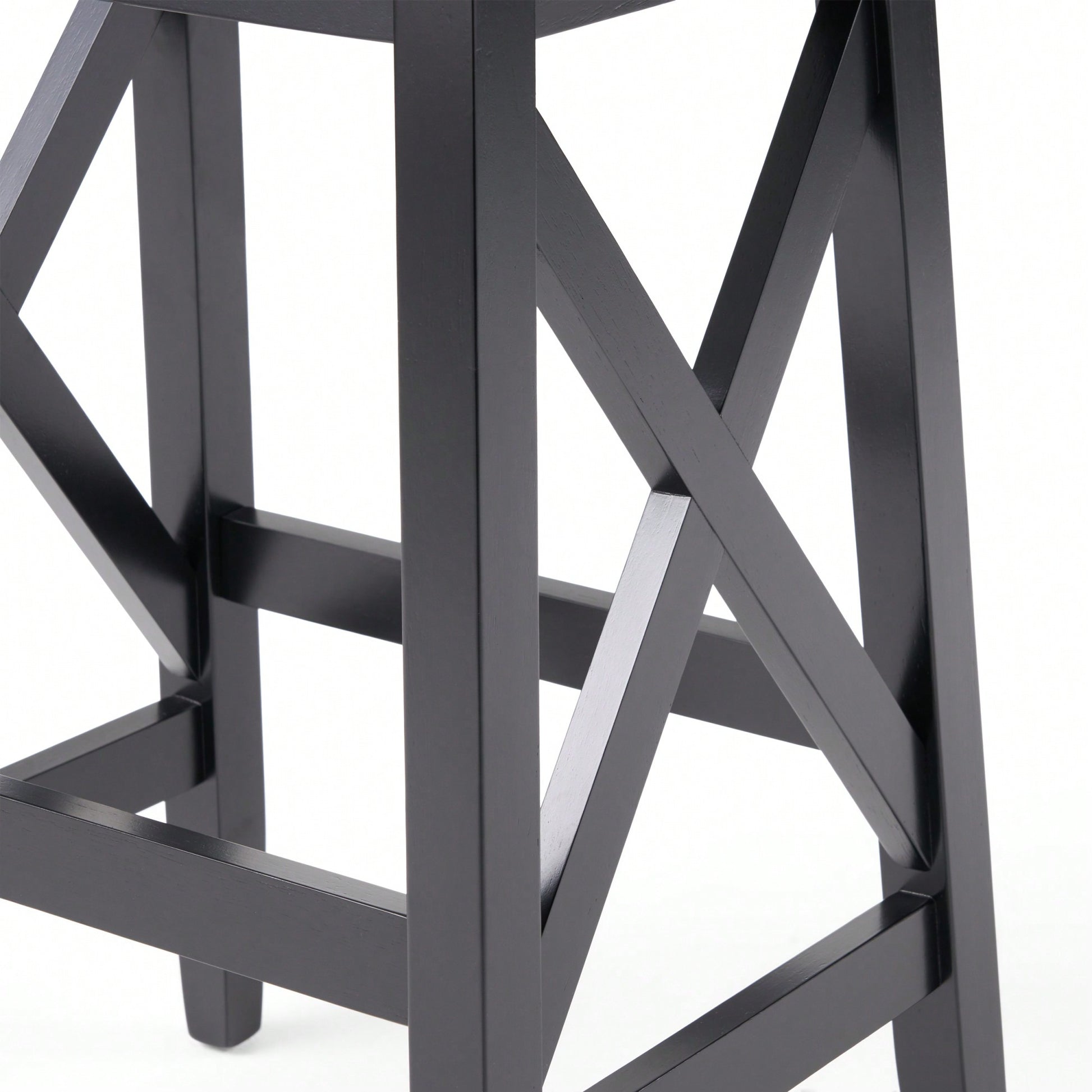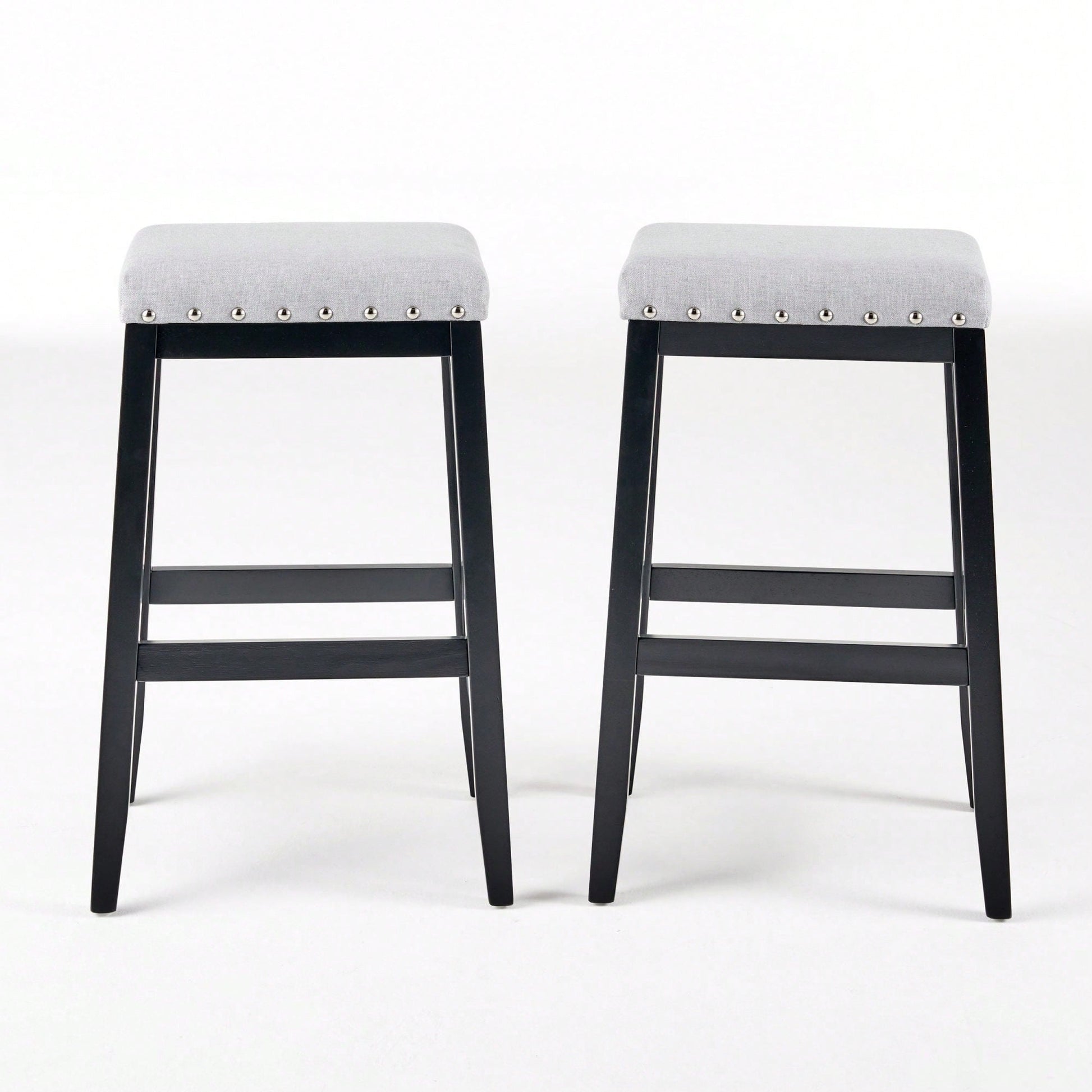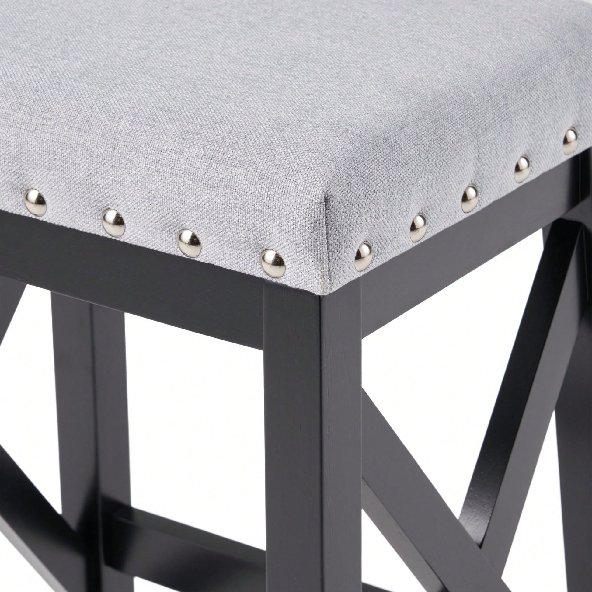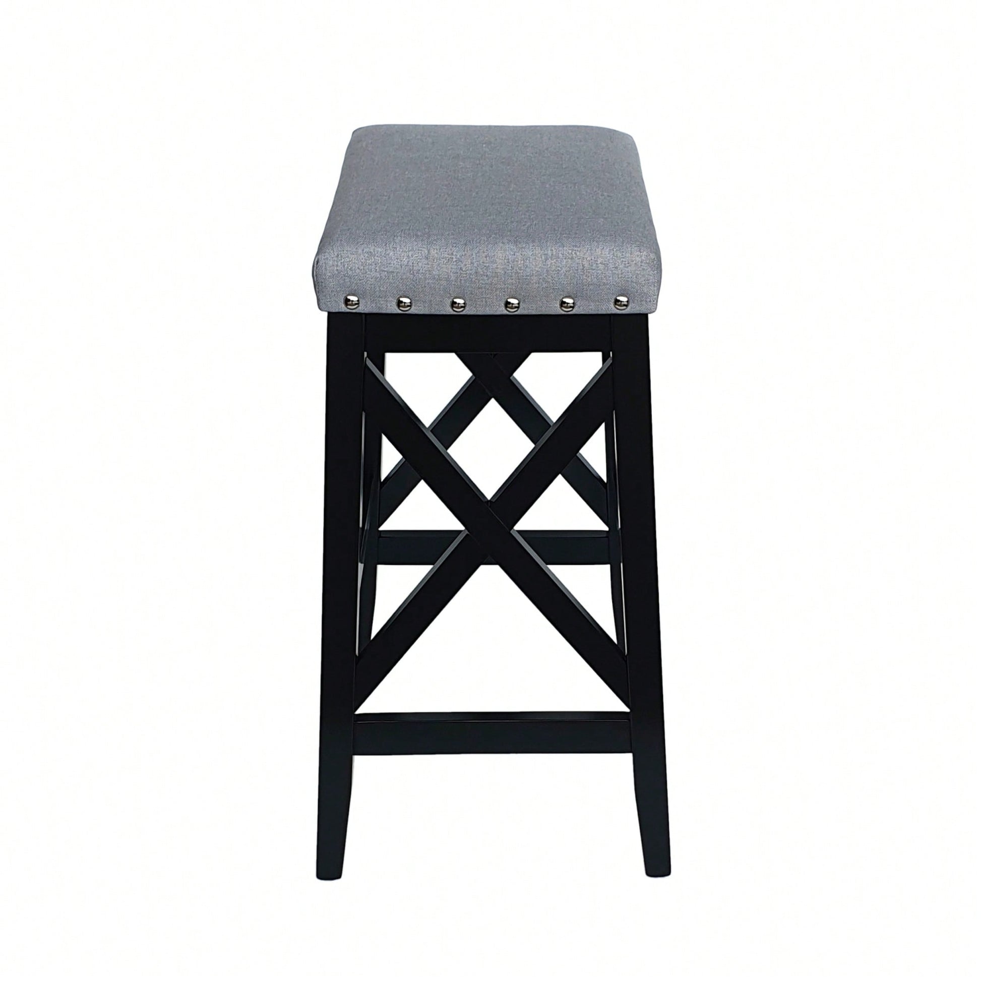 Enhance your living space with this stylish set of barstools. The fabric upholstery adds sophistication to your counter area, while the sturdy rubber wood construction ensures long-lasting use. The unique X-frame design contributes to a chic aesthetic, and the nailhead accents provide a contemporary flair. Perfect for any home decor, these barstools combine comfort and elegance seamlessly.
