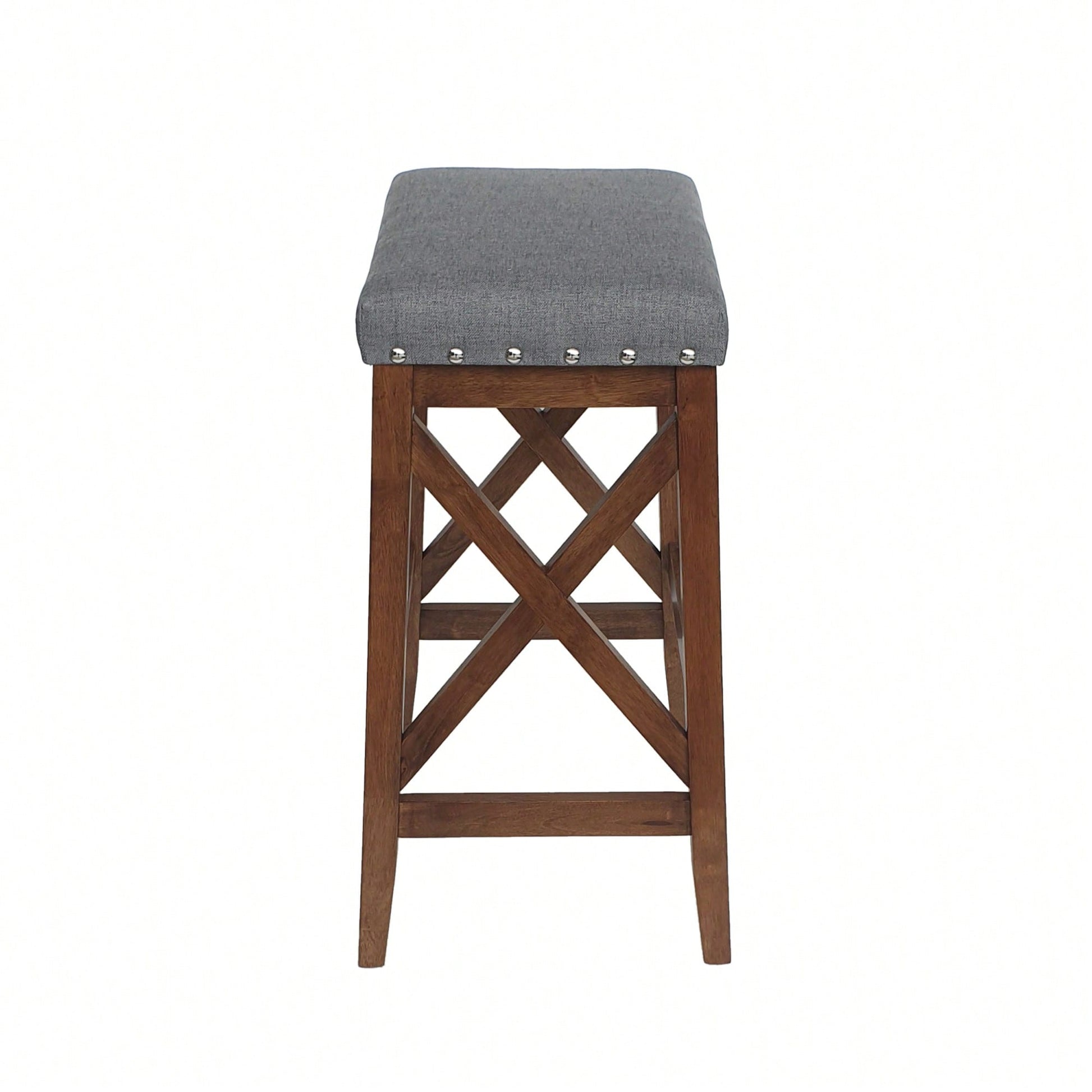 Enhance your home with this stylish set of barstools. The fabric upholstery brings an elegant touch to your counter, while the sturdy wood construction ensures durability. The X-frame design of the base contributes to a sophisticated aesthetic, complemented by modern nailhead accents. Perfect for any living space, these barstools combine comfort and style seamlessly.