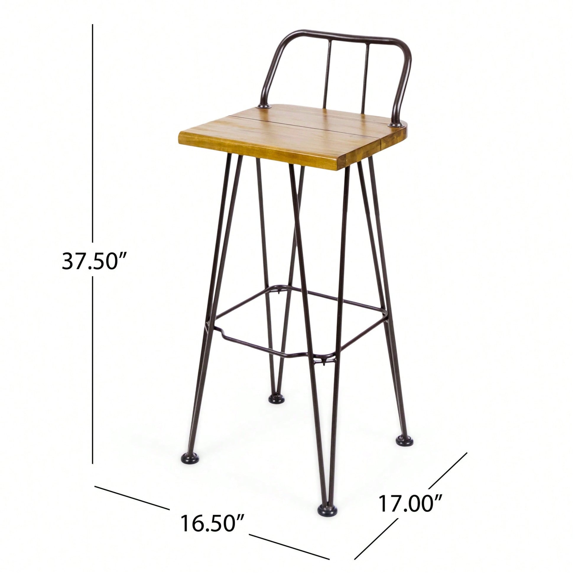 Set Of 2, Industrial Style Wood And Metal Barstool For Modern Spaces