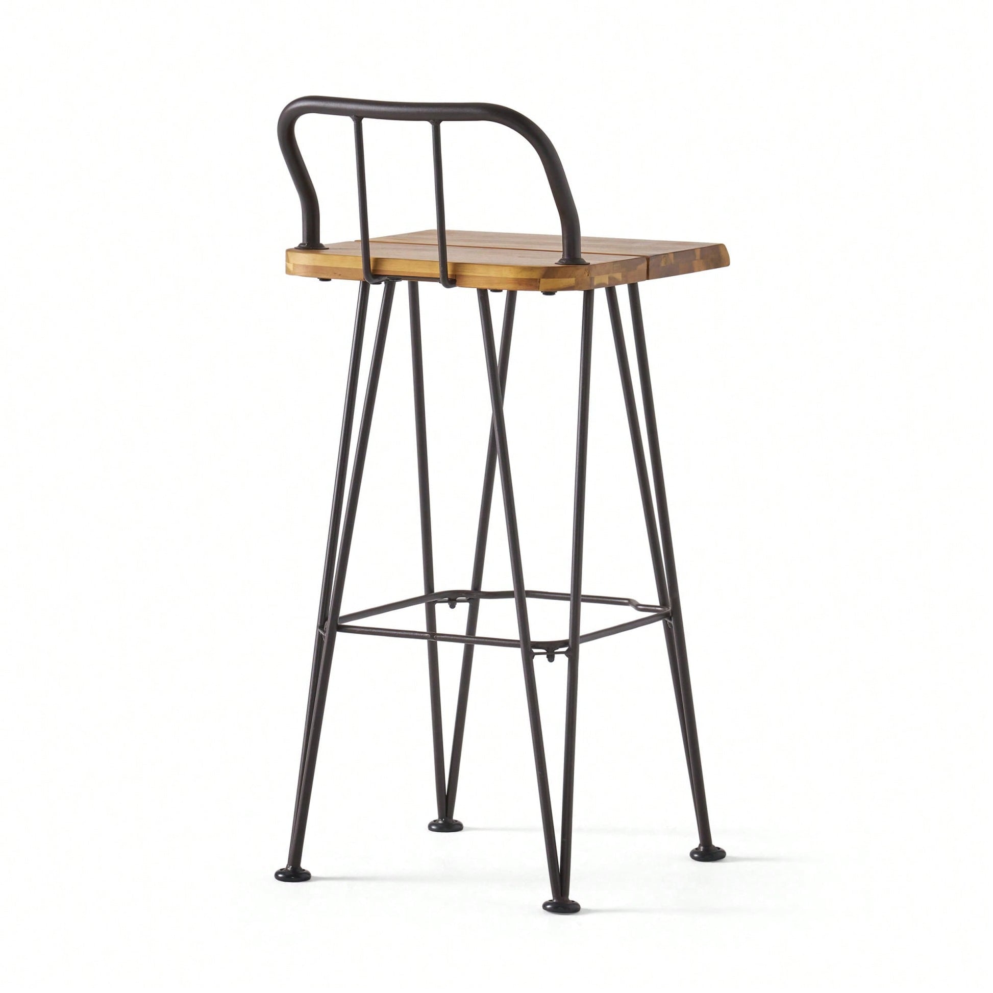 These industrial barstools are the perfect addition to enhance your outdoor space. Designed to withstand the elements, they are made from durable acacia wood paired with sturdy iron. With their stylish angled legs and integrated footrest, these barstools offer both comfort and functionality. Whether you're enjoying a casual meal or relaxing with friends, these barstools will elevate your leisure time in any garden or patio setting.