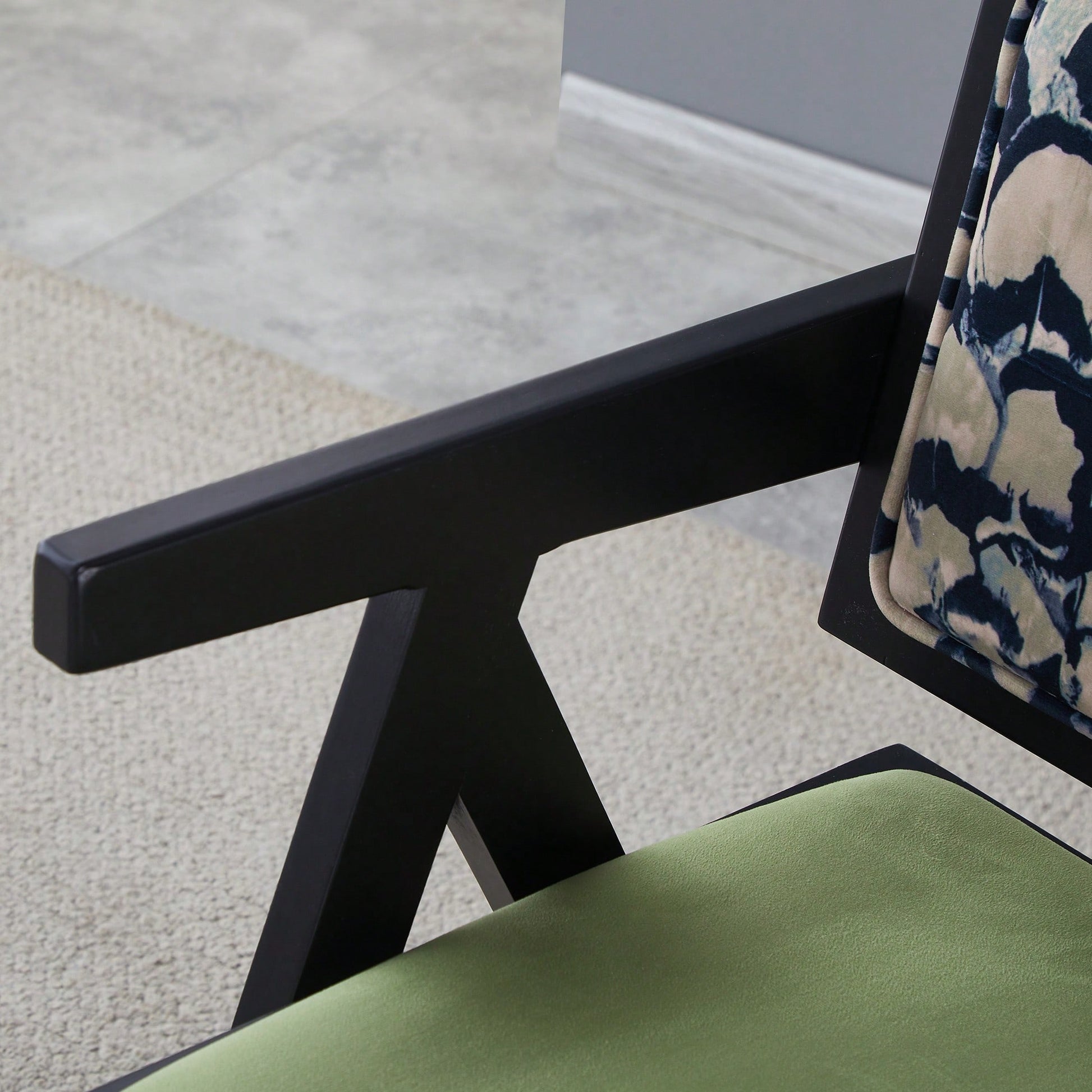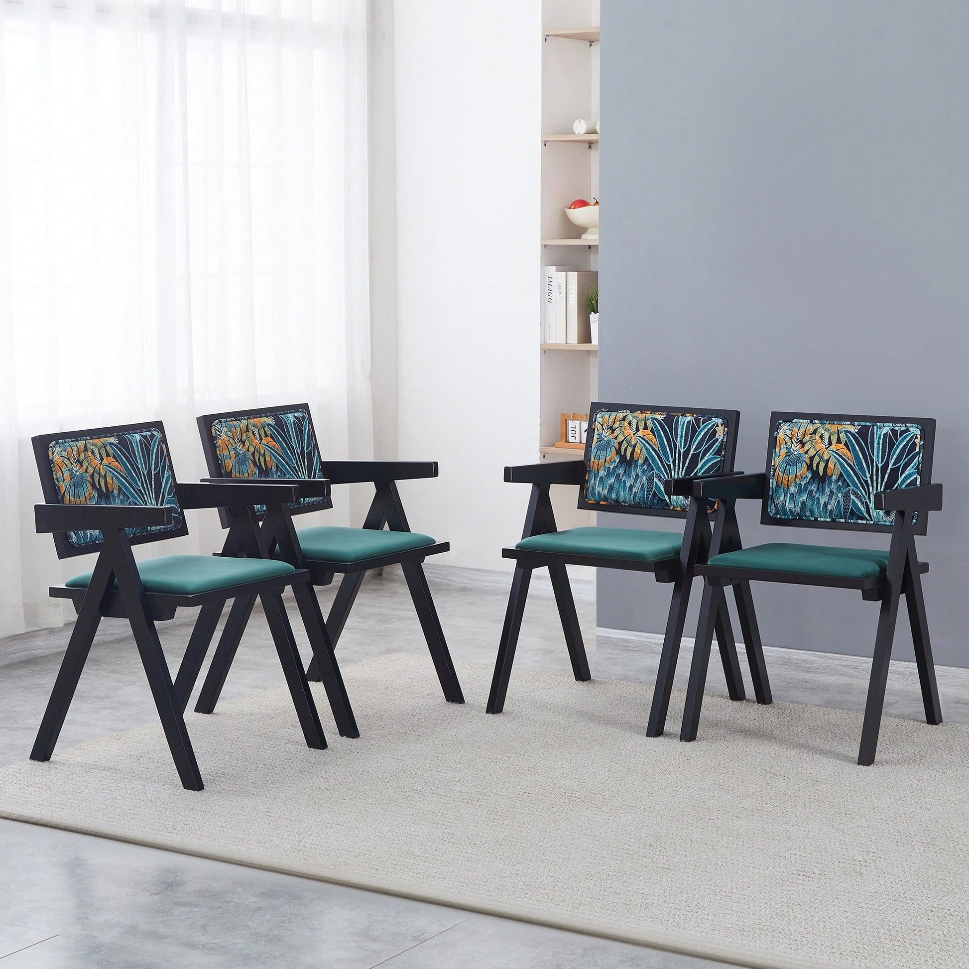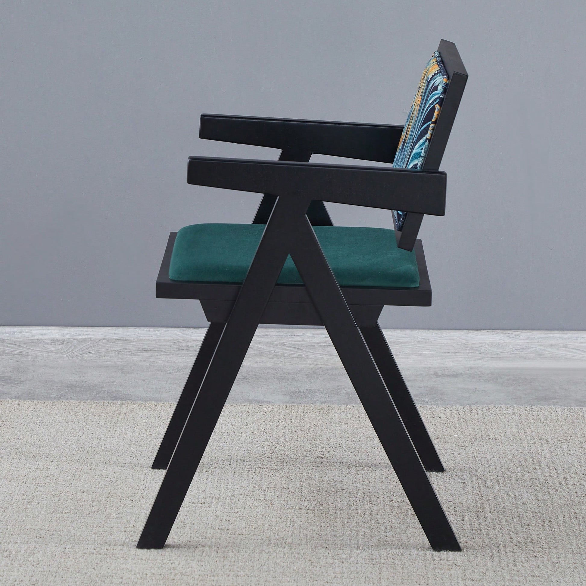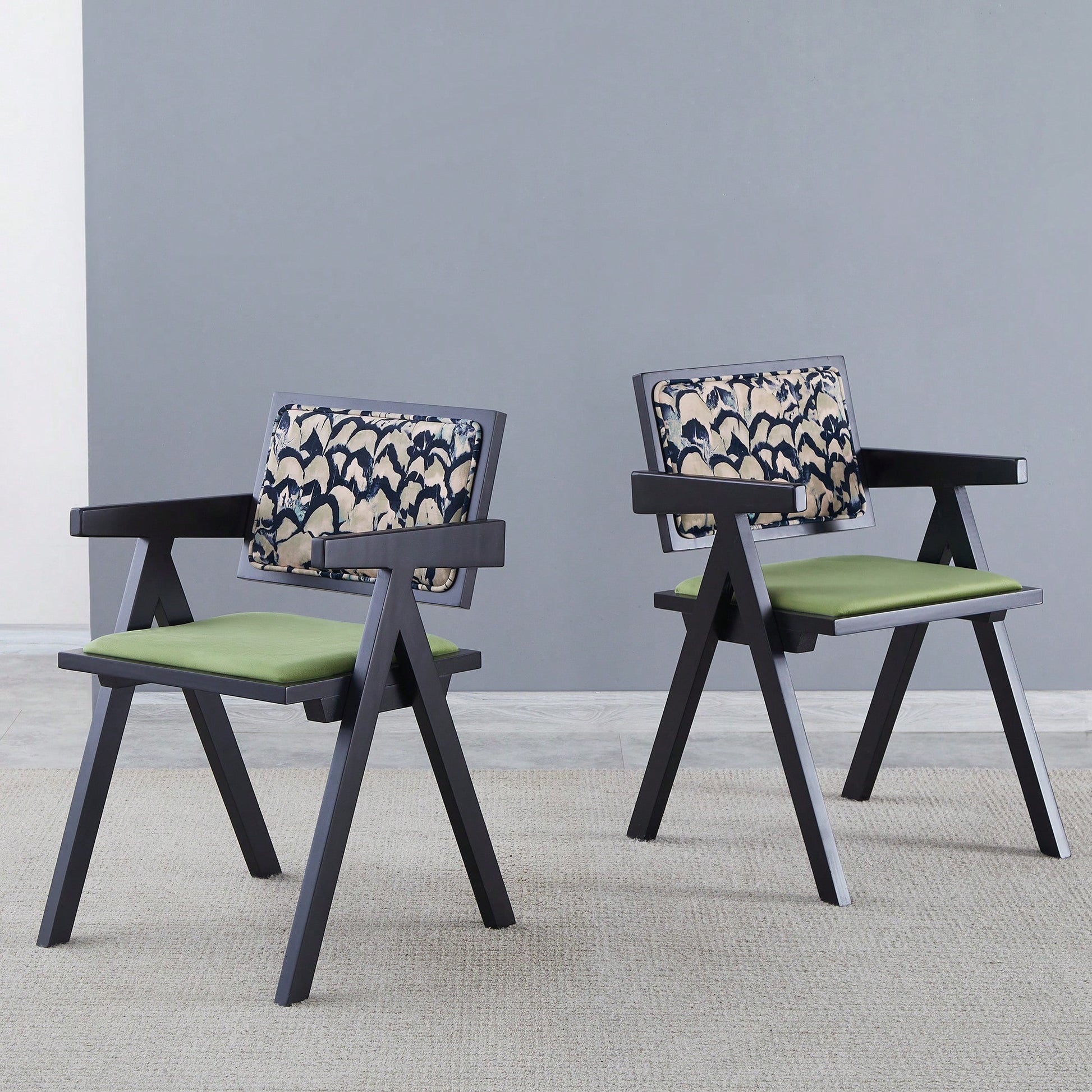 Set Of 2 Medieval Style Black Rubber Wood Dining Chairs With Armrests - Simple Natural Living Room Seating