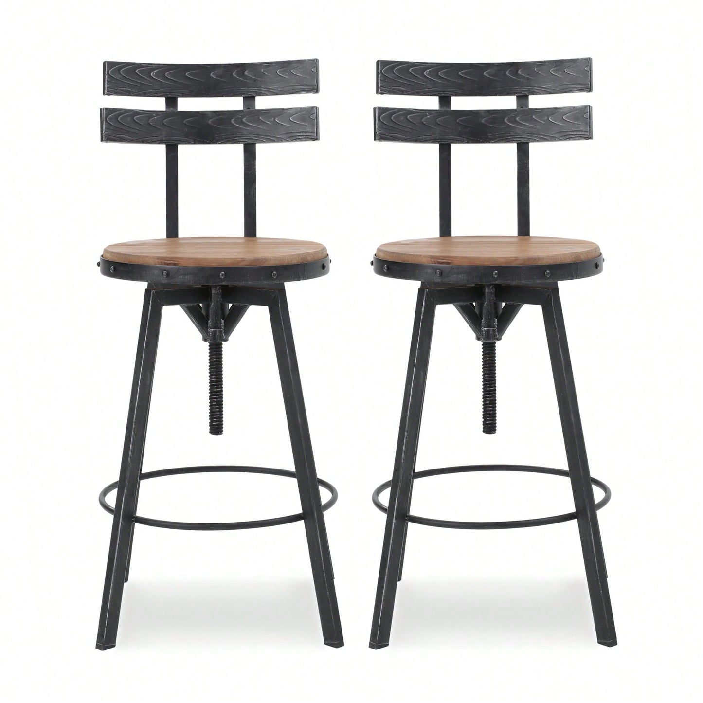 Enhance your interior space with this stylish set of barstools. Featuring a sleek metal frame paired with refined firwood seating, these barstools offer a perfect blend of modern and industrial aesthetics. The durable firwood is designed to resist warping, while the robust iron frame ensures longevity under heavy use. The adjustable swivel function adds to the comfort, allowing easy entry and exit from the seat. Ideal for kitchens or dining areas, this set is perfect for entertaining guests.