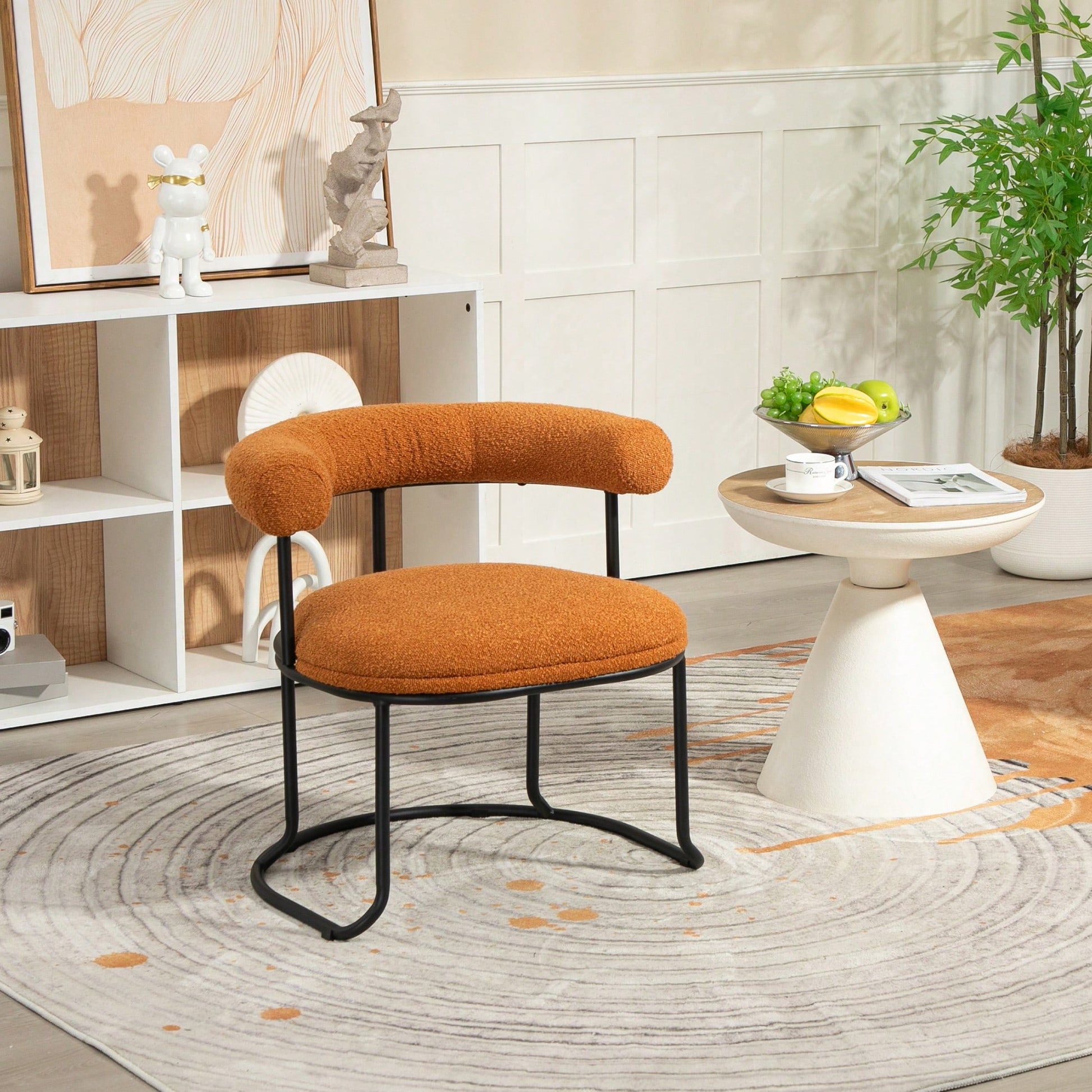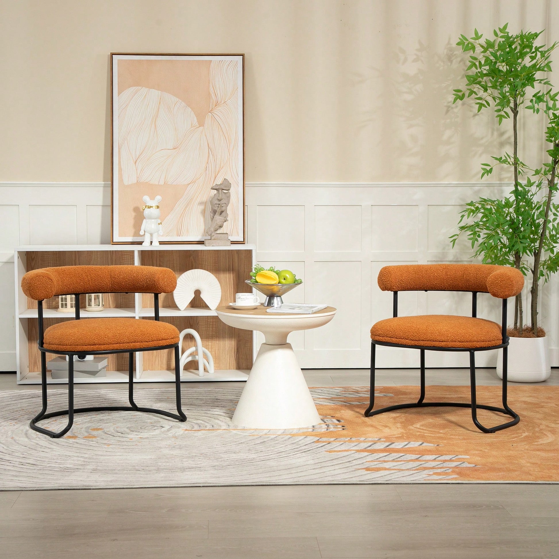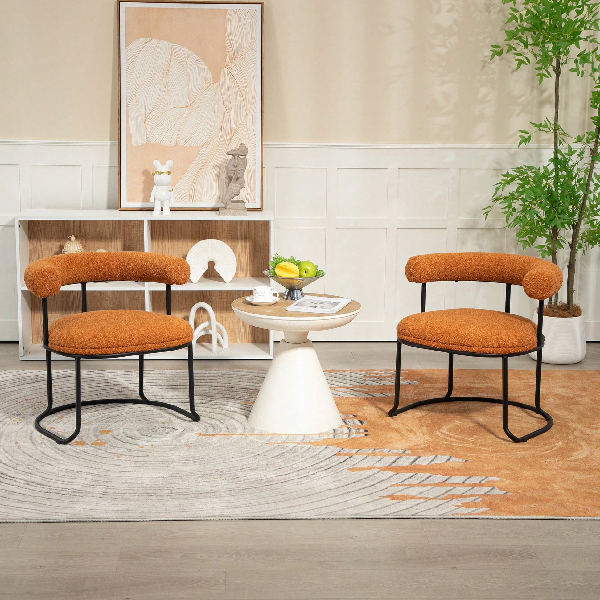 Set Of 2 Mid-Century Modern Curved Back Dining Chairs With Orange Boucle Upholstery, Stylish Round Backrest Kitchen Seating