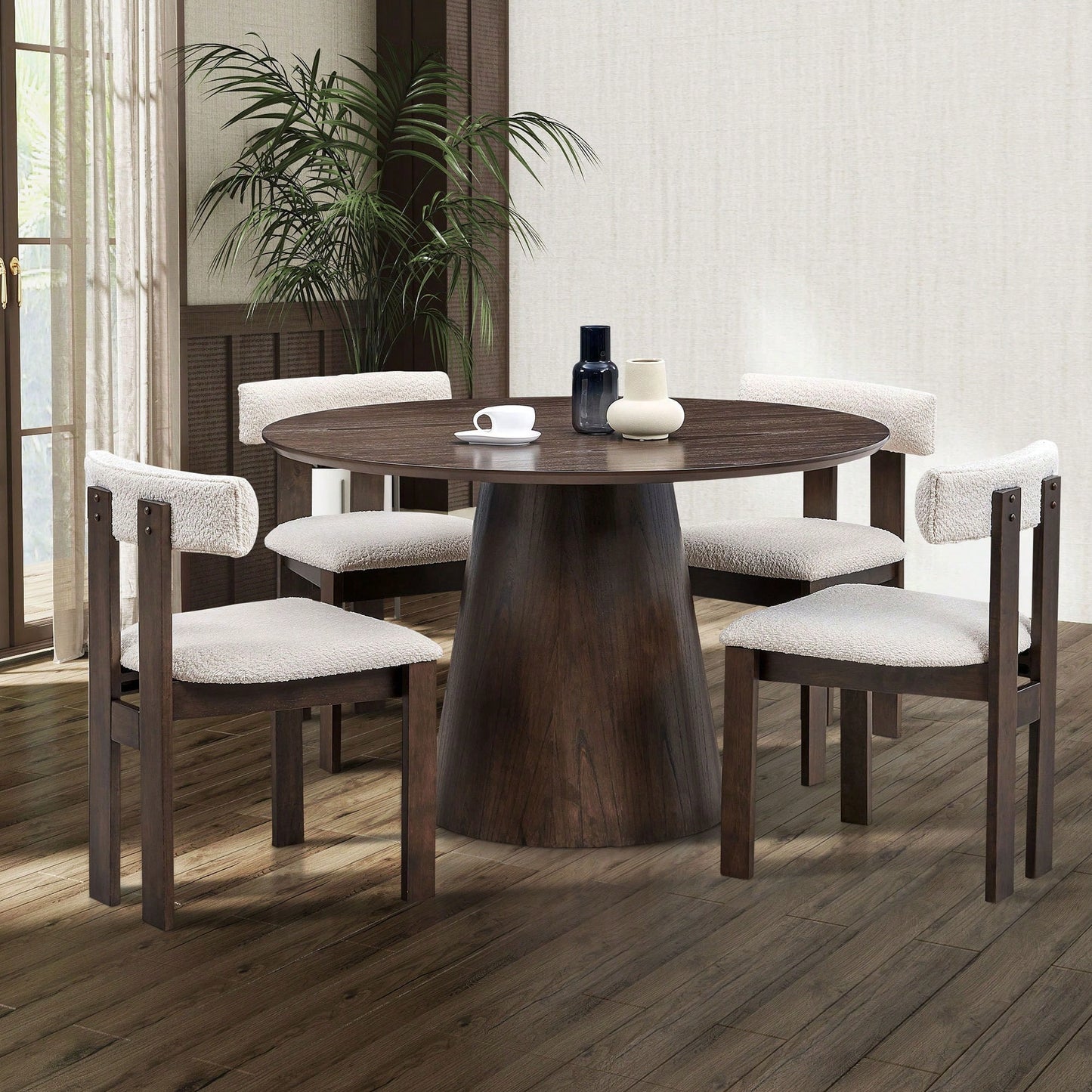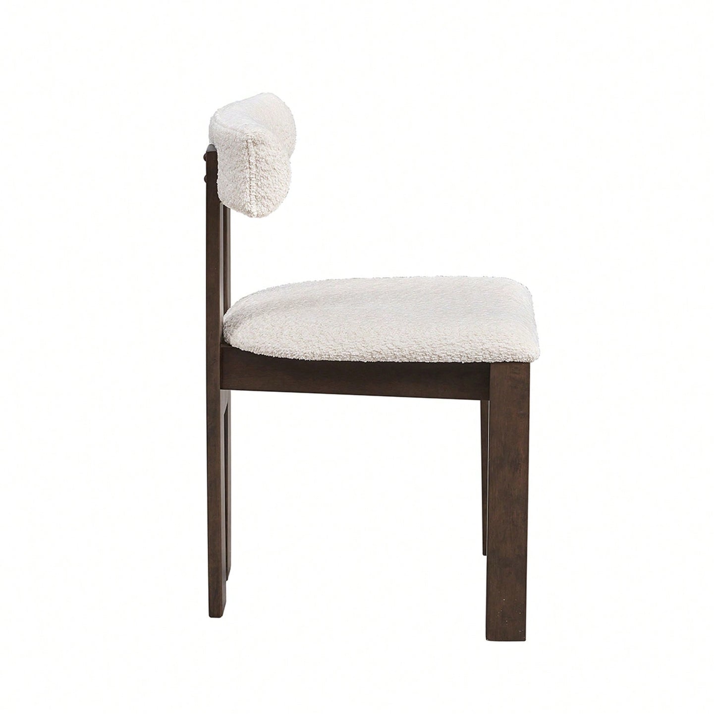 Set Of 2 Modern Boucle Upholstered Dining Chairs With Open Back For Kitchen And Living Room, Mid Century Farmhouse Style Wooden Side Chairs