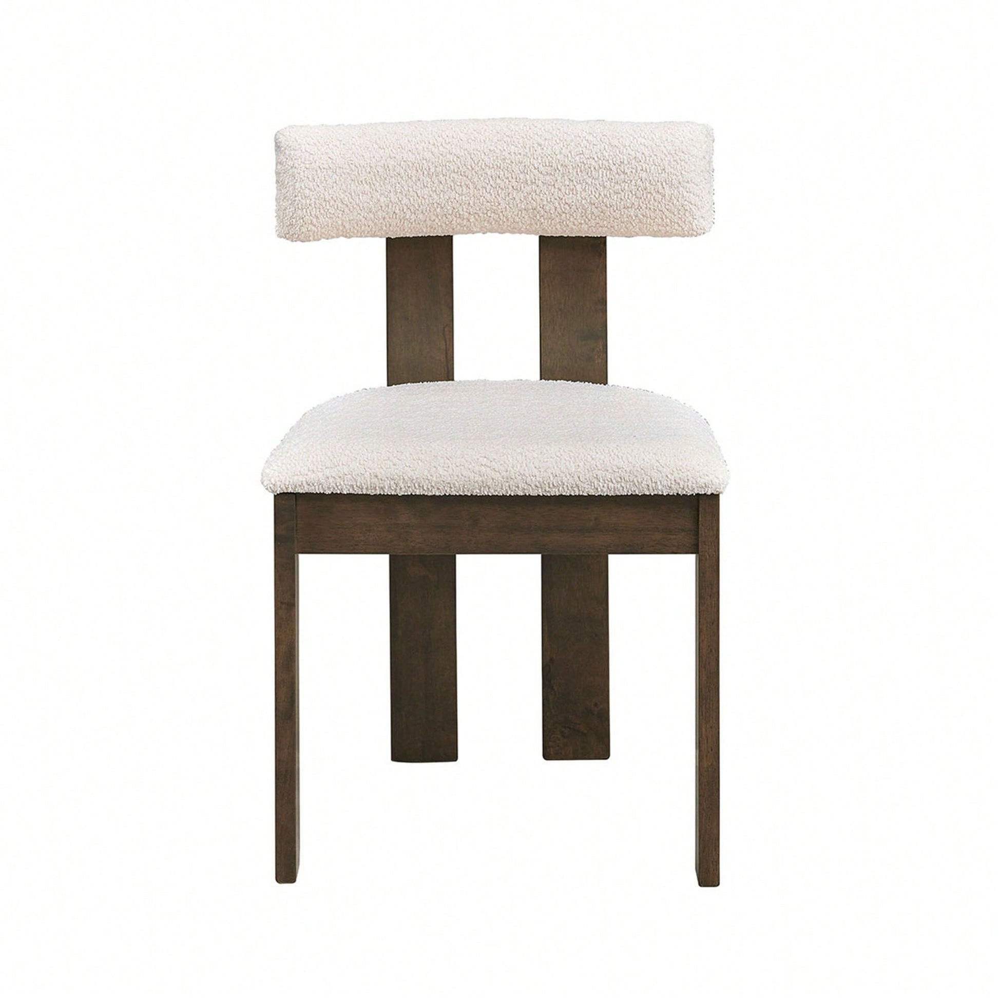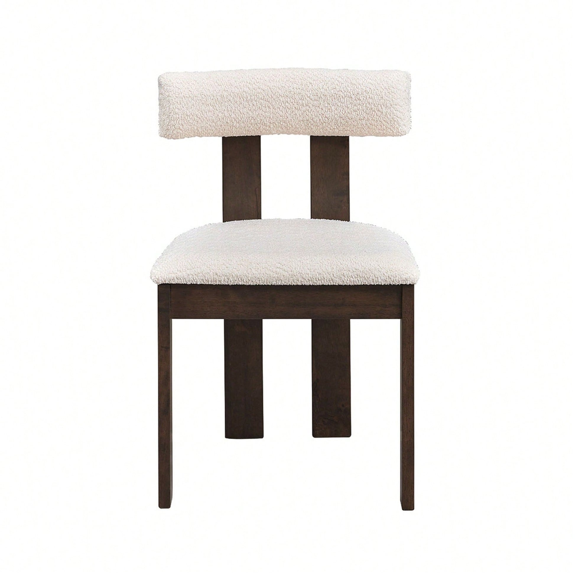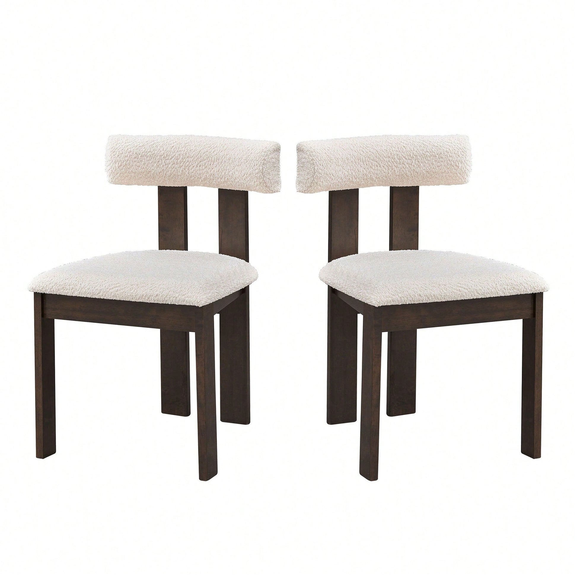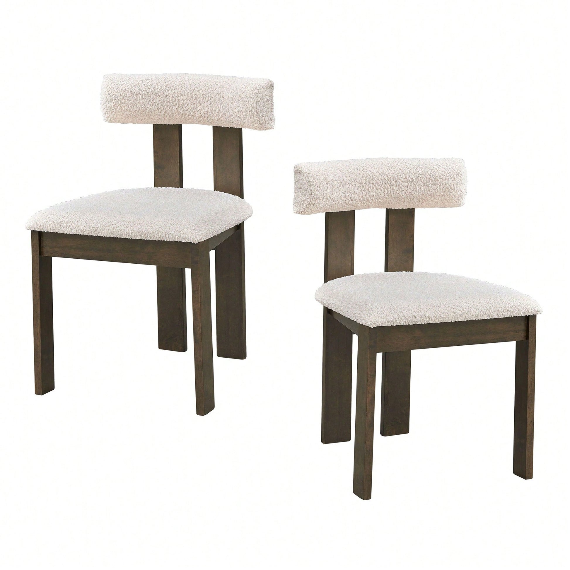Set Of 2 Modern Boucle Upholstered Dining Chairs With Open Back Mid Century Style For Kitchen And Living Room