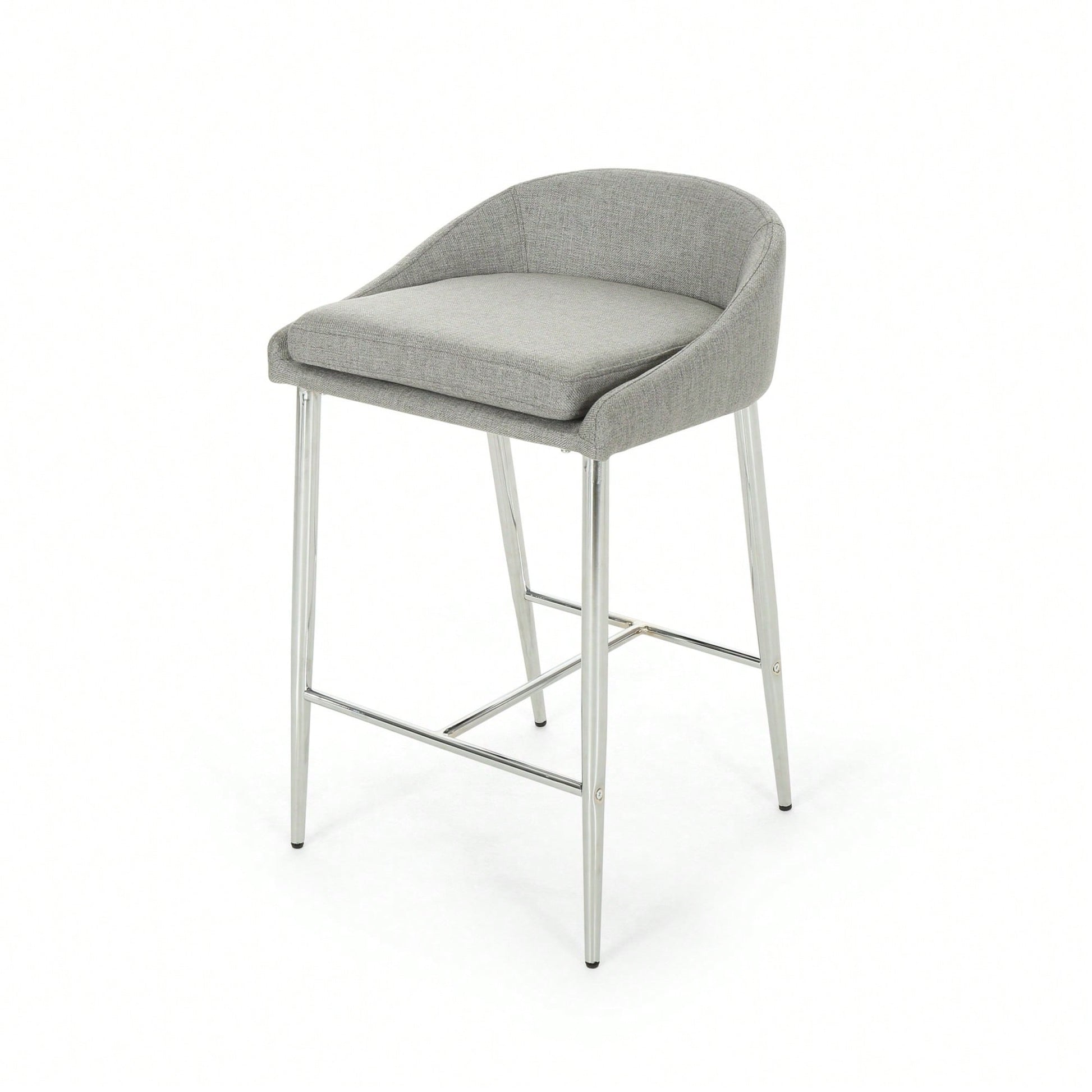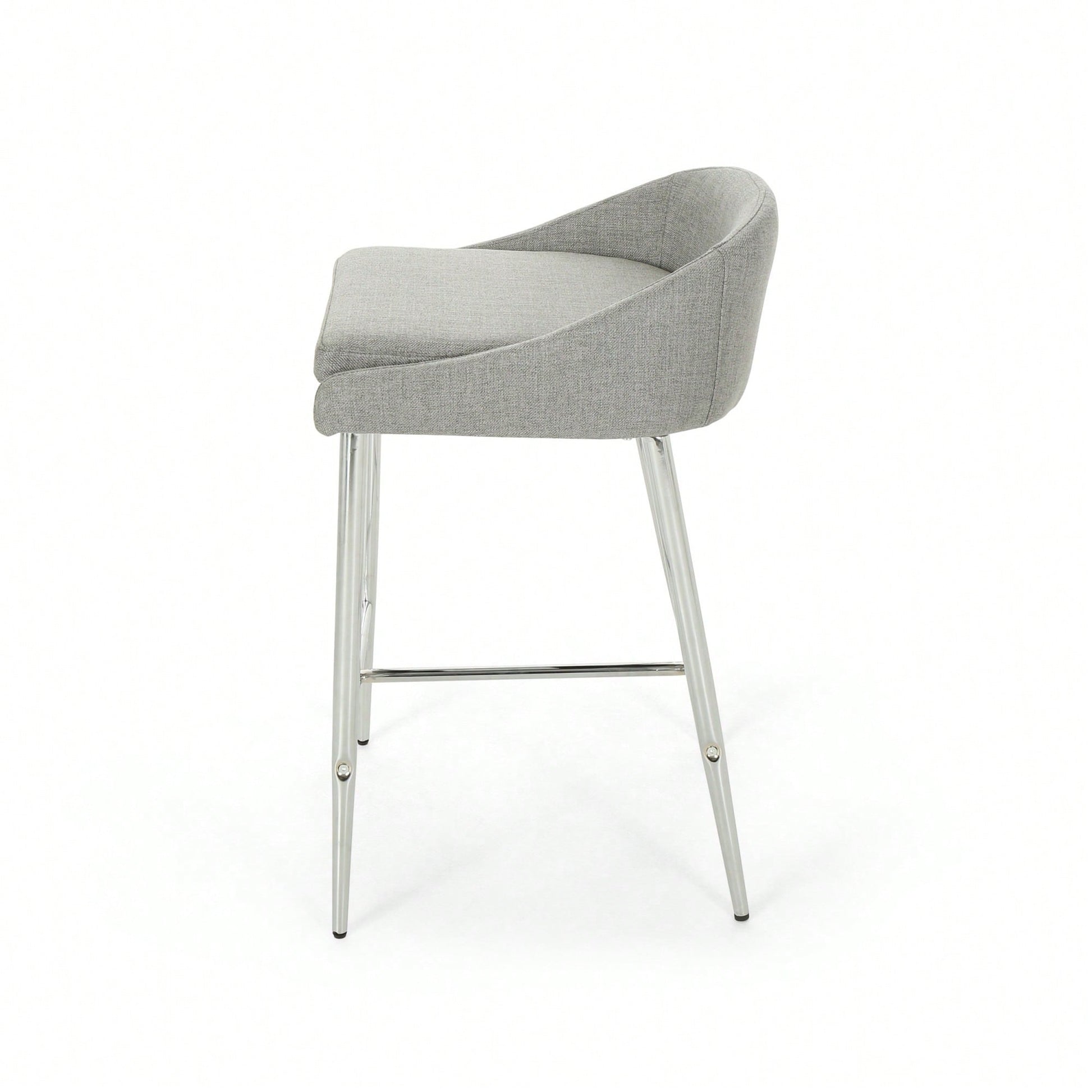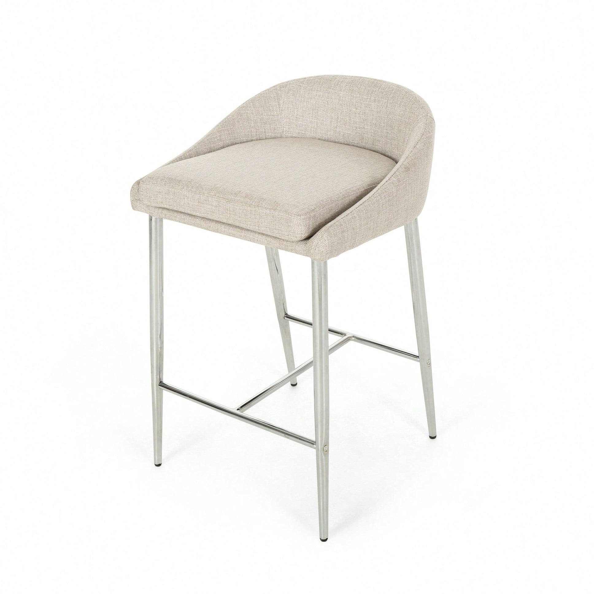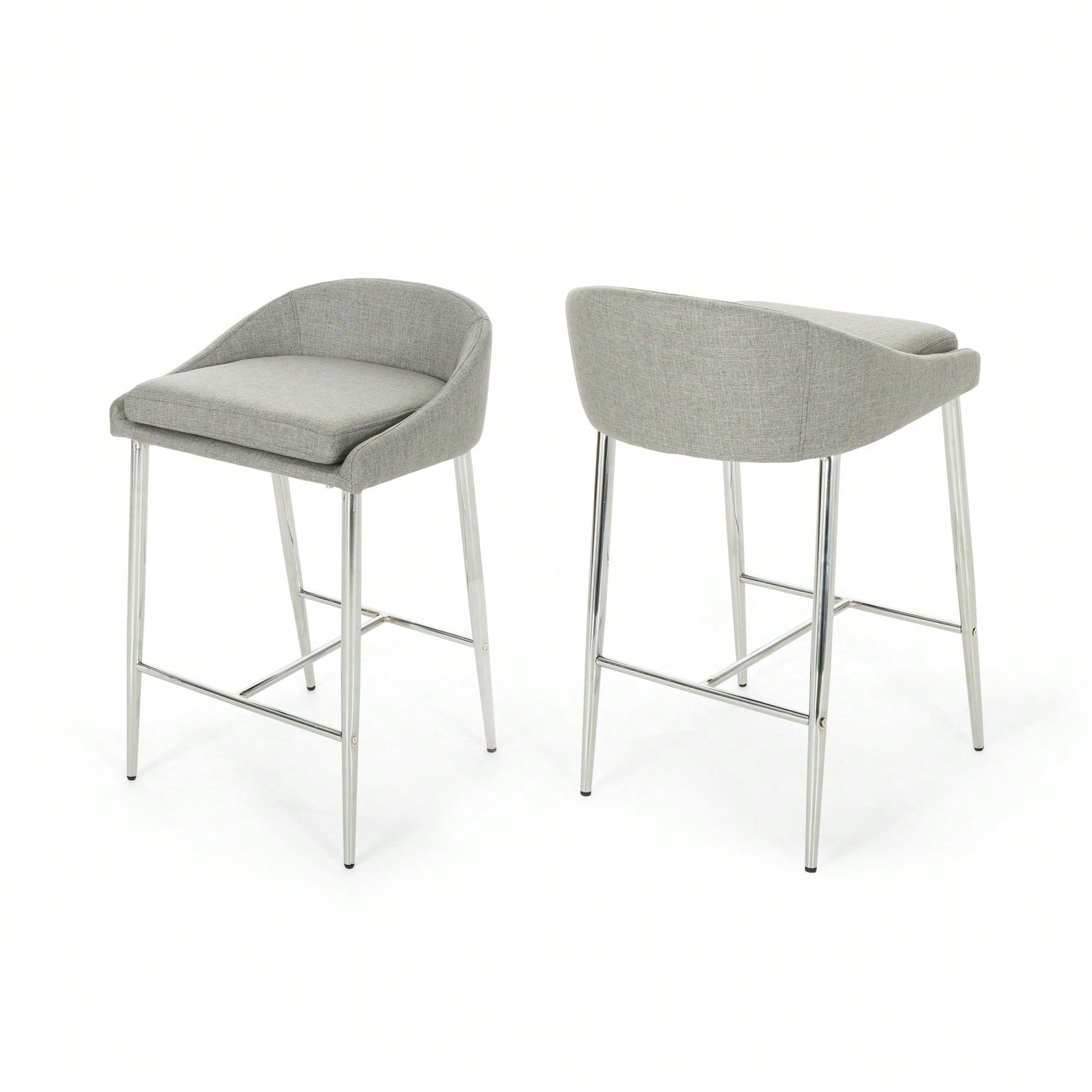 This counter stool set offers a simple, modern aesthetic that complements any décor. The stools feature straight lines paired with a curved backrest and tapered legs, adding a chic touch to your home. The generous upholstery provides a refined appearance and a smooth texture, ensuring comfort while seated. The lightweight iron base is coated with a chrome finish, offering both stability and a polished look, while also being resistant to corrosion and easy to clean. With a seat height of 26.00 inches, these stools are ideal for kitchen islands or breakfast nooks. Some assembly is required, but all necessary instructions and tools are included.