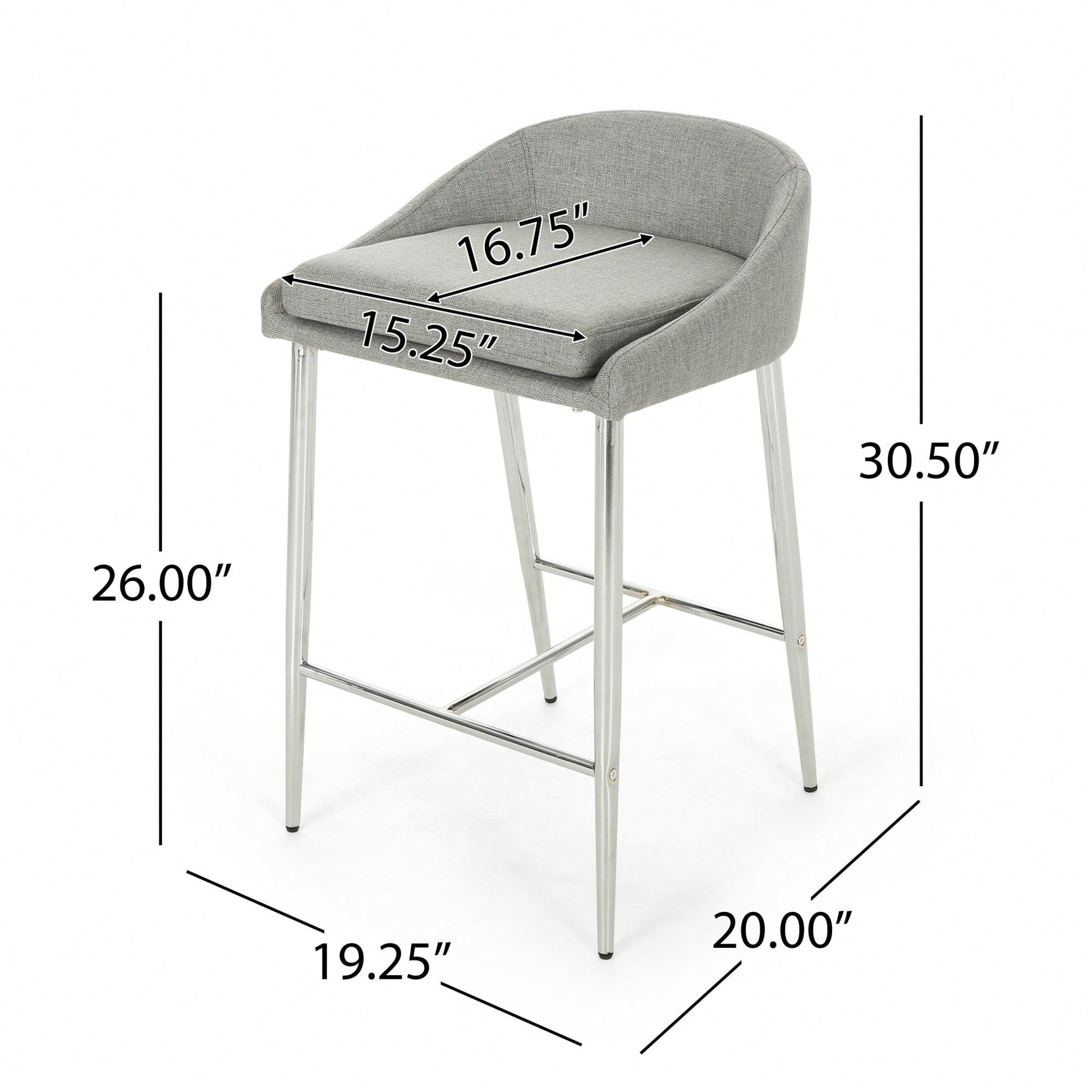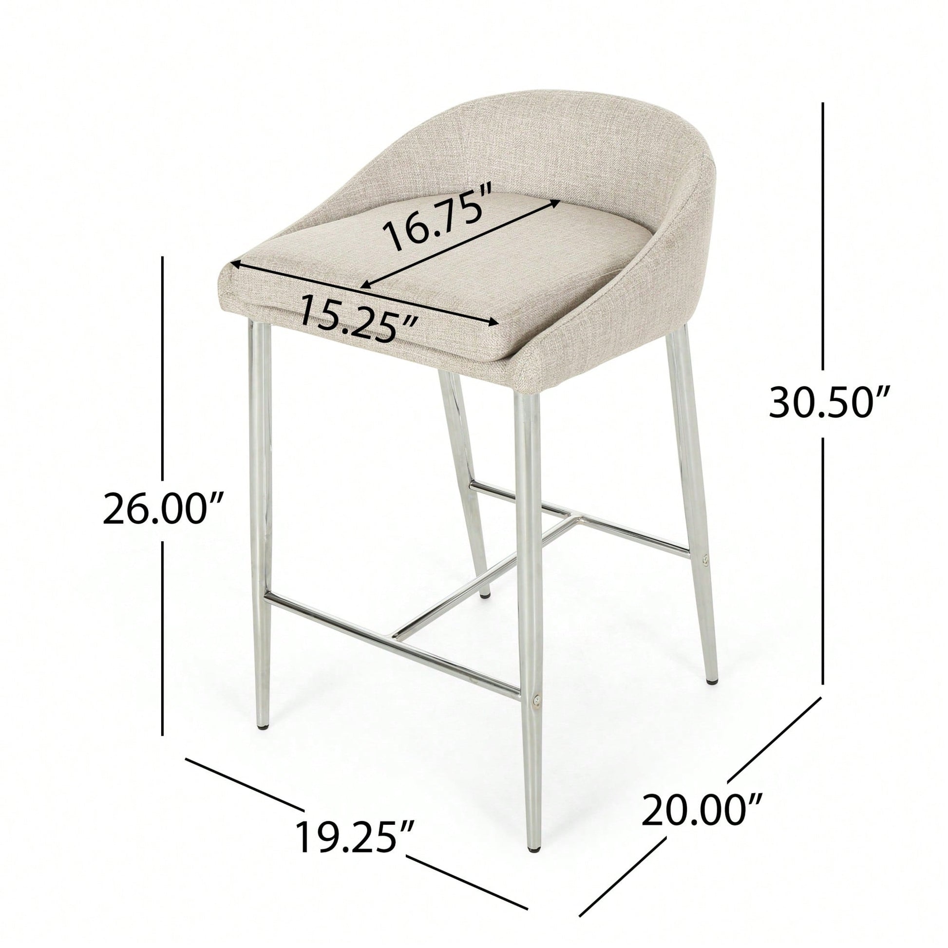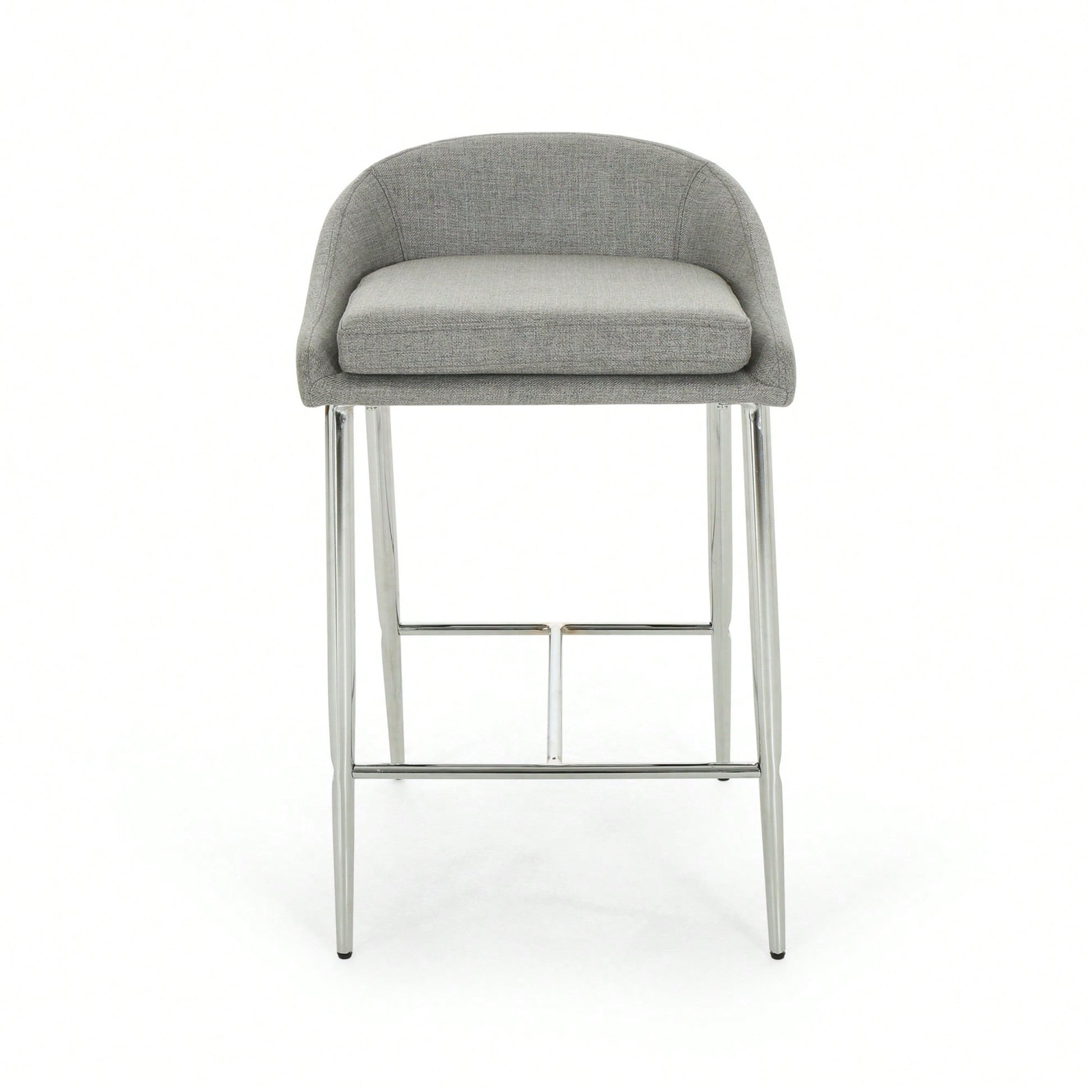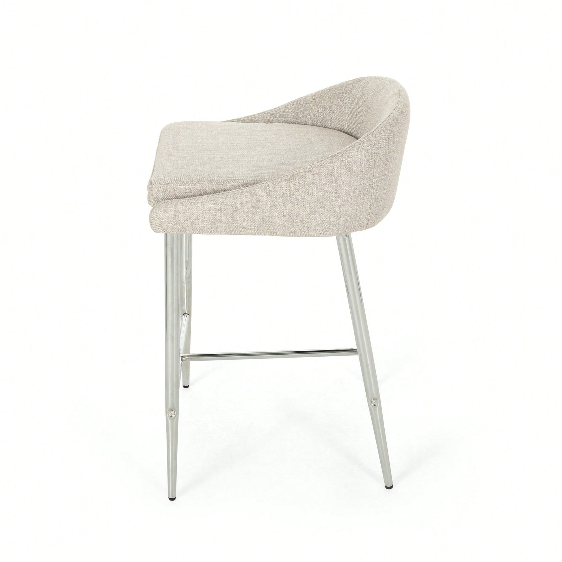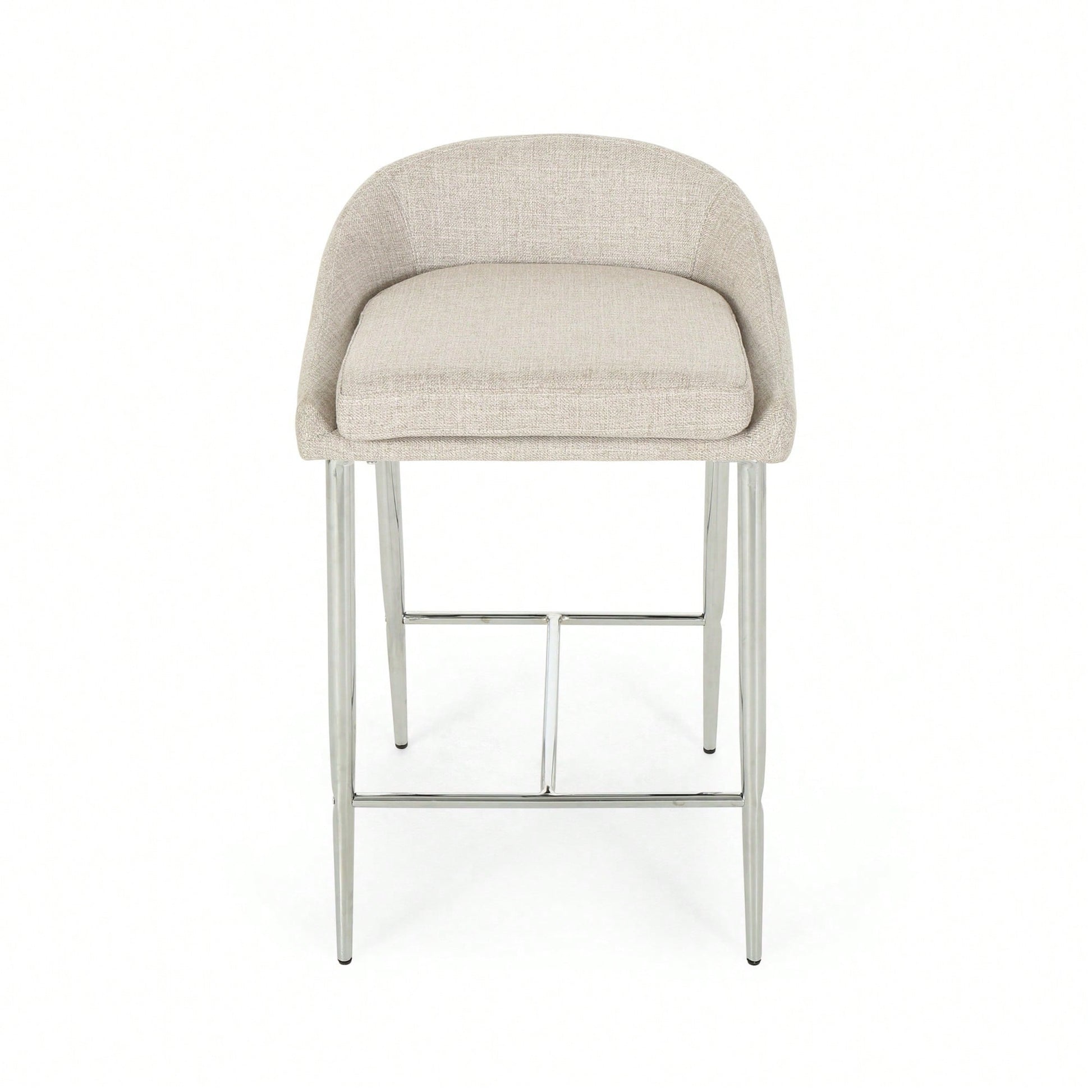 This counter stool set offers a simple, modern aesthetic that complements any décor. The stools feature straight lines paired with a curved backrest and tapered legs, adding a chic touch to your home. The generous upholstery provides a refined appearance and a smooth texture, ensuring comfort while seated. The lightweight iron base is coated with a chrome finish, offering both stability and a polished look, while also being resistant to corrosion and easy to clean. With a seat height of 26.00 inches, these stools are ideal for kitchen islands or breakfast nooks. Some assembly is required, but all necessary instructions and tools are included.