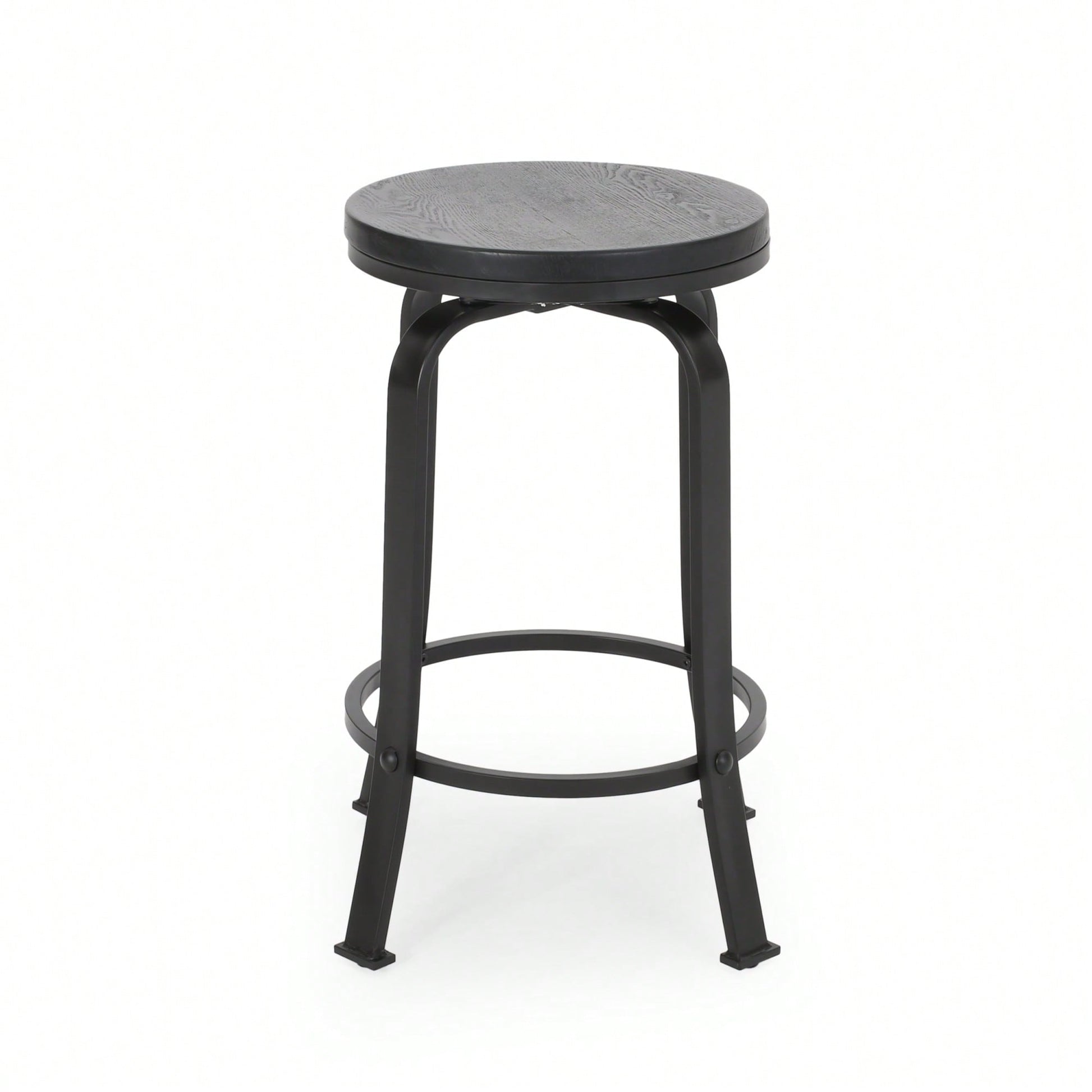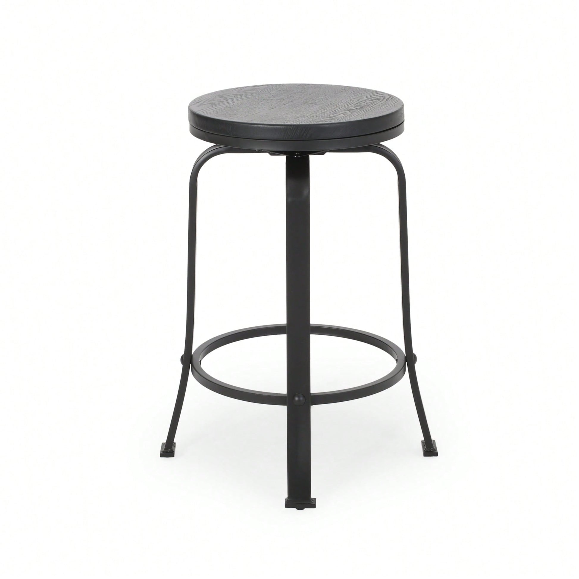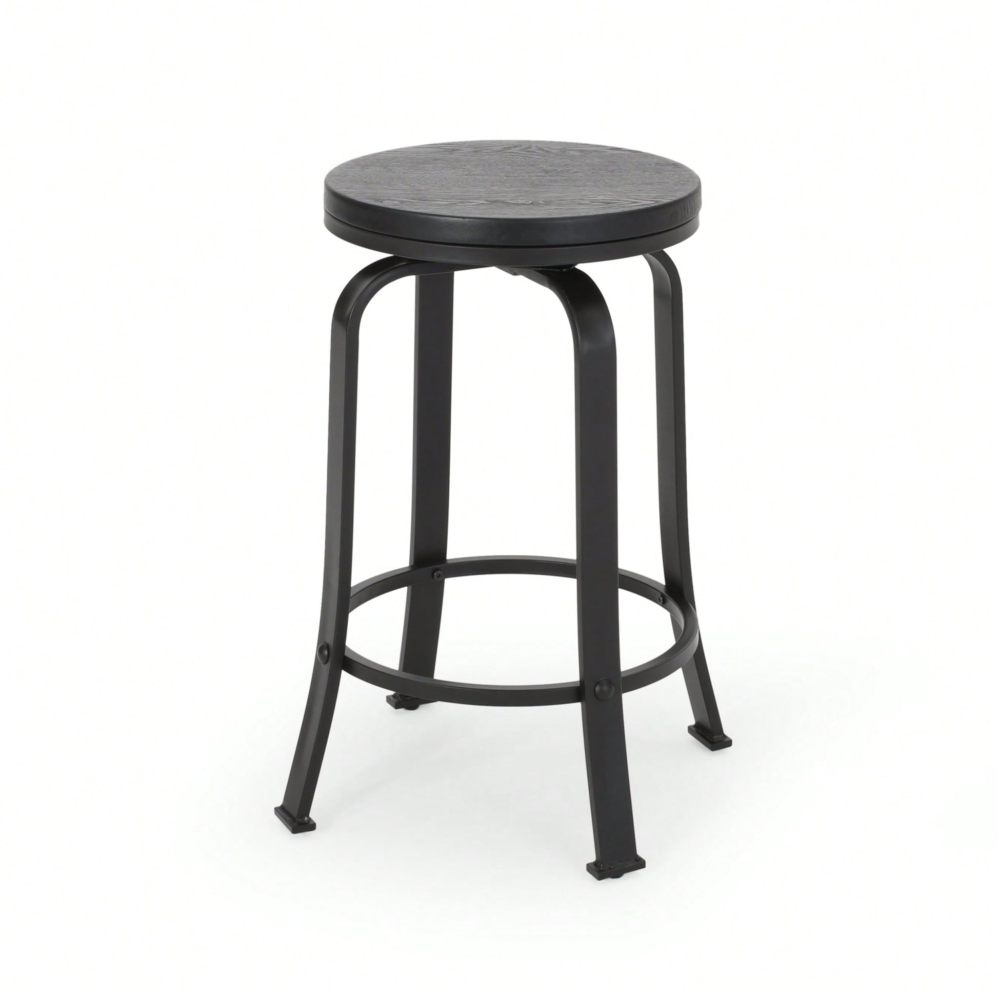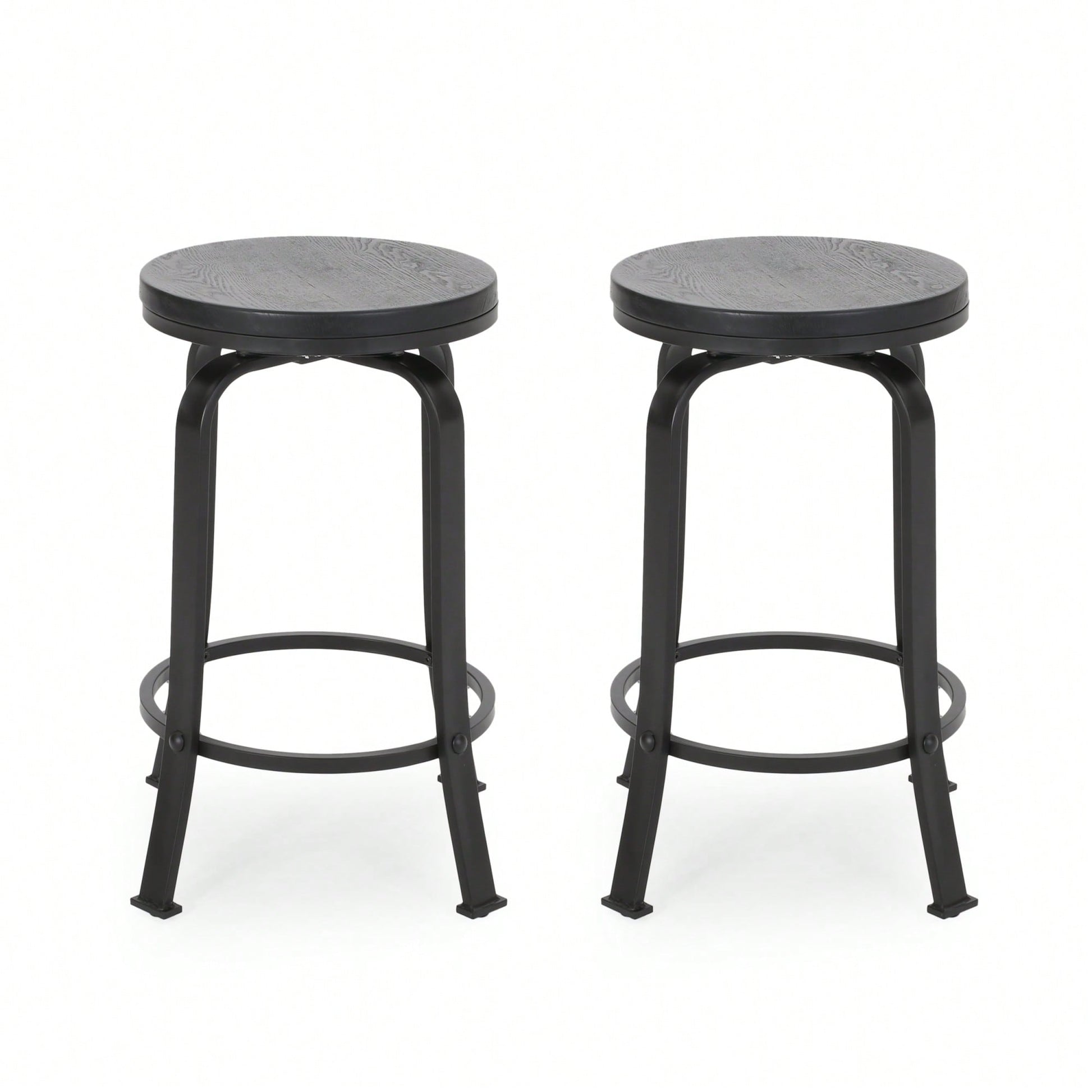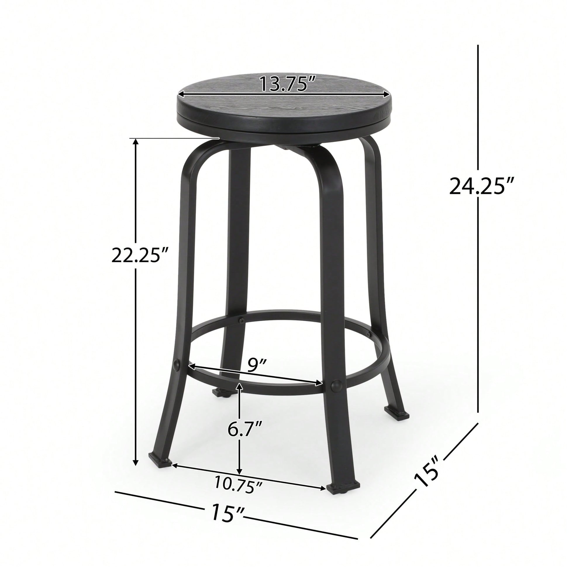 This counter stool set features a modern industrial aesthetic, combining a sleek powder-coated iron frame with a stylish faux wood seat. The swivel function enhances comfort, making it easy to get in and out of your seat. With a seat height of 24.25 inches, these stools are perfect for kitchen counters or breakfast nooks. The durable construction ensures long-lasting use, while the elegant matte finish adds a refined touch to your home decor.